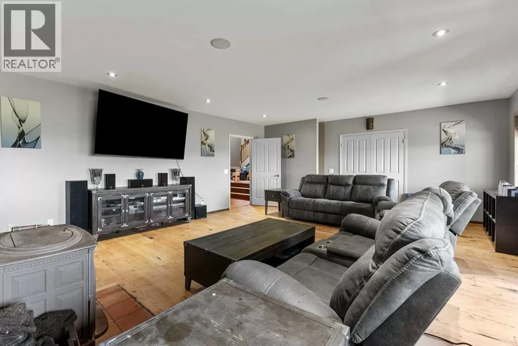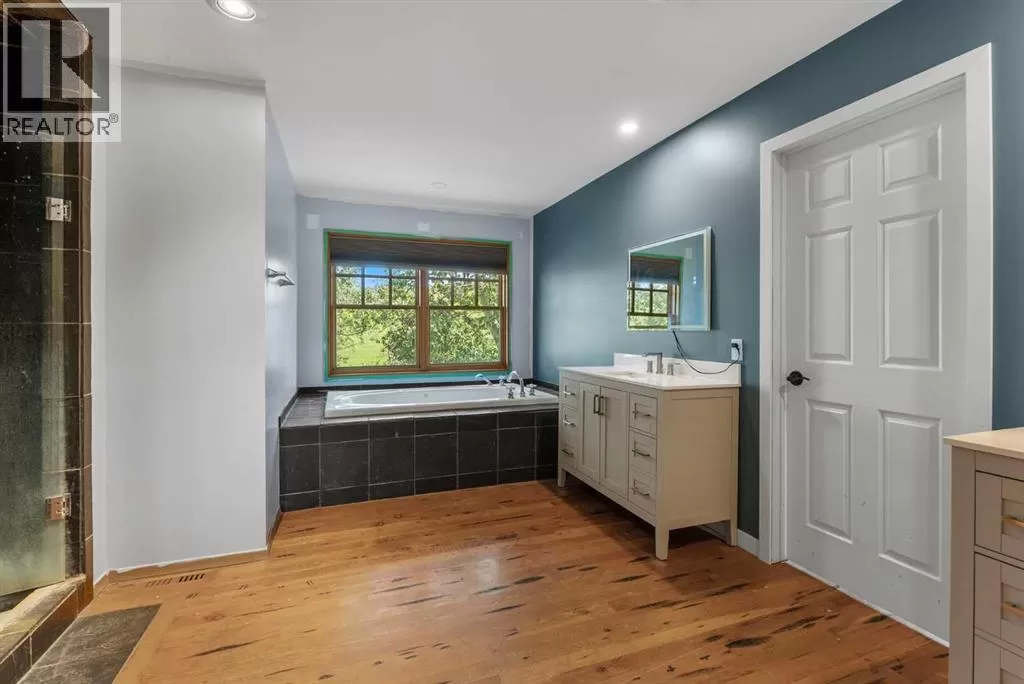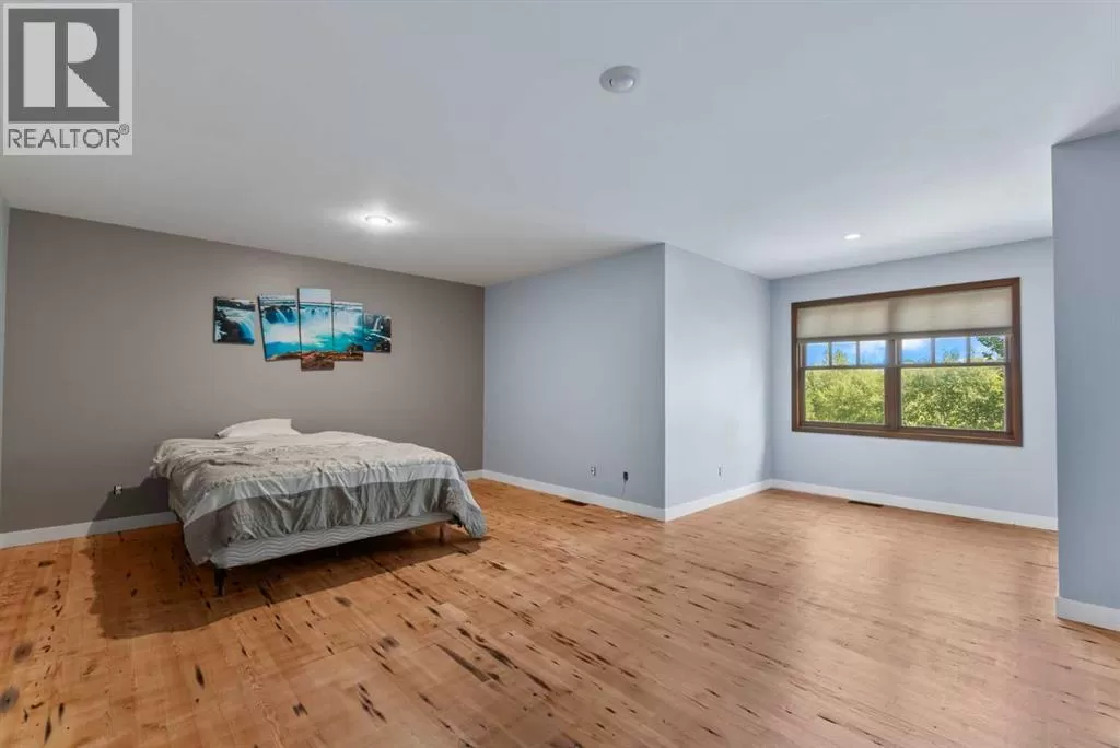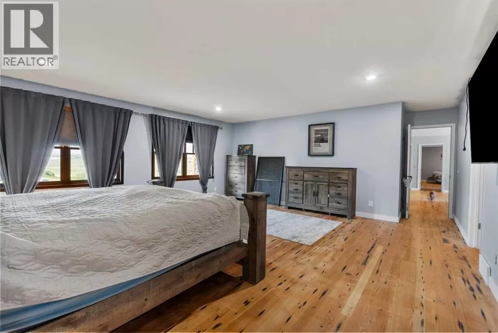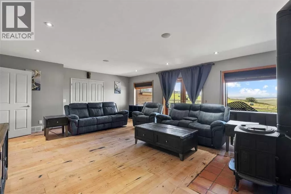 Discover the ultimate retreat at this secluded hilltop estate, boasting breathtaking mountain views and nestled on over 5 acres of lush land. YOU WILL NOT FIND A BETTER PRICE PER SQUARE FOOT HOME! This stunning cedar-wrapped residence features 8 spacious bedrooms and 8 bathrooms, offering nearly 8,200 square feet of beautifully developed space. Fully fenced and perfect for horses or family pets, this property provides ample room for a large family to thrive. Enjoy the serene surroundings, complete with mature trees and expansive views. The home includes two master bedrooms, a main floor bedroom, and a separate office space. A remarkable 1,363 square-foot recreation/flex room awaits, ideal for a dance or art studio, games room, or even converting back into an indoor pool. Step outside to unwind around the fire pit, take a dip in the new swim spa, or explore the picturesque walking and riding trails among the mature landscaping. With plenty of accommodations for out-of-town guests, including RV parking, this home is perfect for entertaining. Special features such as hand-scraped hardwood flooring throughout, granite countertops, upgraded appliances, a cozy wood-burning stove, and generously sized bedrooms and bathrooms enhance the appeal of this family haven. Conveniently located just a short 7-minute drive from Okotoks, this estate offers the perfect blend of privacy and accessibility. (id:27476)