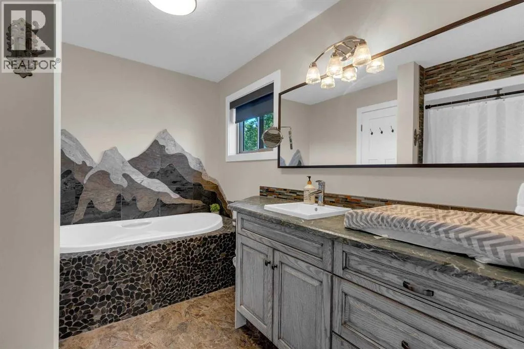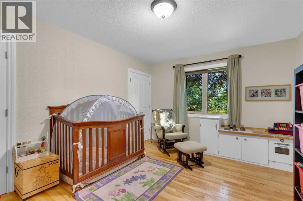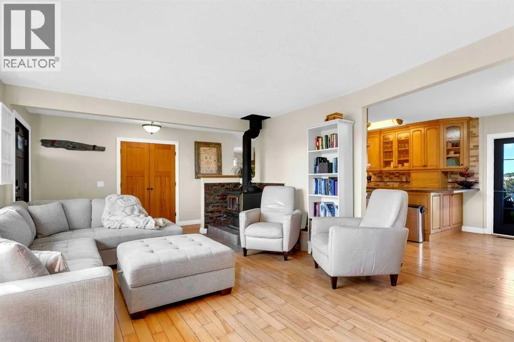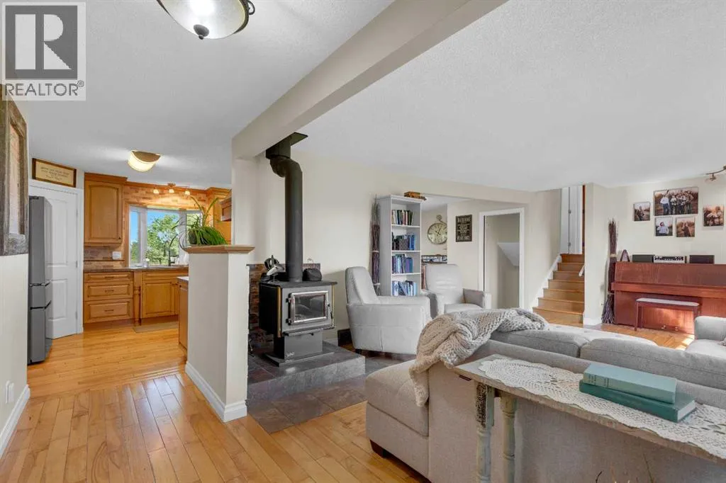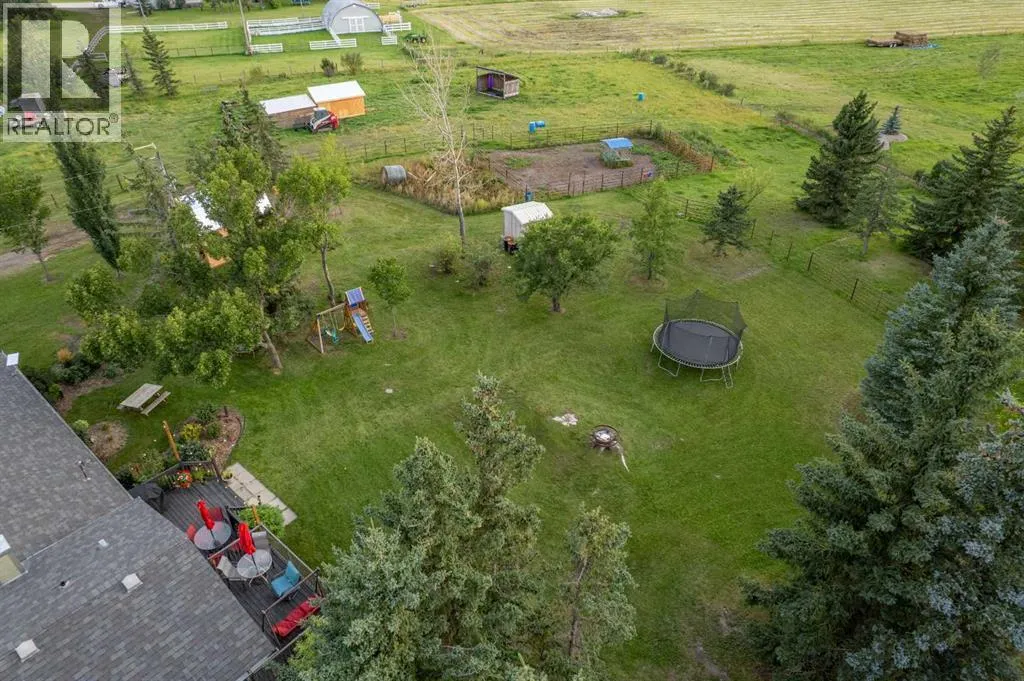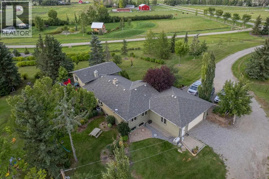 Home...its more than just an address. Its a feeling. Its a space where you spend time with the people you love and recall your fondest memories. Home could be here in Alder Heights. This 4.18 acres is set in an amazing location just off HWY 2 with all paved roads. Pull up the tree lined driveway to a beautiful professionally landscaped front entrance. Stepping into the home you feel it...its comfort and adventure. This is a split level home with over 3600 sf of developed space for large families, multigenerational families, families who love to have guests! The living room is your space in the mornings with the sunrises and the wood burning fireplace to take the chill out of the air. The kitchen, with its copious cabinetry and prep area along with the dining area have views to the West, of the mountains and sunsets! Enjoy the views from indoors or from either of the 2 decks accessible via the dining room or primary suite. Are you working from home? The addition (2008) features a main floor office space which alternately could be a sitting room for an elderly family member who occupies the substantial bedroom having direct access to a full bath, which, is conveniently located off the oversized attached garage! Did I mention there is also main floor laundry? And central air conditioning? And fresh paint? Another renovation (2018) was the Primary Suite inclusive of a gas fireplace, impressive walk in closet, sitting area with access to the upper west deck, and a full en suite with the option of extra privacy closing off the powder room from the bathing area! Continue on to explore the lower level with a walk up feature to the back yard. This is the family room where movie nights and games and crafting can be engaged in by all. Or, head to the 4th level for a vigorous workout in the gym space or cozy up in the recreation room. Perhaps this is where the theatre life is! Or maybe games tables. Keep in mind those who may slumber in any of the 3 sizeable bedro oms! This level is thoughtfully developed with slab heat for additional comfort! With all the indoor options, lets not forget the outdoors! There is room for animals and forts and play centers and gardens and gazebos and she shacks and man caves and workshops and animal shelters and firepits and gardens and plunge pools and horseshoe pits and volley ball and badminton and, well, I think you know. Have you looked at the map? You are only minutes away from High River and also Okotoks and an easy drive to the South end of Calgary. Up the road is the community riding arena for the equestrian lover plus a BBQ area and playground, walking/bike paths and sledding hill. Are you thinking this may be your space...that one to call home? Call your Realtor® for your private viewing. Move in and call this Home for the Holidays! Now how much fun will that be??? (id:27476)