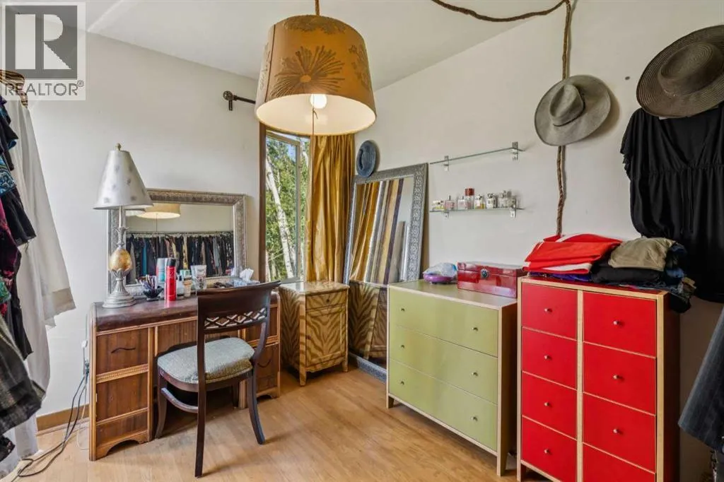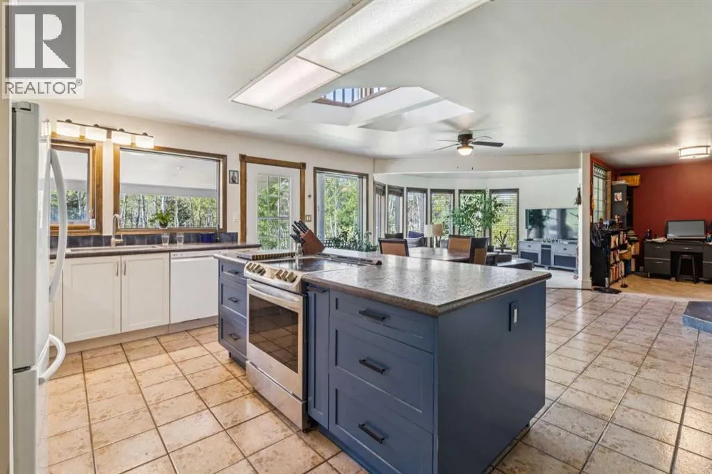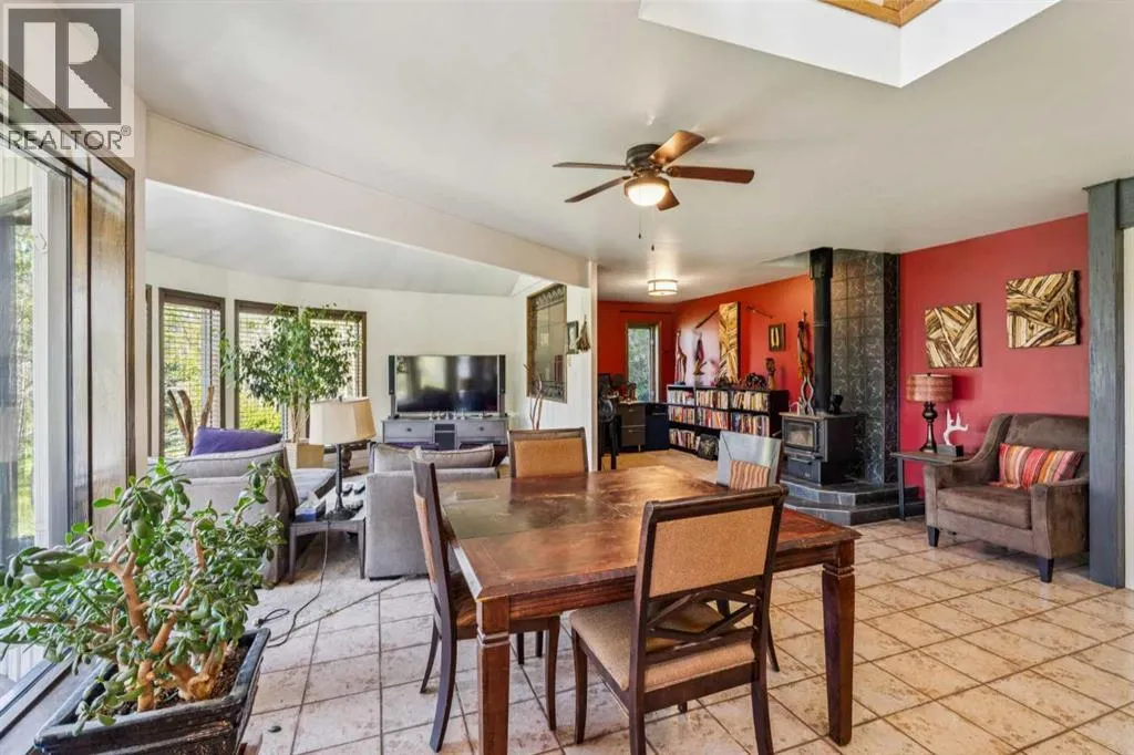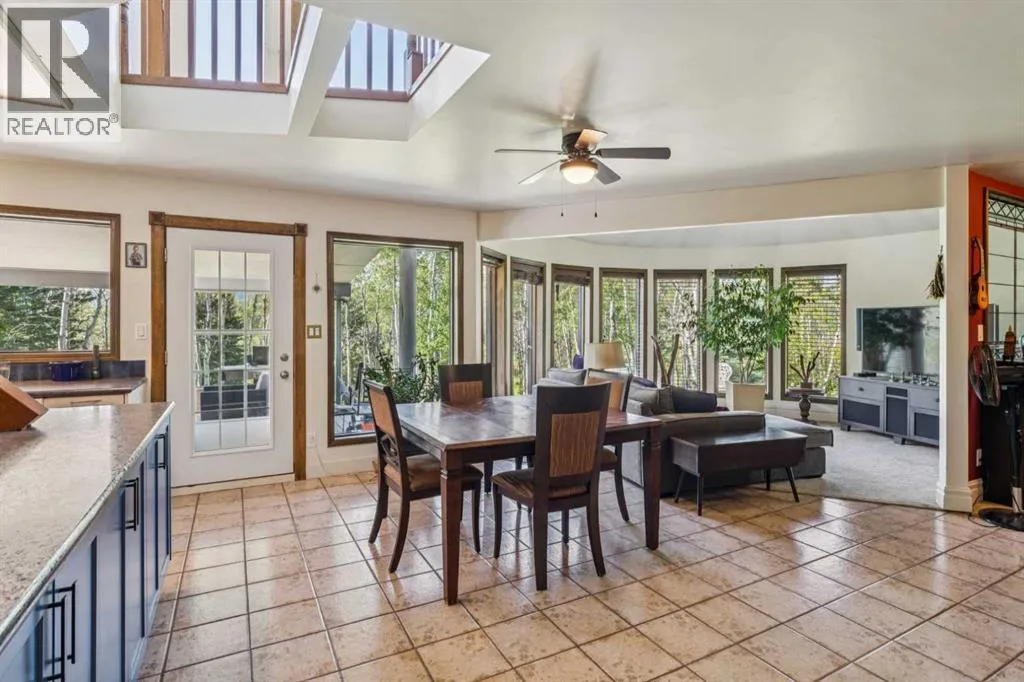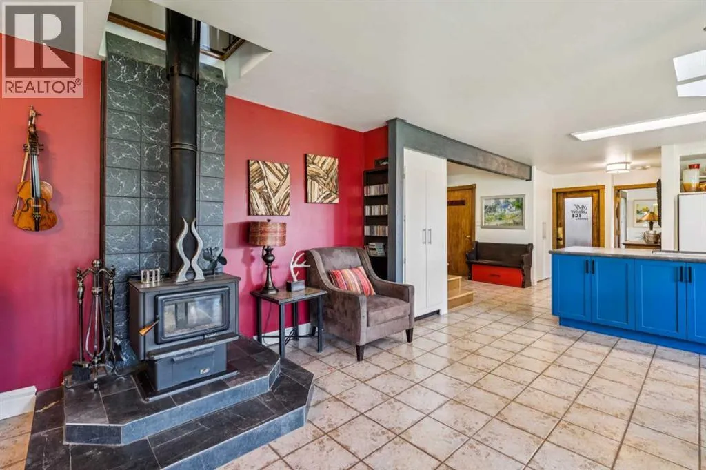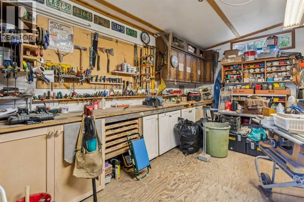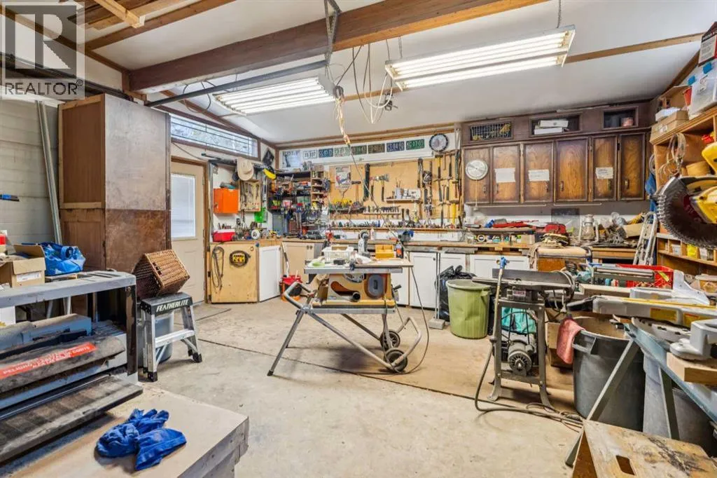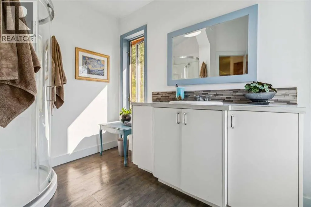 An acreage with so much potential! This property features a unique home, a great location, a large workshop, a pond, and a hilltop with amazing views of the foothills and 3 valleys that could be another building site. The 23 acre property is conveniently located 10 minutes south of Bragg Creek, and very close to 320 acres of crown land. The house features very unique architecture, with curved walls and lots of windows. The main floor has a recently built custom kitchen with large island, a living area wrapped around with a curved wall, an office (or study room), a recently refinished bathroom, and a large bedroom. The upper floor features a primary bedroom with en suite bathroom, a workout or seating area, access to two decks, and a large walk-in dressing area and closet. The house has a large single car garage currently being used for storage. The location is quite private with a long driveway that winds past a picturesque pond that would be great for skating in winter. The workshop is quite large and would be a great place for setting up any number of crafty activities or could be converted into a larger garage. One end of this workshop has an integrated studio & green house space. This home could be the coolest little weekend getaway or artist retreat, or could be a great second residence while you build a smaller house up on the ridge to take advantage of the amazing views. Come and picture the possibilities today! (id:27476)