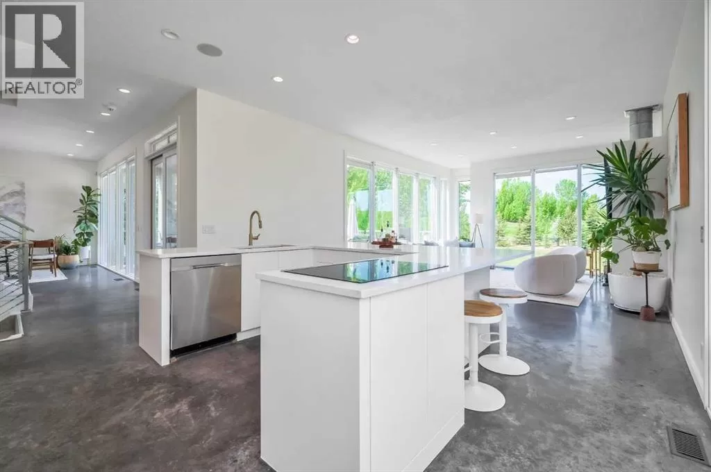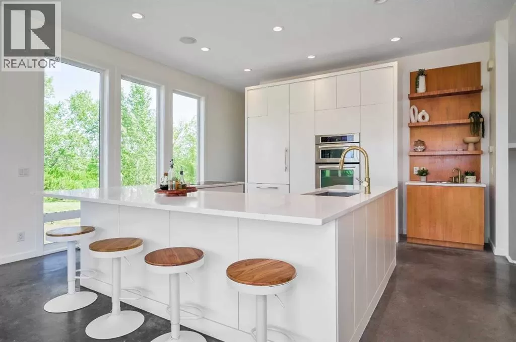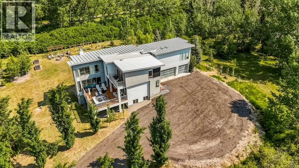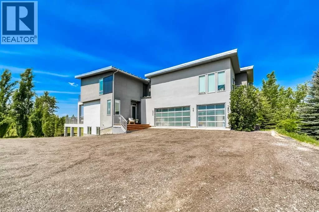 Welcome to a remarkable fusion of modern elegance and acreage tranquilityâan extraordinary custom-built estate nestled on a beautifully manicured 2-acre parcel, including a high-earning legal suite, just a short drive from the vibrant heart of Calgary. This exceptional 8-bedroom, 4.5-bathroom residence offers 4,941 square feet of exquisitely designed living space, crafted with a seamless blend of architectural sophistication and everyday comfort. From the moment you arrive, you're greeted by the striking contemporary designâfeaturing clean lines, a sleek metal roof, and purposeful elements that make this home as stylish as it is functional. Expansive floor-to-ceiling windows invite an abundance of natural light throughout, illuminating polished concrete floors and emphasizing the spacious, open-concept layout. The main dining area flows effortlessly from the state-of-the-art kitchenâcomplete with high-end appliances, extensive quartz countertops, custom cabinetry, and a large center islandâinto a generous living room with a real wood-burning fireplace, perfect for cozy gatherings and enjoying panoramic views. A dedicated den offers a quiet space for a home office or study. Each of the six well-proportioned bedrooms provides a private sanctuary, with the luxurious primary suite featuring a spa-inspired ensuite with dual vanities, a walk-in shower, makeup vanity, and open-concept closet. The remaining bathrooms are outfitted with sleek, contemporary fixtures that reflect the home's modern character. Downstairs, the fully developed walk-out basement opens up a world of possibility, with a home theater, gym, and recreation room ready to suit any lifestyle. Adding incredible value is the thoughtfully designed 2-bedroom legal suite above the triple-attached garage, with a private entrance and full kitchenâcurrently generating $2,100 per month in consistent rental income, making it ideal for investors, multigenerational living, or offsetting mortgage costs. The expansive l ot includes mature landscaping, a 3,500-gallon cistern, a large deck for entertaining, and wide open spaces perfect for gardening or playâall set against sweeping prairie views. Lovingly maintained by the original owner and built with premium materials throughout, this home combines modern luxury with practical functionality. Despite its peaceful rural setting, the property is just minutes from Calgaryâs city limits, the South Health Campus, top-rated schools, shopping, restaurants, and all essential services. Whether you're searching for a luxurious family retreat, a flexible multigenerational setup, or a savvy investment opportunity, this extraordinary estate offers unmatched versatility and timeless appeal. This property is a must see in person to truly take it all in. Ask your favorite realtor and come on Buy! (id:27476)
