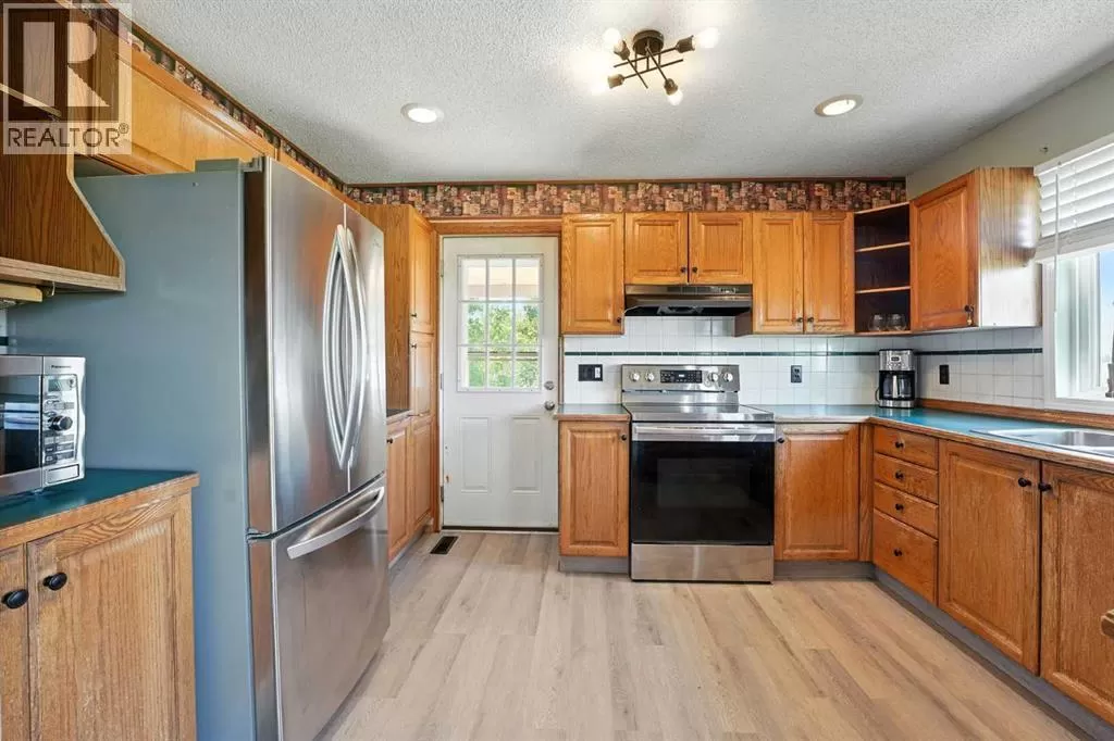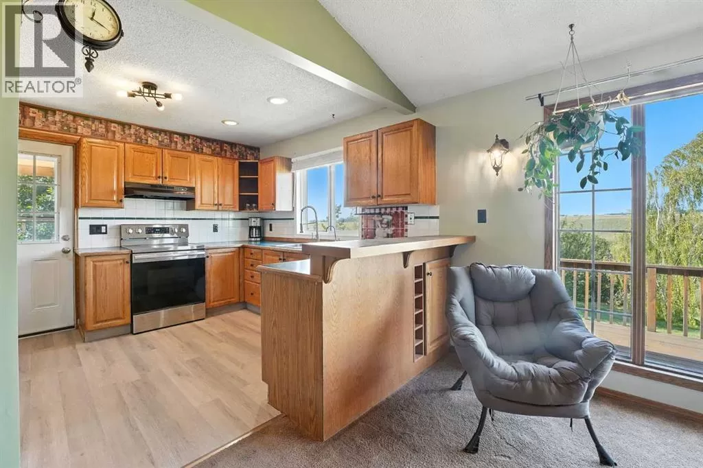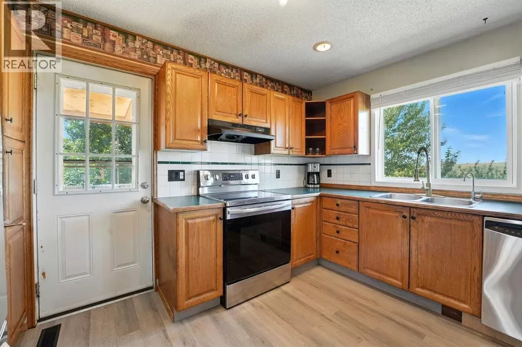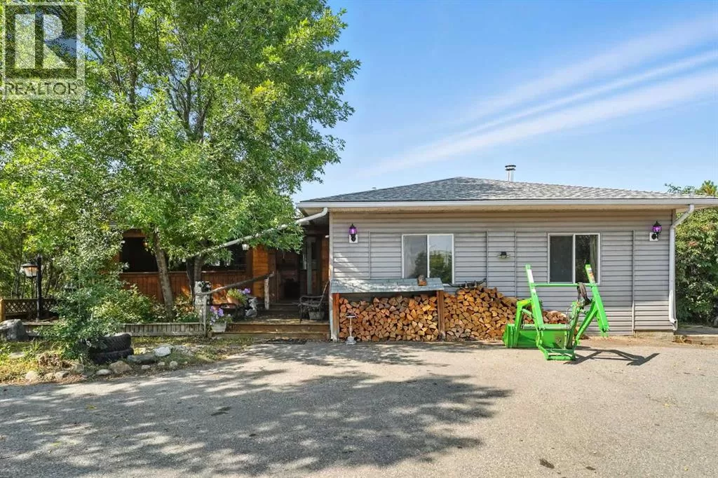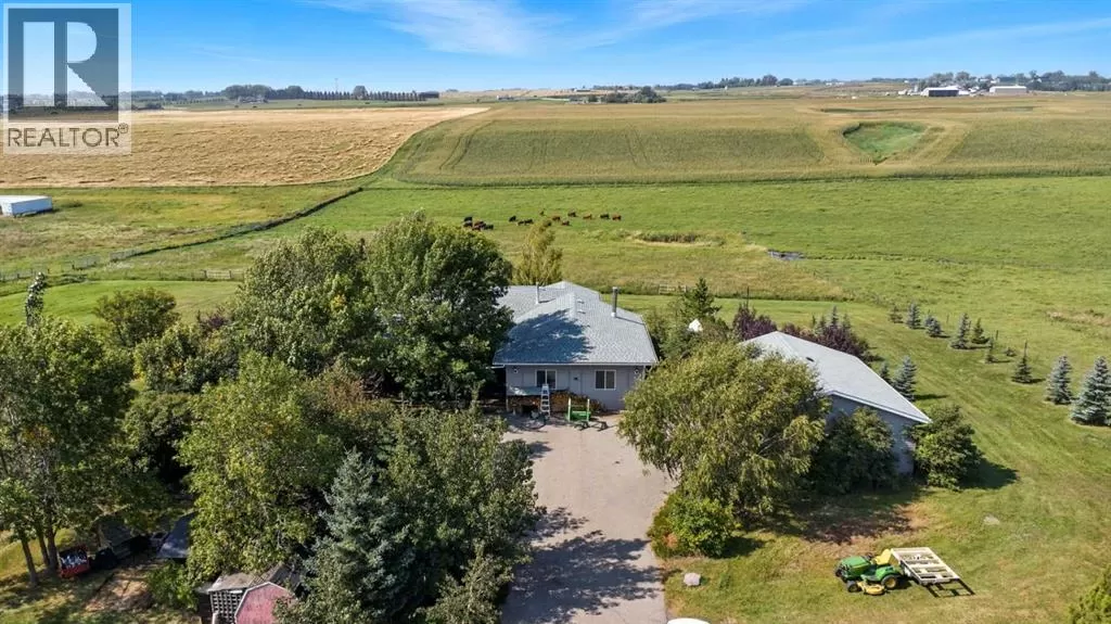 Nestled on just under 5 acres, this beautiful property offers the perfect blend of privacy and convenience. Surrounded by mature trees in a tranquil setting, youâll feel worlds away while being only 5 minutes to Okotoks and 15 minutes to Calgary.The spacious **walk-out bungalow** boasts over **1,700 sq. ft. of living space** on the main level, highlighted by a cozy **wood-burning fireplace** that anchors the living room. Large windows bring in plenty of natural light and frame views of the serene landscape.Comfort and efficiency are top of mind with **in-floor heating in both the basement and garage**, plus a **newer furnace and hot water tank** for peace of mind. The **oversized heated garage** provides ample room for vehicles, tools, and storage.Whether youâre looking to embrace country living, enjoy outdoor hobbies, or simply relax in a peaceful setting close to the city, this acreage has it all. (id:27476)