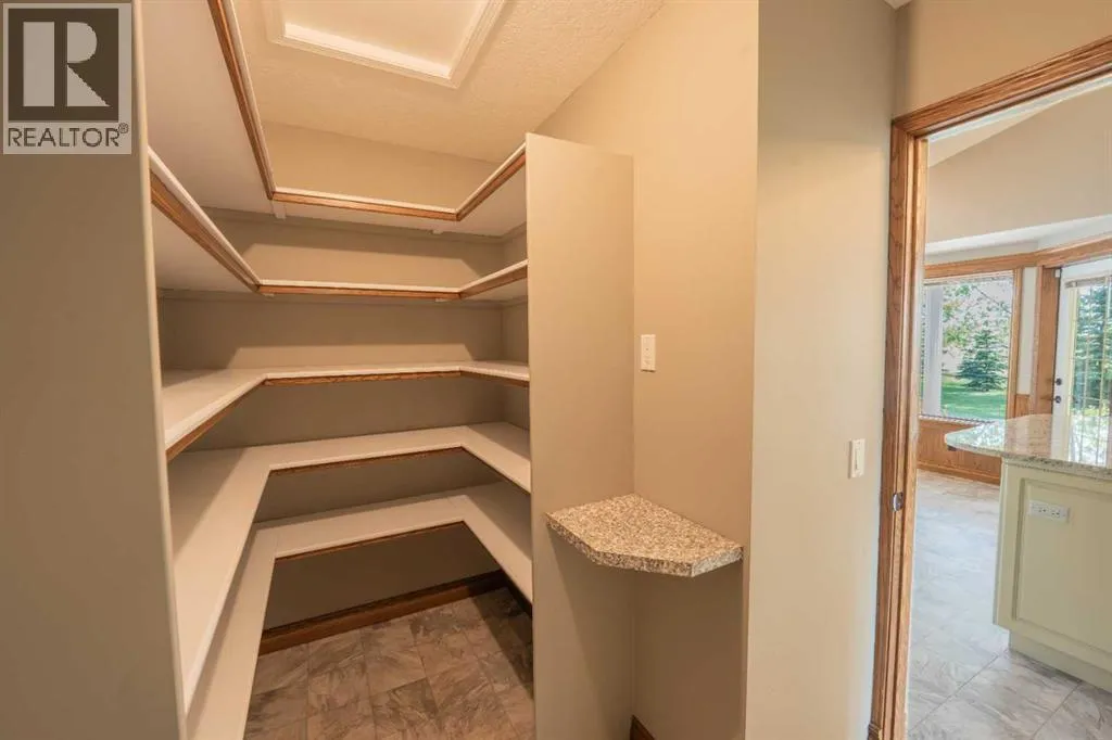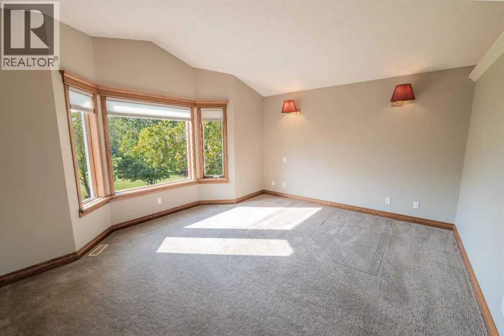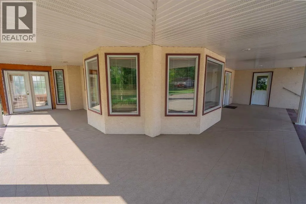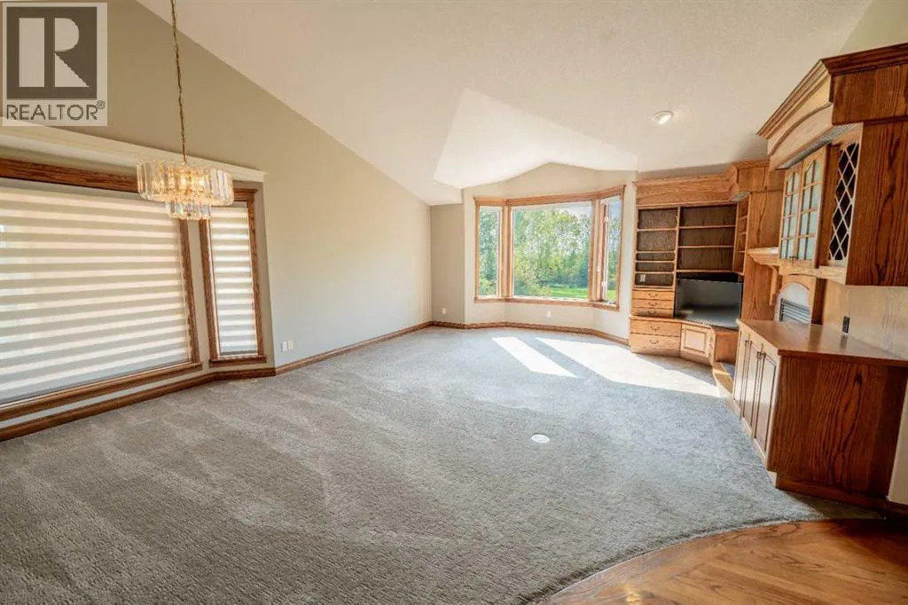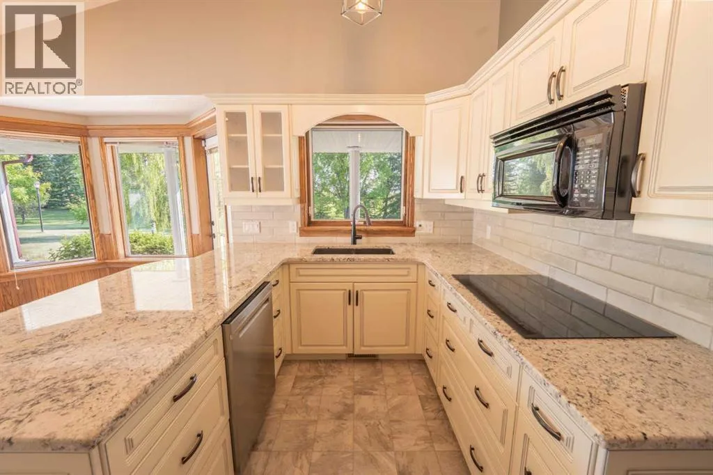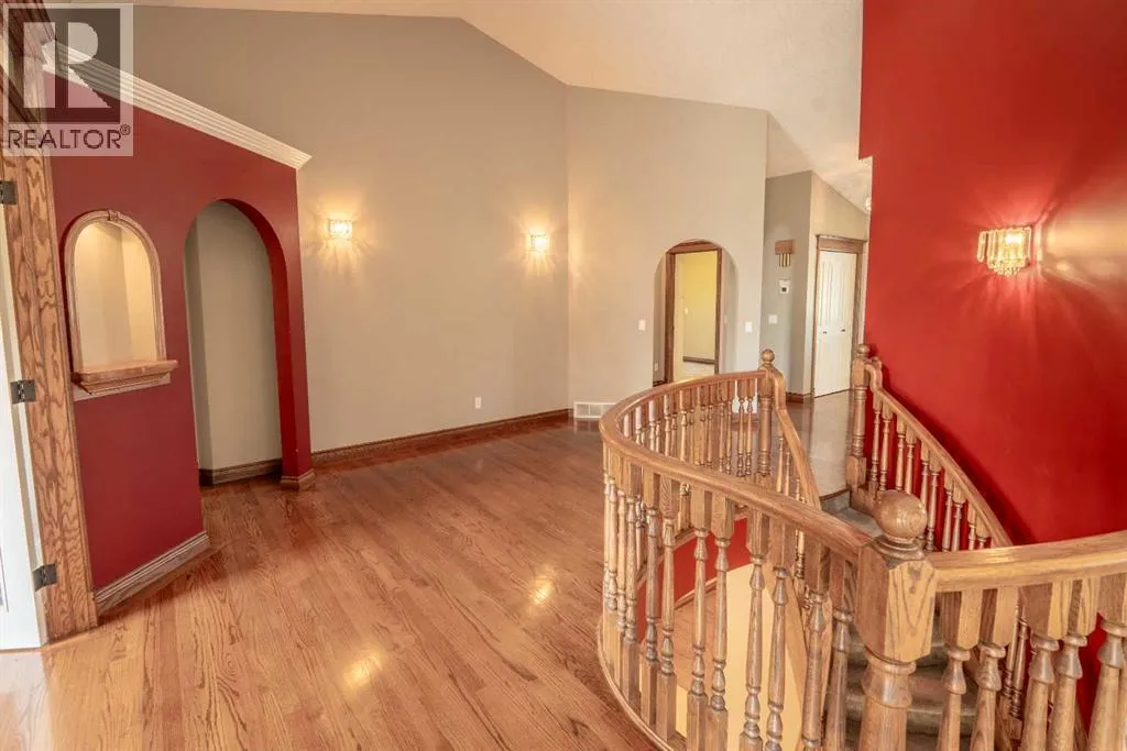 Nestled just north of Okotoks on just under four picturesque, park-like acres, this hillside bungalow offers an exceptional blend of privacy, tranquility, and convenienceâonly minutes from amenities, schools, and services.A gently curved driveway leads to the inviting wraparound front porch and ample guest parking. Inside, the spacious foyer opens to hardwood floors, soaring vaulted ceilings, and a beautifully designed living and dining area highlighted by a custom entertainment centre and a gas fireplace with mantle. The kitchen features a cozy breakfast nook, oversized pantry, and direct access to the wraparound deckâperfect for outdoor dining and barbecuing. An enclosed sunroom provides additional year-round enjoyment or the option of a greenhouse. The main level is complete with two generously sized bedrooms, including a comfortable primary retreat.The fully developed walkout lower level is designed for family living and entertaining. A curved staircase leads to the expansive billiard and family rooms, complemented by a guest bedroom with ensuite access to a five-piece bath, a hot tub room awaiting your finishing touches, plus an office, bar area, and mechanical room with convenient service access to the garage.Car enthusiasts and hobbyists will appreciate the heated, insulated four-car attached garage, offering abundant space and functionality. Outdoors, mature perimeter trees provide rare privacy, while the gently sloping landscape leads to private retreats, garden areas, and a water dugout that doubles as a charming skating rink in winter.This is a truly special property where peace, space, and nature come togetherâavailable for immediate possession. (id:27476)