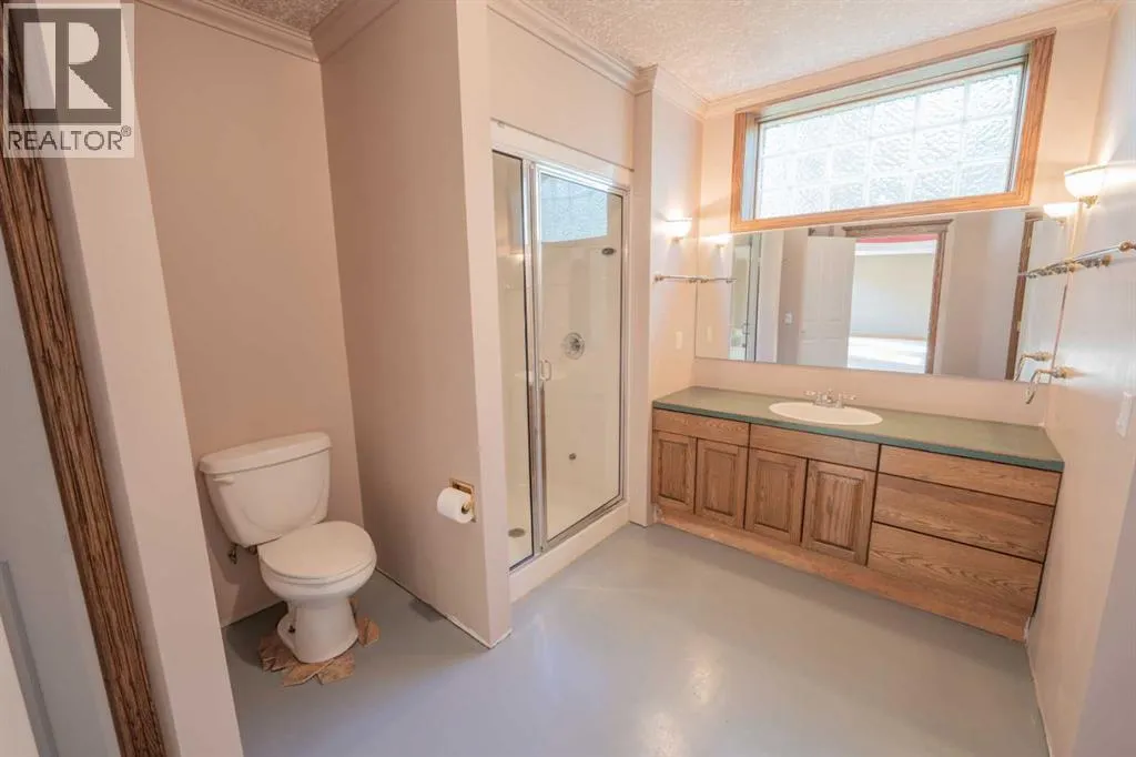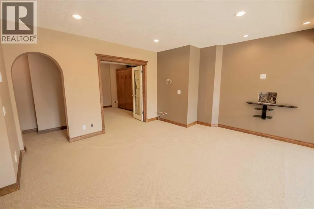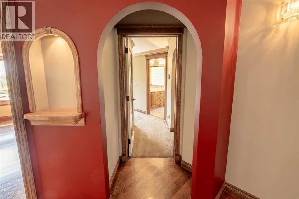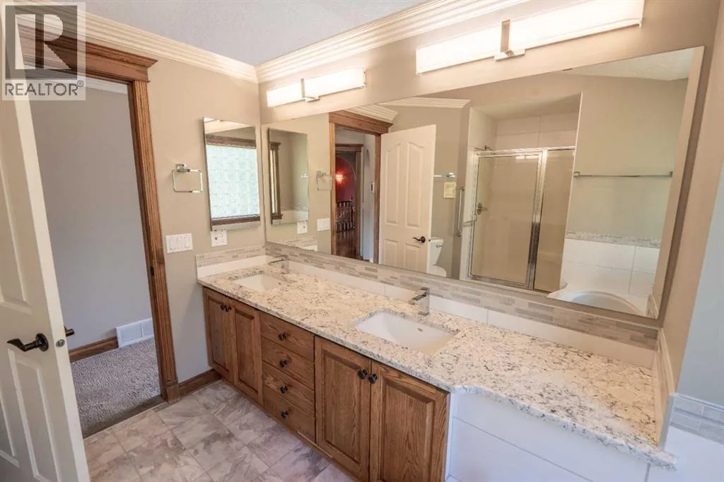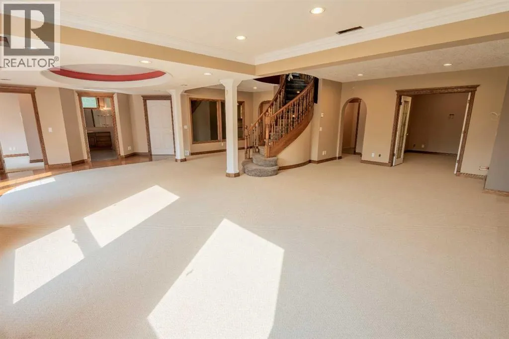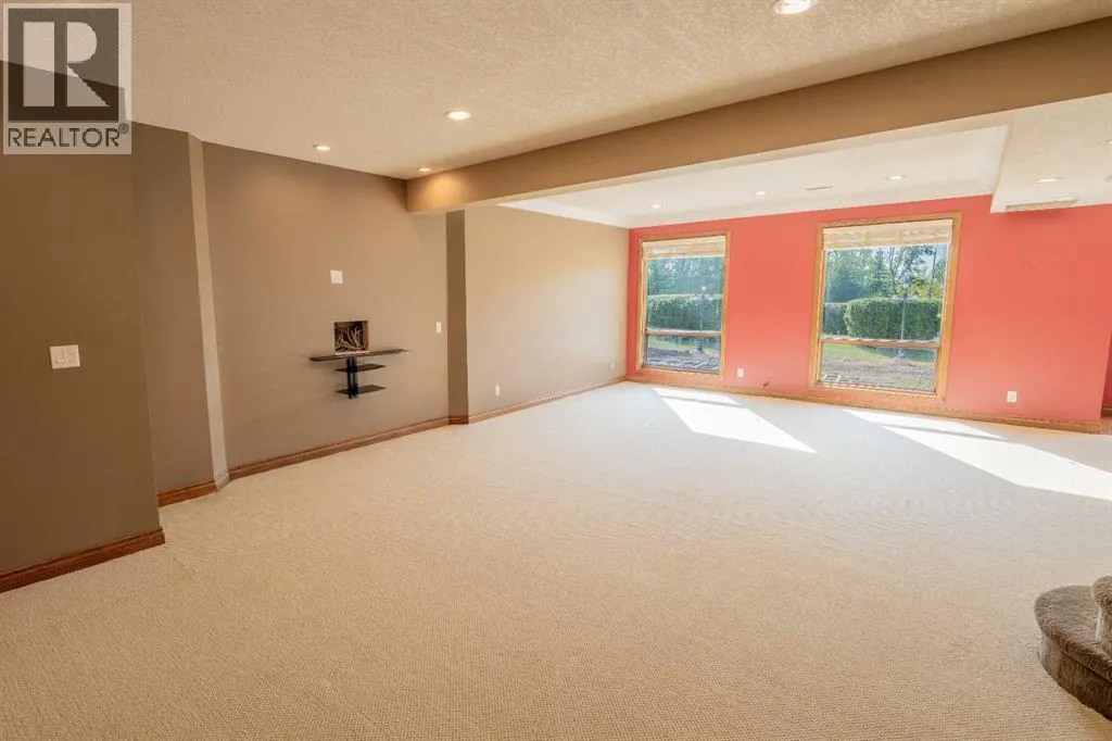 Nestled just north of Okotoks on just under four picturesque, park-like acres, this hillside bungalow offers an exceptional blend of privacy, tranquility, and convenienceâonly minutes from amenities, schools, and services.A gently curved driveway leads to the inviting wraparound front porch and ample guest parking. Inside, the spacious foyer opens to hardwood floors, soaring vaulted ceilings, and a beautifully designed living and dining area highlighted by a custom entertainment centre and a gas fireplace with mantle. The kitchen features a cozy breakfast nook, oversized pantry, and direct access to the wraparound deckâperfect for outdoor dining and barbecuing. An enclosed sunroom provides additional year-round enjoyment or the option of a greenhouse. The main level is complete with two generously sized bedrooms, including a comfortable primary retreat.The fully developed walkout lower level is designed for family living and entertaining. A curved staircase leads to the expansive billiard and family rooms, complemented by a guest bedroom with ensuite access to a five-piece bath, a hot tub room awaiting your finishing touches, plus an office, bar area, and mechanical room with convenient service access to the garage.Car enthusiasts and hobbyists will appreciate the heated, insulated four-car attached garage, offering abundant space and functionality. Outdoors, mature perimeter trees provide rare privacy, while the gently sloping landscape leads to private retreats, garden areas, and a water dugout that doubles as a charming skating rink in winter.This is a truly special property where peace, space, and nature come togetherâavailable for immediate possession. (id:27476)