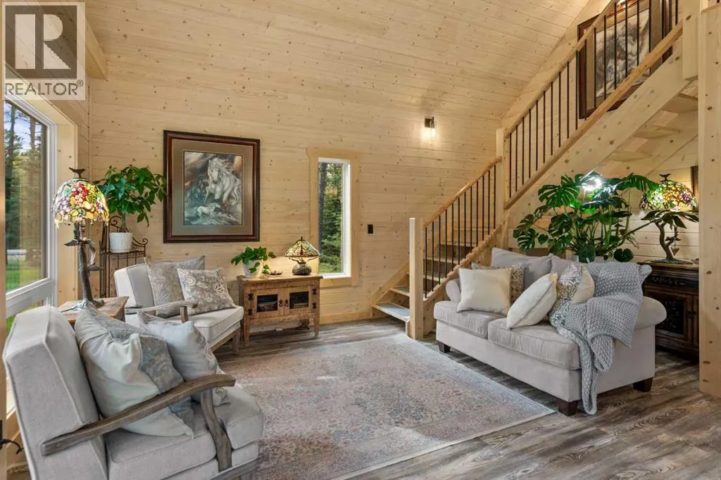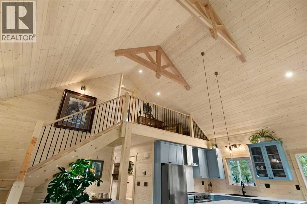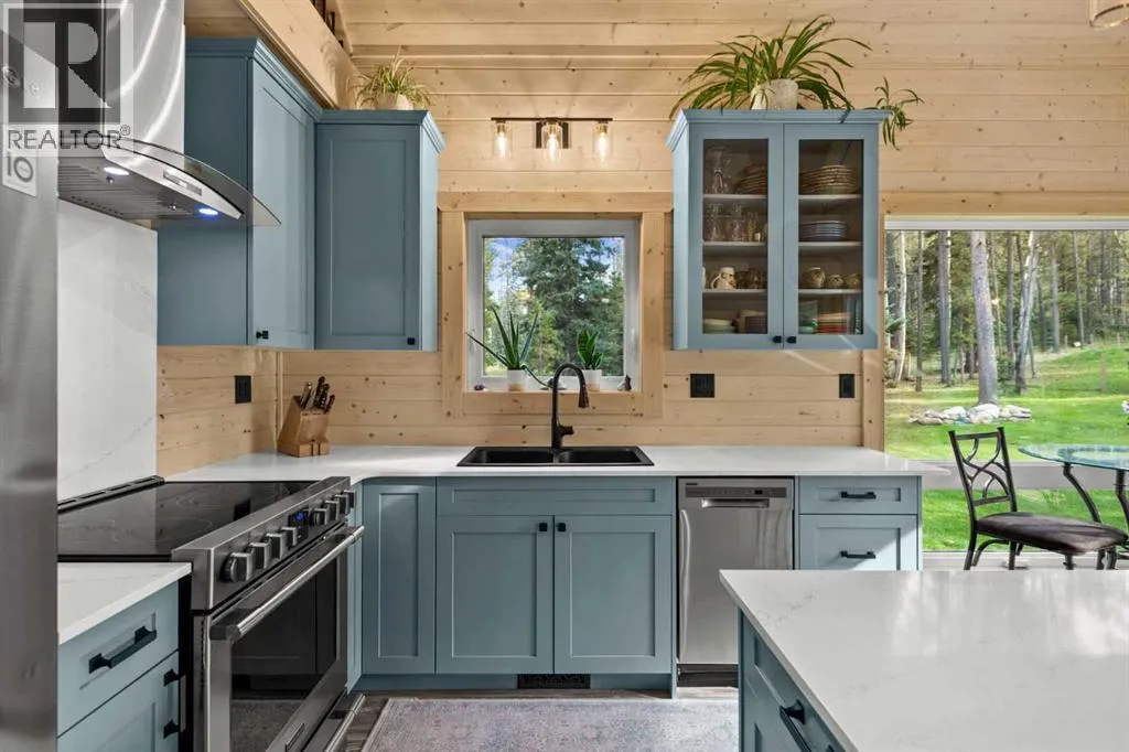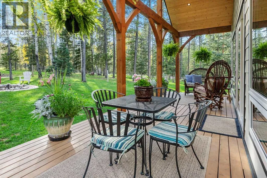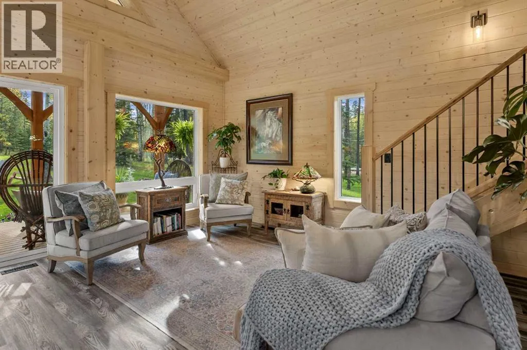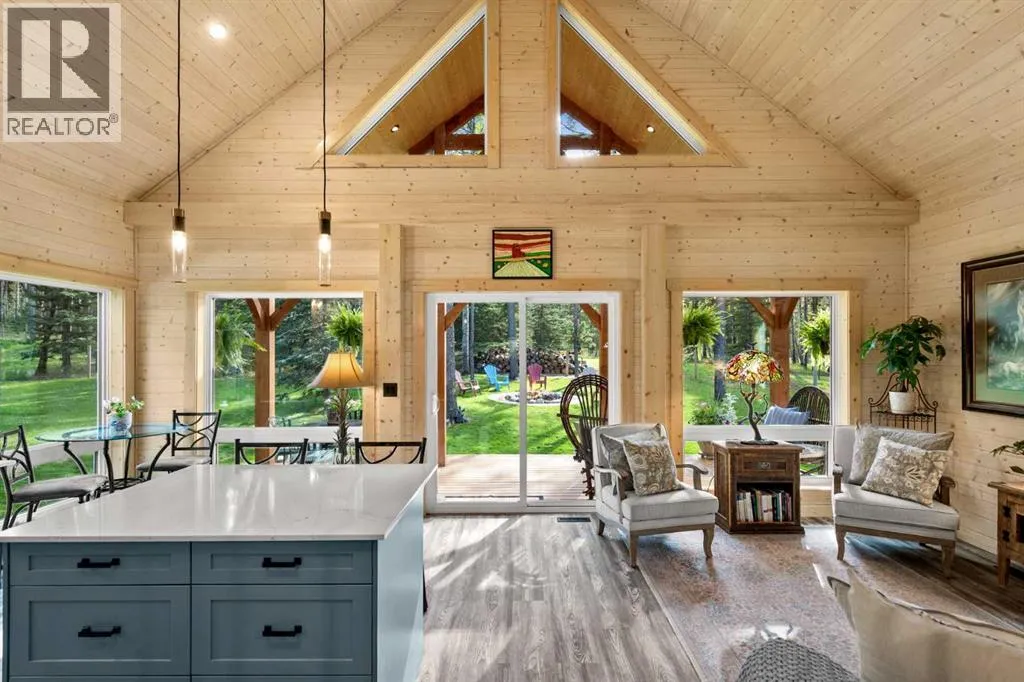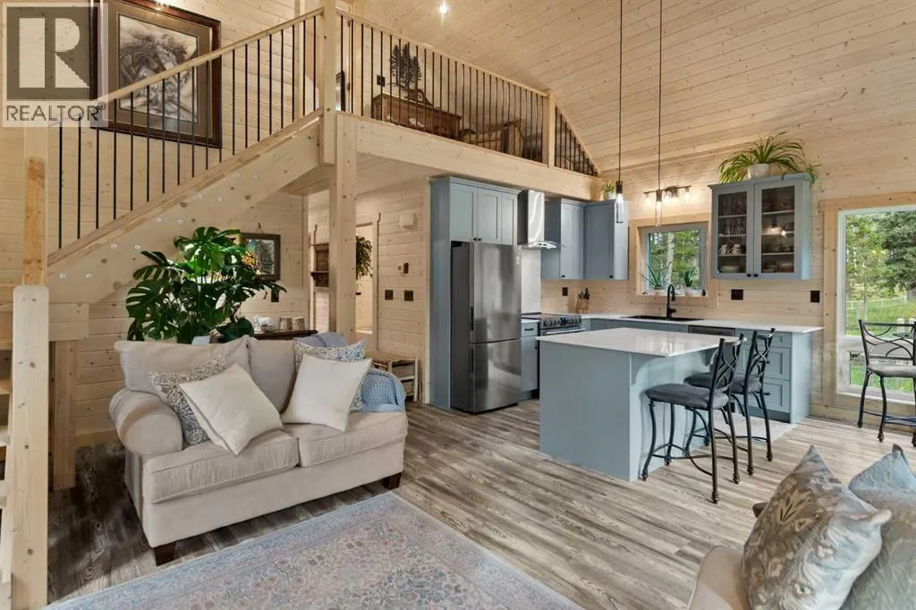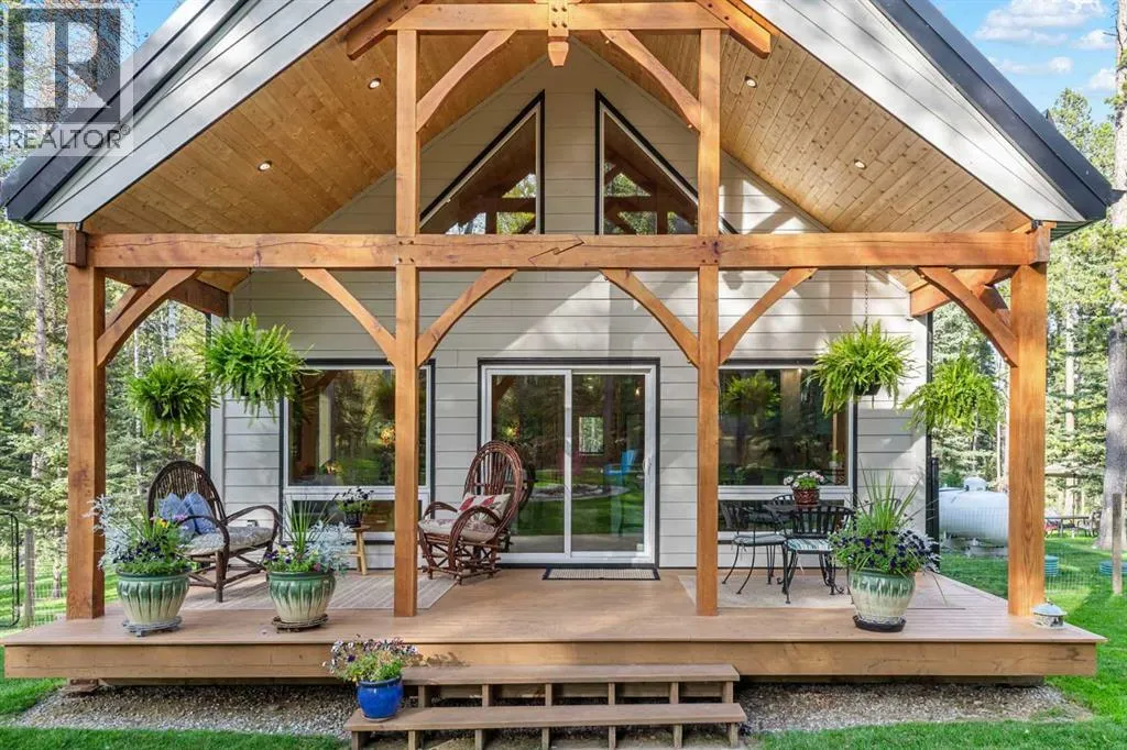 Set on 5.51 acres in desirable South Bragg Creek, this property is a rare blend of modern comfort and natural beauty. Towering mature forest, thoughtfully cleared of deadfall, creates lush vegetation, manicured lawns, and a true park-like setting. The fenced yard is ideal for children or pets and offers endless room to enjoy the outdoors. The classic 1.5-storey home, built in 2023, offers 2 bedrooms and 2 full bathrooms, showcasing warm pine interiors with fully insulated walls, luxury vinyl plank floors, quartz countertops, and upgraded stainless steel appliancesâall within a bright, open-concept layout. Designed for both style and function, features include Hardie board siding, a metal roof, triple-pane windows, and low-maintenance finishes throughout. Both the front deck and covered back deck capture the tranquility of the setting, while a massive in-ground firepit invites gatherings or quiet evenings under the stars. Practical features include a garden shed, horse shelter, RV electrical hookup at the house, and water with hydrant plus power ideally placed for a future horse waterer, or even garage/shop. With propane heating, on demand hot water heating and house electrical setup for a generator, the home is ready to operate off-grid if desired! All of this just minutes from Bragg Creek Hamlet and only 20 minutes to Calgary. (id:27476)