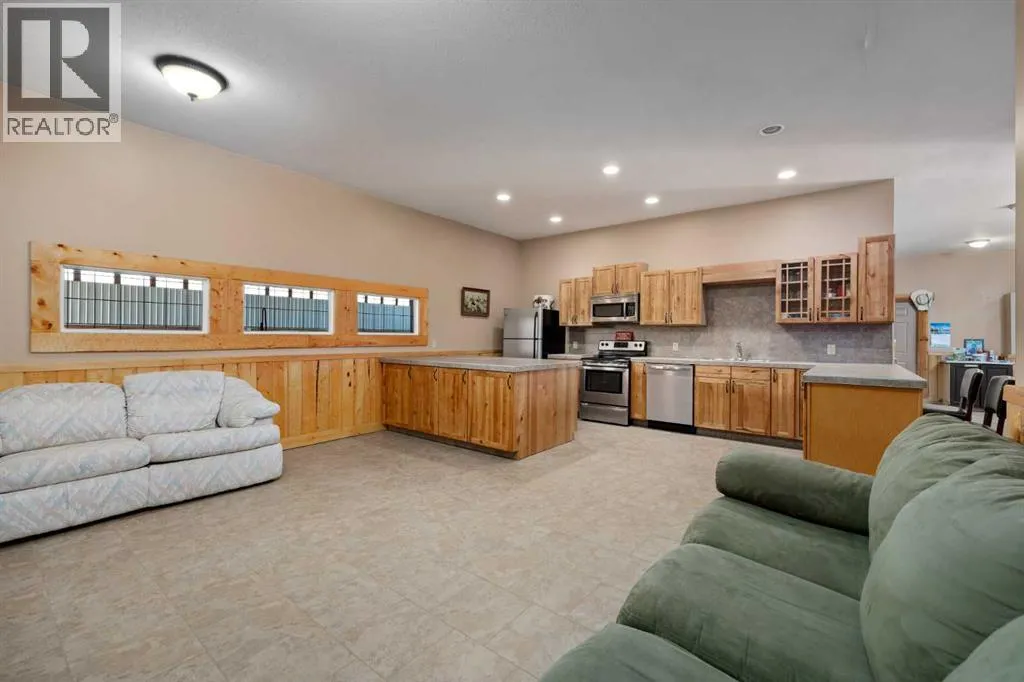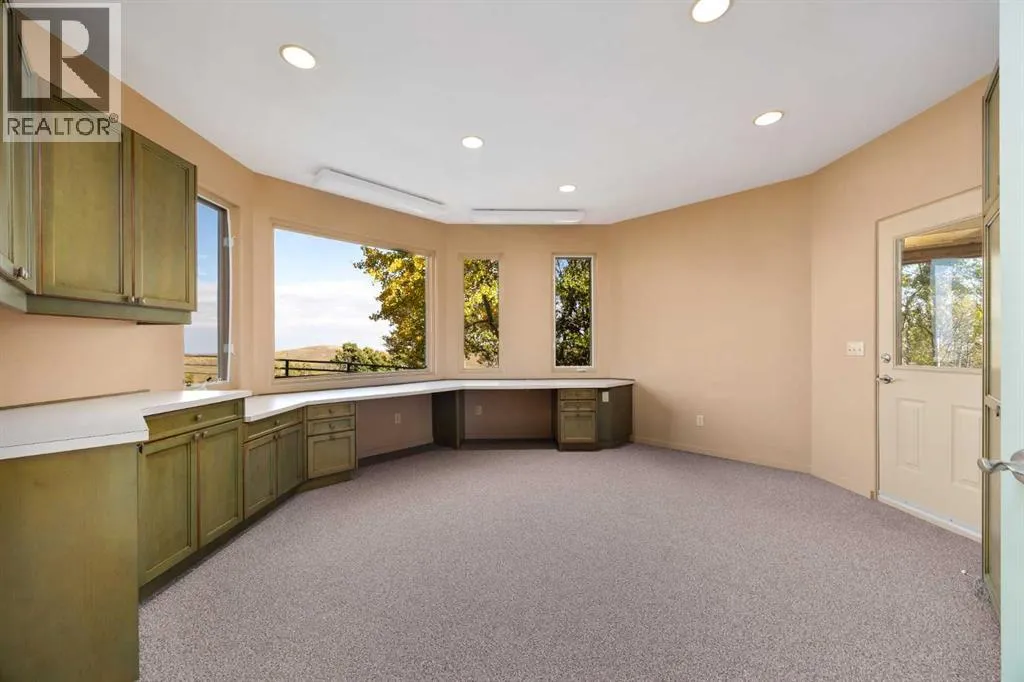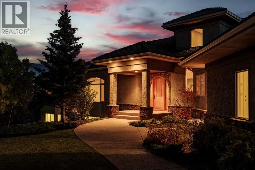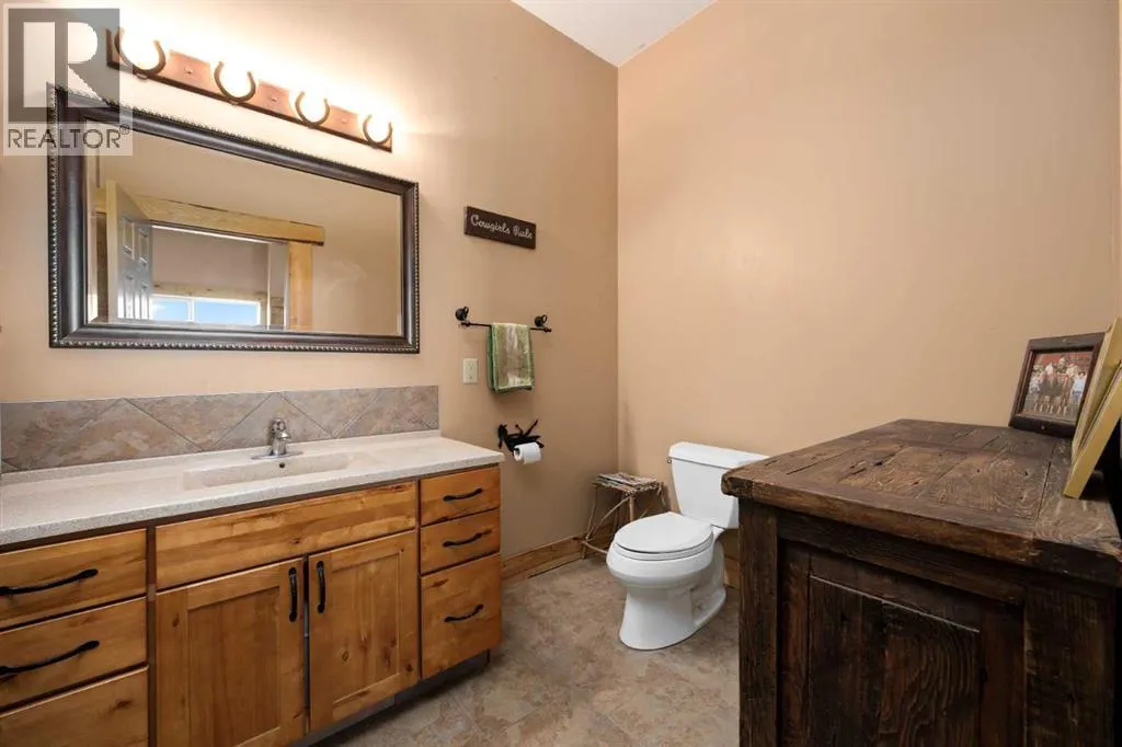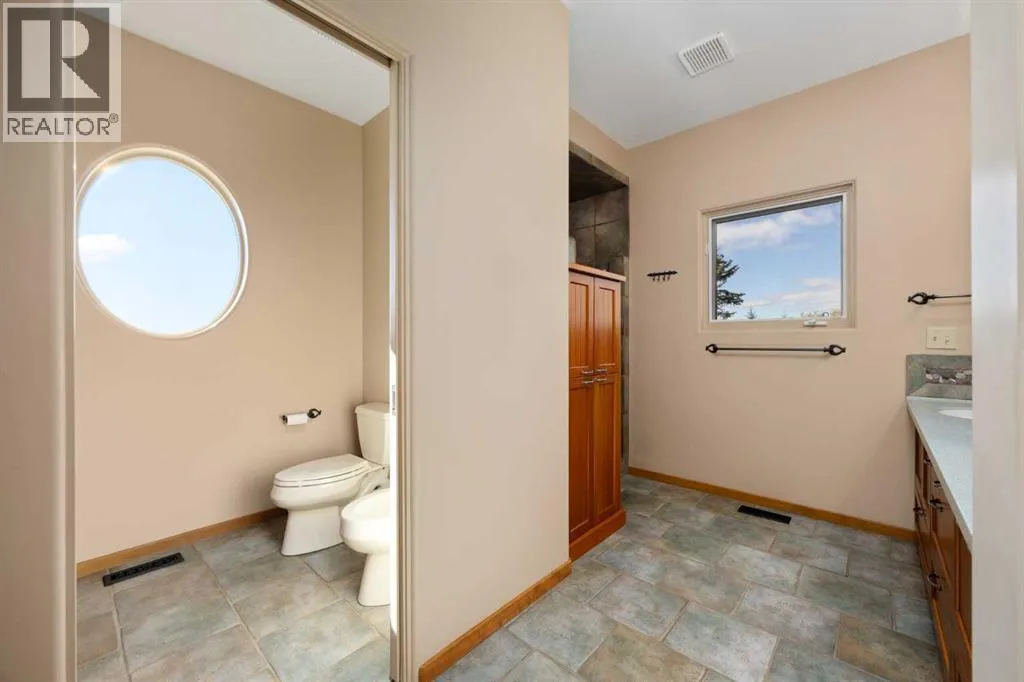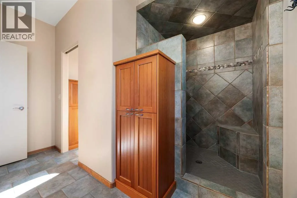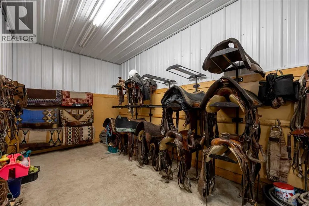 Welcome to an extraordinary 160-acre country estate where luxury, privacy, and equestrian excellence unite within a protected wildlife corridor. Panoramic views of the Rocky Mountains and Calgary skyline provide a breathtaking backdrop to this serene yet conveniently located property.A gated, rail-lined drive leads to a striking 3,483 sq.ft. custom walkout bungalow with over 6,200 sq.ft. of developed living space. Designed with light, proportion, and warmth in mind, this five-bedroom, five-bath residence features soaring ceilings, expansive windows, cherry hardwood floors, and handcrafted millwork. The flagstone foyer opens into a great room centered around a wood-burning stone fireplace that embodies both comfort and sophistication.The gourmet kitchen is a showpiece of design and function with granite countertops, birdâs-eye maple cabinetry, hand-forged hardware, high-end appliances, a copper hood fan, and cedar-lined vaulted ceiling. It flows seamlessly into the dining and living areas, extending to a wraparound cedar deck that frames sweeping mountain and pasture viewsâperfect for entertaining or quiet evenings outdoors.The spacious primary suite overlooks the Rocky Mountains and offers a private retreat with a gas adobe-style fireplace, deck access, walk-in closet, and spa-inspired ensuite. Thoughtful utility spaces include a custom mudroom, oversized pantry, and an exceptional laundry room. The fully developed walkout level provides a large recreation area with a second stone fireplace and abundant natural light.The homeâs timeless exterior features low-maintenance adobe-style stucco, natural stone accents, a clay tile roof, and covered verandas surrounded by professionally landscaped grounds with underground irrigation. Every element reflects an effortless blend of elegance, practicality, and connection to the land.Beyond the home lies a world-class equestrian facility designed for year-round enjoyment. A 70âx160â indoor riding arena with excellent footin g and natural light adjoins a main working barn featuring six box stalls, four tie stalls, a wash rack, heated tack room, and comfortable viewing lounge with full kitchen, laundry, and bathroom. A large garage bay provides ample room for trailers and equipment.A separate hip-roof barn includes 2,400 sq.ft. of inviting living quartersâideal for staff, guests, or extended familyâabove a fully insulated and heated shop with additional stalls. Outdoor amenities include a 100âx150â arena, multiple rail-lined paddocks, each with heated waterers and shelters and hay storage. A seasonal creek, rolling pasture, and aspen groves weave through private riding trails that invite exploration.A 3,000-gallon cistern, two wells, and a rainwater catch system support residential, agricultural, and equine needs, ensuring efficiency and sustainability.Only 28 minutes from South Calgary, 15 to Okotoks, 20 to Spruce Meadows, and 10 to Strathcona-Tweedsmuir School, this estate redefines country living. (id:27476)