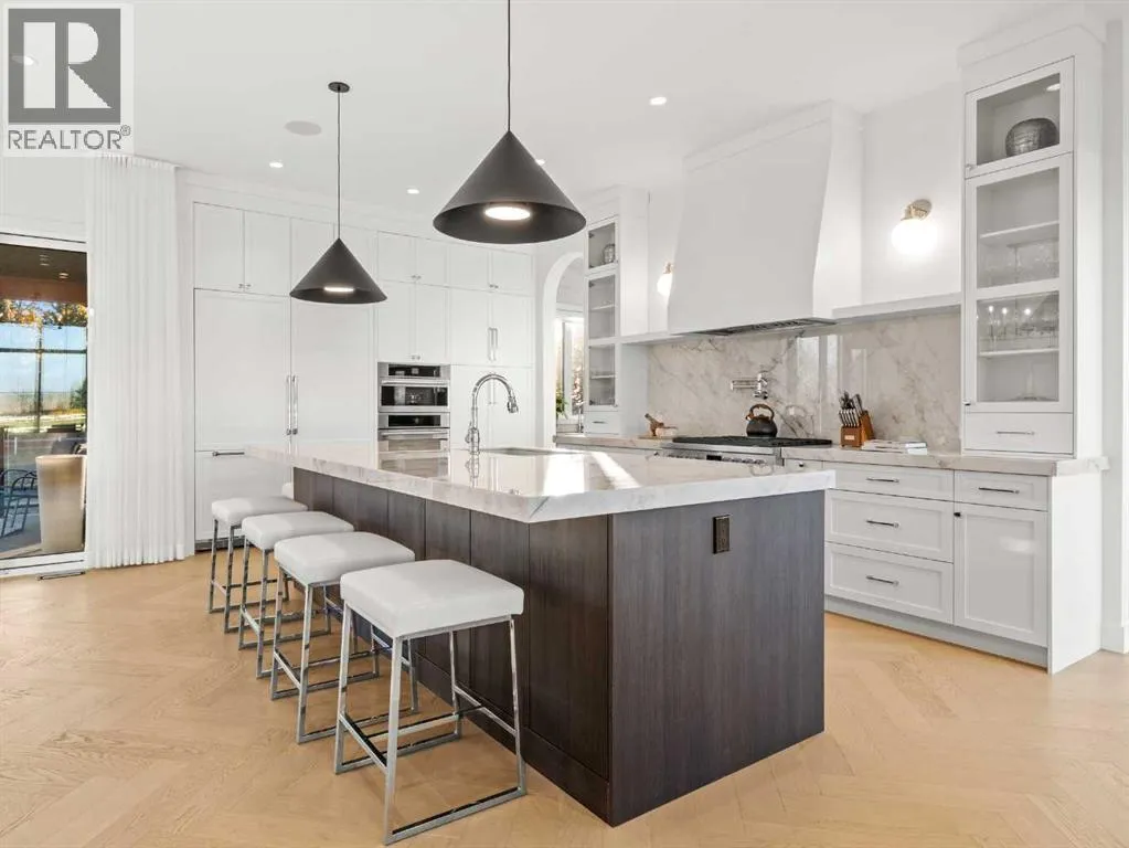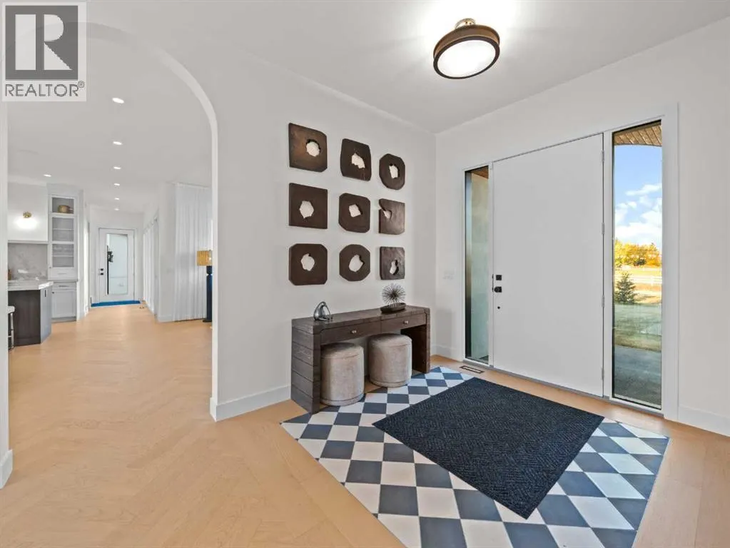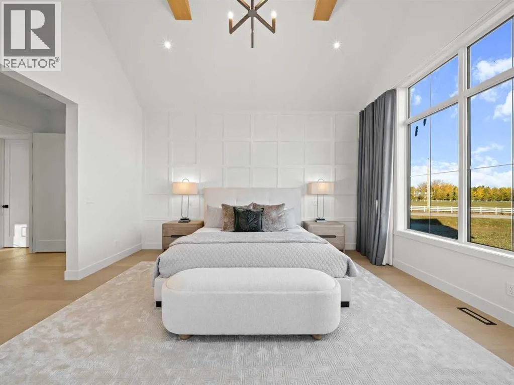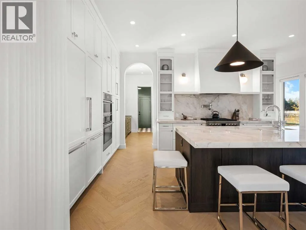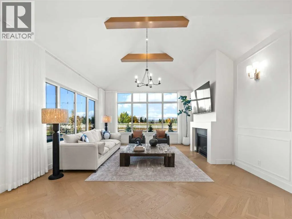 OPEN HOUSE - Sunday (November 2) from 1 pm till 3 pm! Nestled in the rolling landscapes just outside Southwest Calgary, this stunning custom-built luxury estate offers the perfect balance between serene country living and urban convenience. Located on a 2.4-acre private lot in a quiet cul-de-sac surrounded by other executive homes, this brand-new residence combines timeless craftsmanship, elegant design, and modern functionality, just 3 minutes from Spruce Meadows and 30 minutes from downtown Calgary.With over 5,500 sq. ft. of finished living space, this home was built with meticulous attention to detail. Step inside to discover a bright, open layout filled with natural light, soaring ceilings, and elegant arched doorways that bring classic charm into the modern design. The main living area features large picture windows with mountain views, a beautiful fireplace centrepiece, and seamless flow into the dining area and spacious terrace, perfect for entertaining or relaxing while enjoying the peaceful scenery.The chef-inspired kitchen is a true showpiece, boasting an oversized island, Brazilian porcelain countertops, custom cabinetry, and Italian Fulgor Milano appliances. A fully equipped butlerâs pantry adds functionality and extra storage, while the adjoining mudroom connects to a triple attached garage designed for convenience and versatility.The main-floor primary suite feels like a private retreat with vaulted ceilings, a fireplace, and a private covered deck for morning coffee or evening wine. The spa-like ensuite features a freestanding tub with mountain views, a glass-enclosed steam shower, and a massive walk-in closet with custom built-ins.Upstairs, a spectacular bonus room above the garage includes vaulted ceilings, a full bathroom, and a private west-facing balcony, ideal as a media room, guest suite, or entertainment area.The walkout basement offers incredible natural light and a flexible open layout, complete with a wet bar, a large family area, thre e spacious bedrooms (each with walk-in closets), and two full bathrooms. Step directly outside to a covered patio and your blank canvas backyard, ready for your dream landscape, pool, or outdoor kitchen.Every inch of this property reflects quality, craftsmanship, and thoughtful designâfrom heated tile floors and custom millwork to the seamless blend of comfort and sophistication throughout.If youâve been searching for a home that offers privacy, space, and elegance without sacrificing proximity to the city, this one-of-a-kind estate is it. (id:27476)