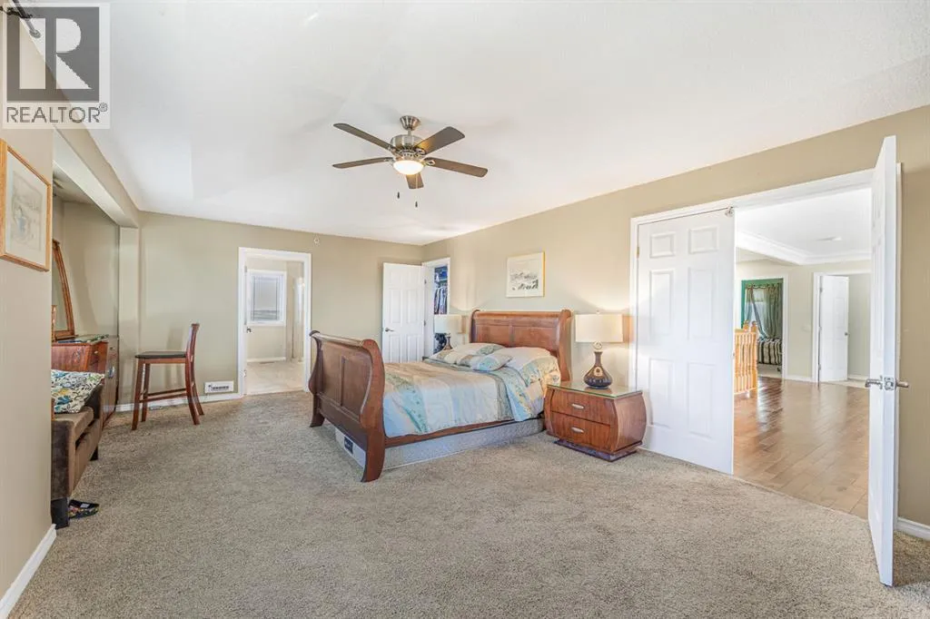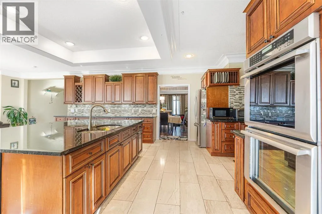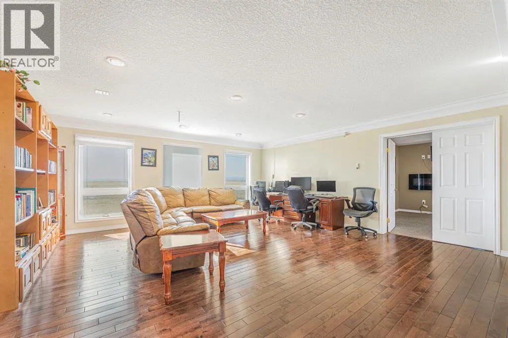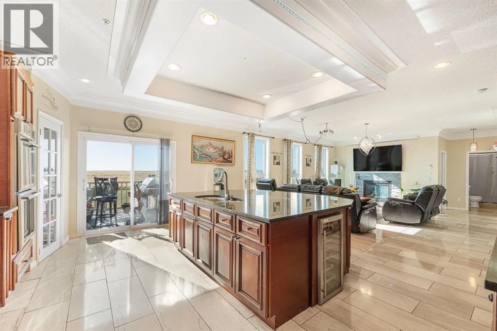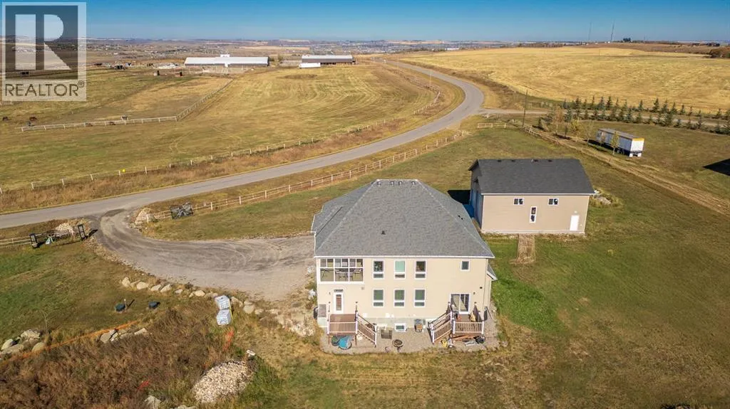 Stunning 18-Acre Estate with Panoramic Mountain Views, Geothermal Heating & Executive WorkshopWelcome to an extraordinary country retreat just minutes south of Okotoks and a short drive to Calgary â a one-of-a-kind residence combining cutting-edge construction, elegant design, and breathtaking mountain vistas. Set on 18 serene acres along Clear Mountain Drive, this grand home showcases superior energy efficiency, exceptional craftsmanship, and room to live, work, and play.Impeccable Construction & Design.Built to impress, the home features ICF (Insulated Concrete Form) basement walls and SIP (Structural Insulated Panel) construction on the first and second floors, ensuring remarkable strength and energy efficiency. Triple-pane windows throughout the home enhance comfort and quiet. Inside, enjoy 10-foot ceilings in the grand room, 9-foot ceilings throughout the main level, and elegant coved ceilings on every floor, including the dining room and office.Elegant InteriorsThe main floor is graced with marble and hardwood flooring, a welcoming two-storey vaulted foyer, and a sunken living room warmed by a cozy gas fireplace. The spacious dining area flows into a gourmet kitchen boasting an oversized island with built-in beverage cooler, double built-in ovens, a gas cooktop, elegant crown moulding, and abundant cabinetry. A main-floor office provides an ideal workspace.Luxurious Upper LevelUpstairs, a bright and generous loft offers a retractable screen for a home theatre. The primary suite includes a four-piece ensuite bath, walk-in closet, and a private enclosed balcony framing panoramic mountain views. Two additional bedrooms share a Jack-and-Jill bath, and a convenient upper-floor laundry completes the level.Expansive Lower LevelThe basement includes a second kitchen, two more bedrooms, a finished gym, storage area, and a poured, partially completed indoor swimming pool, awaiting your finishing touches. A sprinkler system is roughed in on all levels for added peace of mind.Exceptional Energy EfficiencyThe entire home is heated and cooled by a 6-ton geothermal energy system, offering environmentally friendly comfort year-round.Triple Garage (suspended, with pool underneath) & Professional Workshop in a separate buildingFor the hobbyist or business owner, a 1,500 sq. ft. shop awaits â large enough to accommodate a 40-foot RV. Also has a mezzanine level. Ready for power and water hookups.Country Living, City ConvenienceEnjoy the best of both worlds â country privacy and space paired with city proximity. Whether you envision a country estate, family compound, or simply room to breathe, this property offers endless potential. (id:27476)