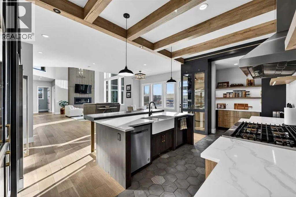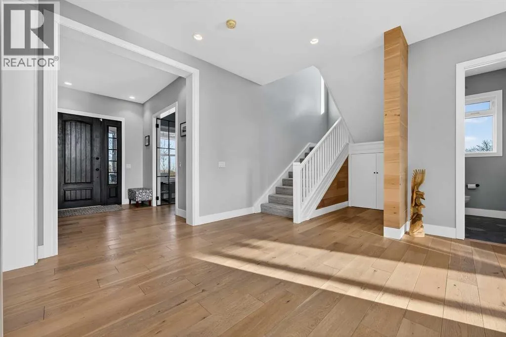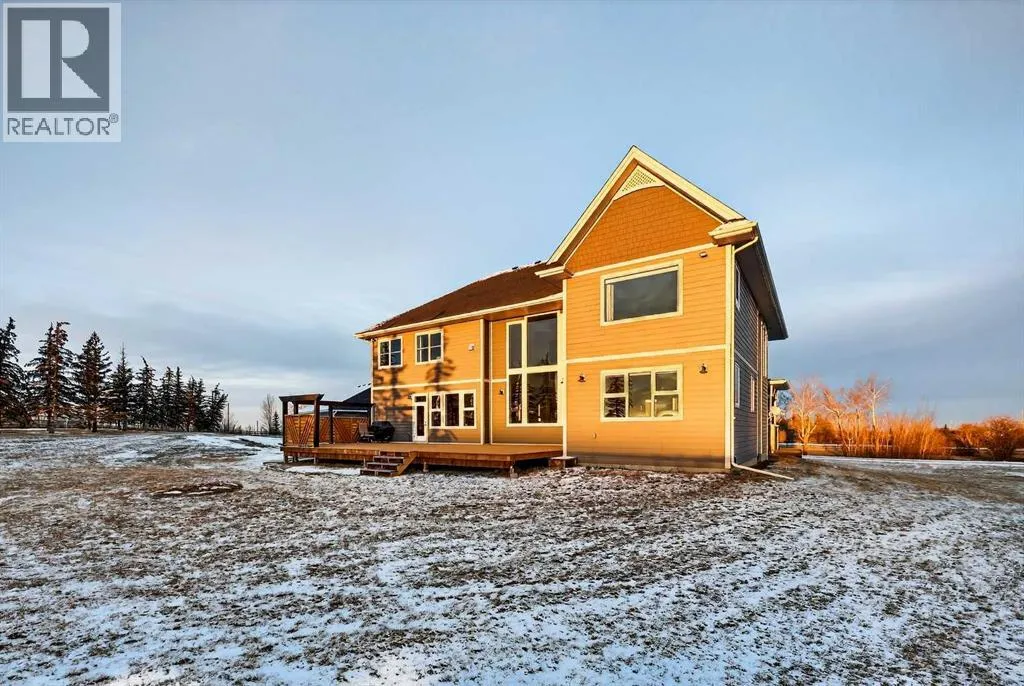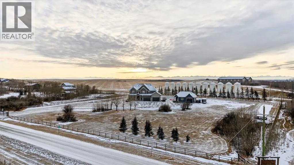 Welcome to a truly exceptional Foothills estate where refined design, modern luxury, and wide-open space come together in perfect balance. Set on 3.1 fully fenced and gated acres, this impressive 4,800 sq ft residence is tucked into one of the areaâs most sought-after upscale subdivisions, offering privacy, convenience, and breathtaking views of the mountains, rolling valley, and even glimpses of the city skyline.The striking exterior immediately sets the tone with HardiePlank siding, extensive stone detailing, Gemstone lighting, a welcoming front porch, and a brand new 44'x20' cedar deck designed for entertaining and sunset views roughed in for an outdoor fireplace. A heated 4-car garage and a newly completed 1,420 sq ft detached workshop, architecturally matched to the home with freshly paved access, provide exceptional space for vehicles, hobbies, or ample storage.Step inside to soaring 20-foot ceilings, oversized windows, and sun-filled living spaces anchored by a modern fireplace. The main floor is thoughtfully laid out with a private home office, a grand living room, and a refined dining area with a statement feature wall and fireplace. The chefâs kitchen is fully outfitted with newer high-end appliances including a brand new chef's dream gas stove and dual ovens, quartz countertops, a large island, modern cabinetry and a walk-in pantry, perfectly blending function and style. A generous recreational flex space offers endless possibilities. An ideal games room, home gym, theatre, man cave, or easily converted into a main-floor bedroom with exterior access to the massive deck.Upstairs, retreat to a large bonus room with mountain views, the perfect place to relax and unwind. Two spacious bedrooms are connected by a beautifully finished Jack & Jill bathroom, while a designer laundry room adds everyday convenience. Further down the open hallway youâll find the primary suite that is nothing short of spectacular!! Featuring west-facing mountain views, its own fire place, and the showstopping en-suite bathroom with top tier luxury, complete with a deep soaker tub, his and hers sinks and vanities, massive walk-in shower, designated water closet, and an expansive walk-in that truly has the WOW Factor.With 3 large bedrooms, 3.5 baths, multiple flex spaces for work, fitness, play, or entertaining, and remarkably efficient utilities, this home delivers both luxury and practicality. Enjoy nearby walking and quad trails, while being just 5 minutes to Okotoks, 7 minutes to Costco, 45 minutes to downtown Calgary, and 50 minutes to the airport.This property truly stands above the rest offering an unmatched combination of location, craftsmanship, space, and lifestyle. Schedule your private tour today and experience a home that genuinely has it all. (id:27476)