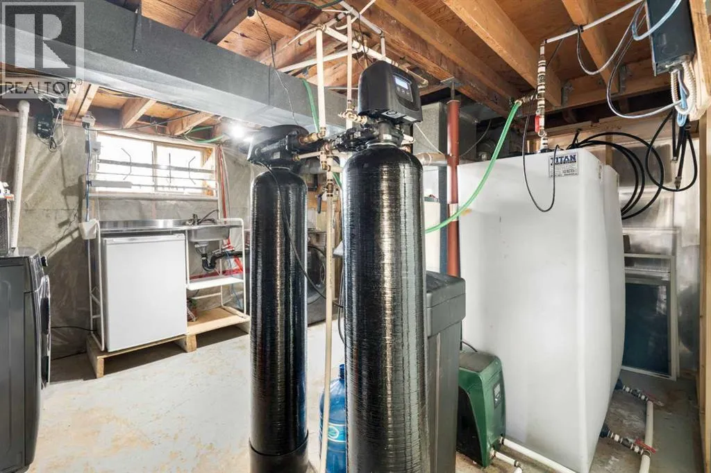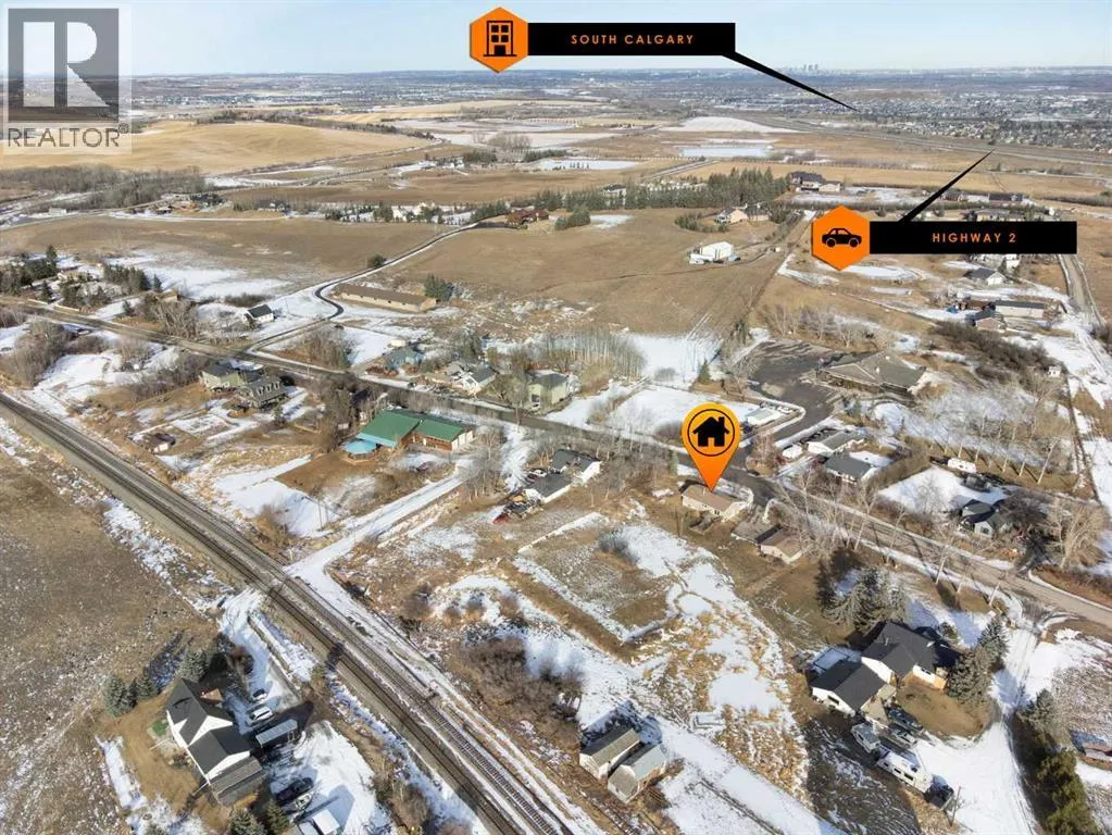 ****OPEN HOUSE SATURDAY FEBRUARY 14 , 12-4 PM ****Immaculately revamped, move-in ready bungalow on a private 1-acre acreage in the heart of De Winton in the Hamlet . A rare rural property with city access, offering true country living with quick access to Calgary (8 min) and Okotoks (10 min). Enjoy quiet country nights, clear skies, scenic countryside views, a historic view of the original Macleod Trail, and local wildlife, all while being steps from the community centre, playground, and local amenities. Minutes to Millarville Farmers Market, Saskatoon Berry Farm, and Kayben Farms. The land also offers potential for future business, commercial, or mixed-use opportunities, subject to Foothills County verification and re-designation approval. The bright, open-concept main floor features a skylight with a baby cathedral ceiling skylight, a huge length front porch, and an open kitchen and dining layout ideal for family living and entertaining. The updated kitchen includes a new dishwasher and induction stove. A warm family room with a cozy corner fireplace opens through new patio doors to an updated, spacious double deck overlooking a sunny south-facing yard, creating seamless indoor-outdoor living and great entertaining space. New air conditioning adds year-round comfort. Two generous bedrooms on the main floor plus a flexible basement room currently used as a game lounge and den. The primary suite comfortably fits a California King and boasts a newly renovated, bright 5-piece ensuite with oversized tub, plus a fully updated 3-piece main bath. The second bedroom easily accommodates a queen and works perfectly as a home office, guest room, or flex space. The unfinished basement includes a newly created game lounge, a large egress-style window, and is an easy conversion to an additional bedroom, media room, or recreation space. Major infrastructure upgrades provide excellent peace of mind, including new interior weeping tile, new sump pump, new 115 gal cisterns,(2021) new water filtration system, repaired and relocated well line, repaired septic system, new electrical panel with repairs, and a radon mitigation pump. The refreshed utility room includes a newer washer, dryer, utility sink, and mini fridge. Truly turnkey and worry-free.A massive 996sq. ft. oversized double detached garage (25.6 x 39.1) with workshop space is ideal for storage, hobbyists, mechanics, or equipment, and is large enough to convert into a triple car garage. A rare hidden gem for updated countryside living in the beautiful community of De Winton! Hurry before it's gone! (id:27476)