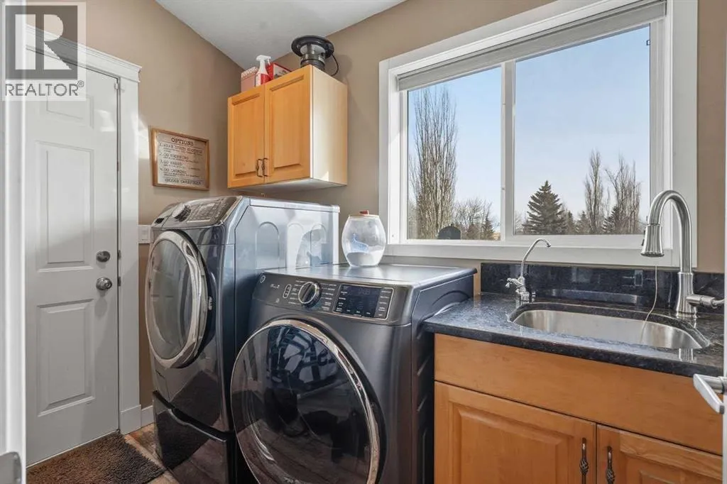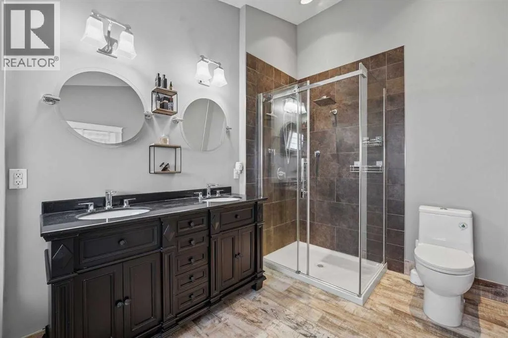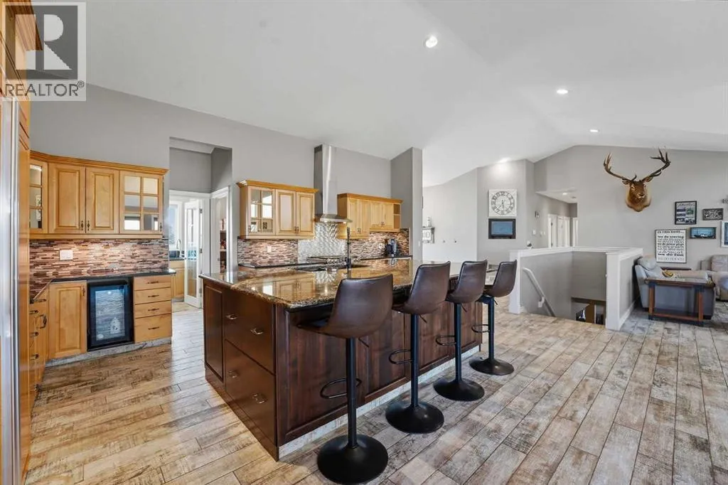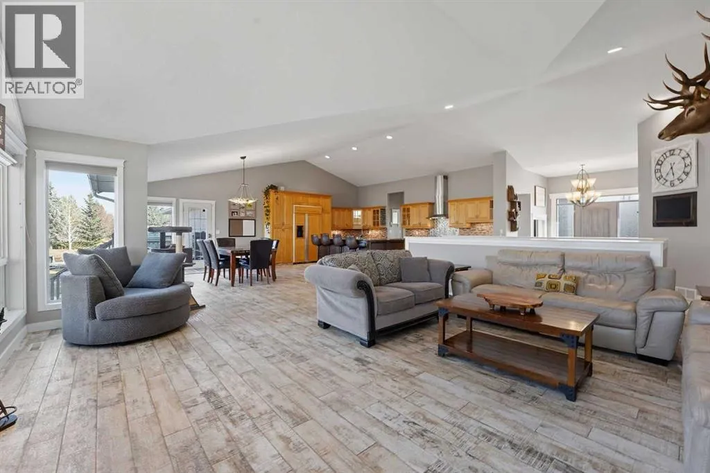 MOVE In Ready inside & out! Luxury acreage living in prestigious Silvertip Ranch just minutes from the conveniences of Okotoks including Okotoks school designation! This sprawling 5 bedroom, 3.5 bathroom walk-out bungalow offers over 5000 square feet of fully developed living space on 1.21 beautifully landscaped acres with High River water!! You will enjoy your 3 car attached and heated garage with 220V & an additional auxiliary garage for all your "toys". Of course, you have RV parking & a drive-through fully paved driveway with tonnes more parking for all your "entertaining" & sporting needs! Everything your heart desires within steps & WITHOUT the noise of an unfinished new build or dust from a gravel road.Soaring 13' vaulted ceilings elevate every main floor room , while the open-concept design showcases a chef-inspired kitchen with 2 dishwashers, 2 wine fridges, a hammer copper sink, gas range, tonnes of in-island storage & an abundance of natural light everywhere! The main living area has wide planked tile floor which is made to mimic hardwood with the durability of tile for kids and animals - and the windows have a solar shield to aid with keeping the heat out on warm summer days. This home has two amazing "at home office" options you must see - one with outside access! The fully developed walkout basement with 9FT CEILINGS & in-floor heat features a spacious recreation area, bar, 2 additional large bedrooms, an awesome office, 4 piece bathroom with STEAM SHOWER and in addition - a gym/flex room! Checkout the floor plan & room measurements to truly understand how FUNCTIONAL this home is. Noteworthy upgrades & features include hot water on demand, new carpet, IN-FLOOR heat, 220V in garage, in ground sprinkler system taken care by the community association. The landscaping is DONE from one end to the other on an oasis of lush trees & grass to enjoy year round! Bring your ATV, your golf cart and your RV - you've got inside storage & outside space to spare! Take in the serene views of lush manicured surroundings - the perfect balance of peaceful acreage living with city conveniences nearby! (id:27476)