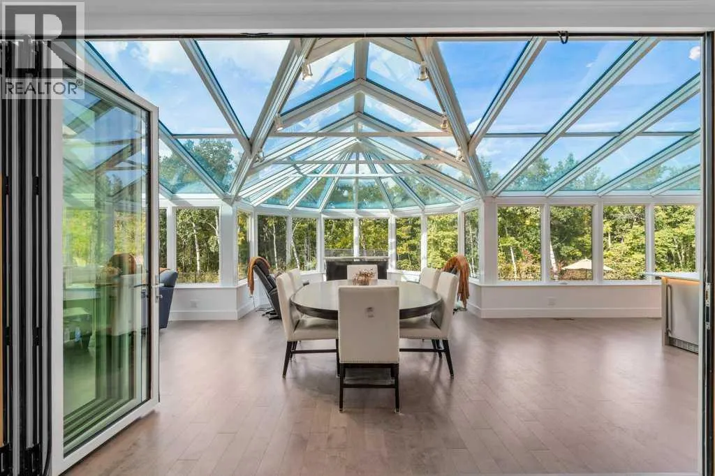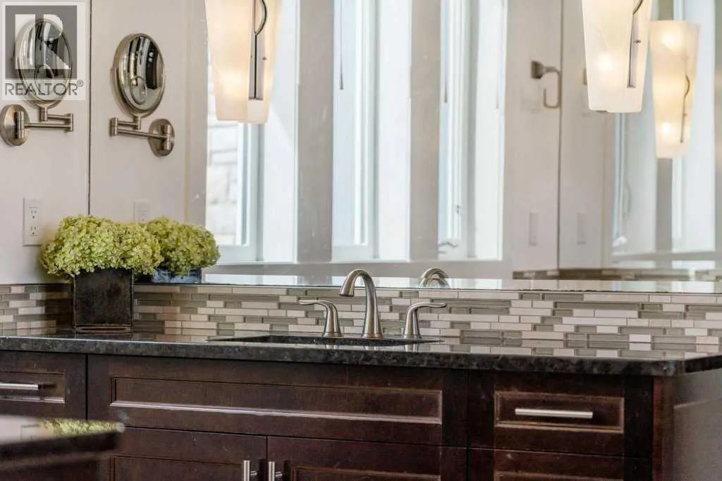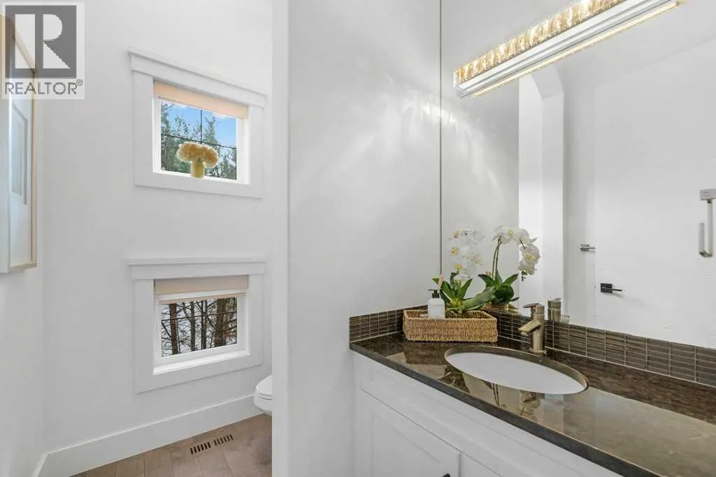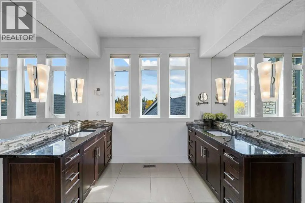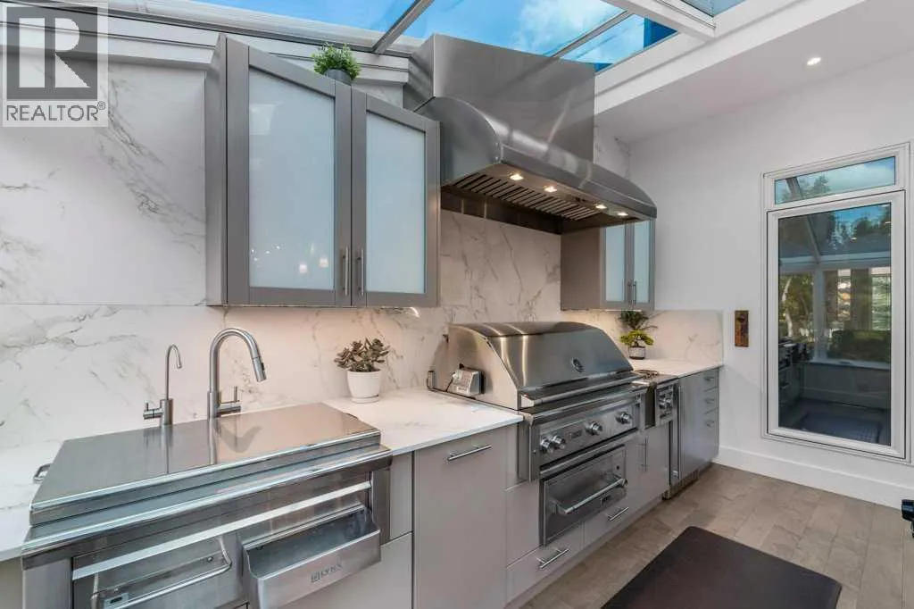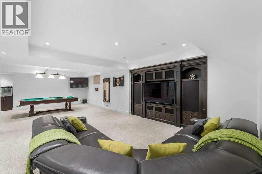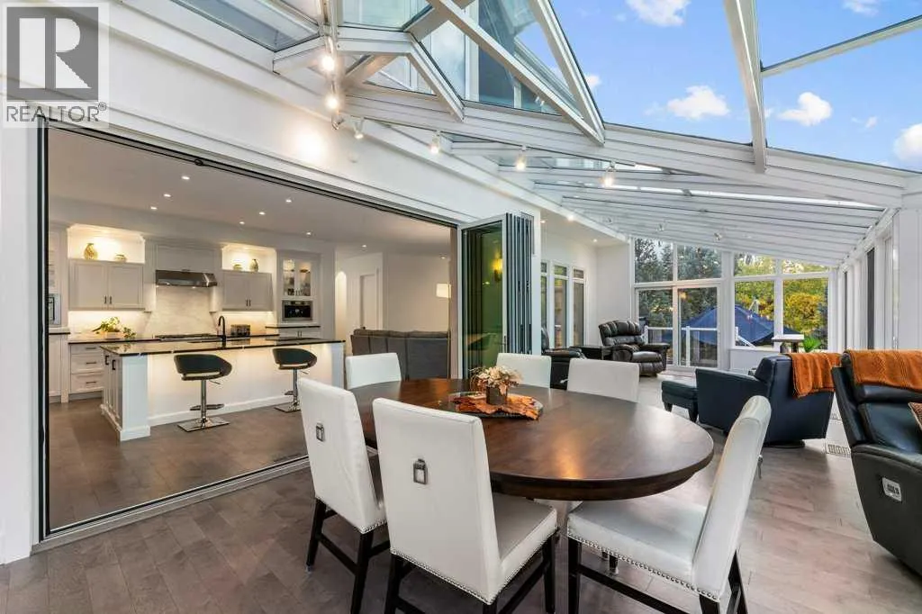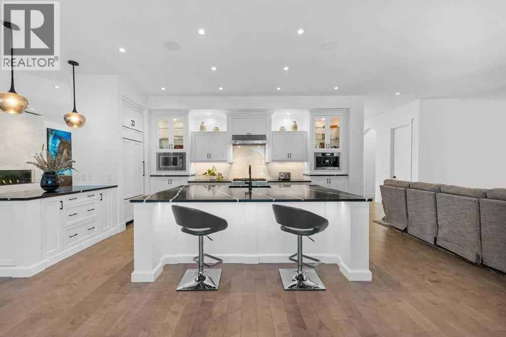 *Welcome to this extraordinary, fully renovated estate home in the prestigious community of Heritage Pointe, offering exclusive lake access and surrounded by natural forest beauty! Situated on a prime lot & backing onto a treed forest, the home has undergone a major renovation. It now features the addition of a spectacular 800 sq. ft. "entertainer's dream" 4 season sunroom (with new foundation and its own furnace/plumbing/air conditioning) - a true showpiece created for both relaxation and entertaining! Outfitted with premium appliances, the chef's kitchen serves large gatherings; a spacious dining room is adjacent, plus a living area for relaxation, where dual large-screen TV's seamlessly rise from the hardwood floors - at the touch of a button! The main home's central kitchen is renovated with new quartz counters/island, new appliances, marble backsplash, plus a newly reconfigured lighted pantry. With a living / dining room that has a new floor-to-ceiling feature "linear" fireplace, perfect ambience is createde. A stylish great room, also adjacent to the kitchen, provides built-in cabinetry with lighted accents. All new hardwood floors adorn the main level, new lighting, all solid interior doors, new carpets. A main floor office, half bath and mudroom complete the main level. The upper level currently features 4 bedrooms (could be bonus room with 3 bedrooms). The master suite showcases vaulted ceilings, a private sitting area overlooking the forest, spa-like 5 pc ensuite w/air jet tub, steam shower & large walk-in closet, heated floors! The professionally finished lower level features a 4th bedroom, bath, media area, games room w/expansive wine bar, fitness room w/cork flooring & 2nd laundry. Direct Connect networking throughout. Dual central air conditioners, gas generator and extensive solar system - serves entire home! The 4 car garages (two double garages) are separated by a breezeway. The rear yard showcases an 8 person "waterfall" mineral h ot tub with an adjacent fire pit gathering area - grounds with underground sprinklers systems. Whether hosting a gathering or hosting a quiet evening, the indoor/outdoor ambience and forested views create a resort-like view year-round! Experience the best of lake living, privacy, and modern sophistication, in one of Alberta's most sought-after communities. (id:27476)