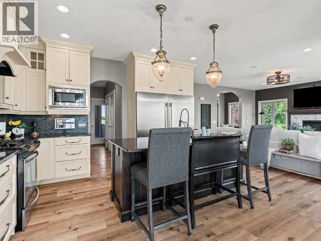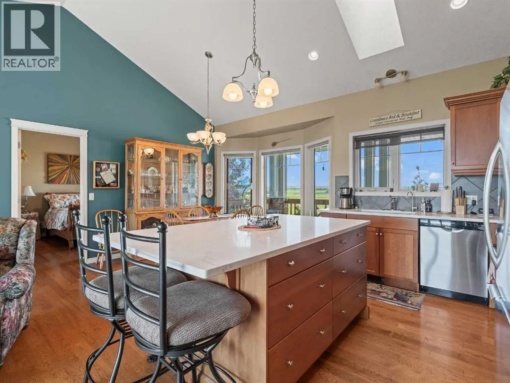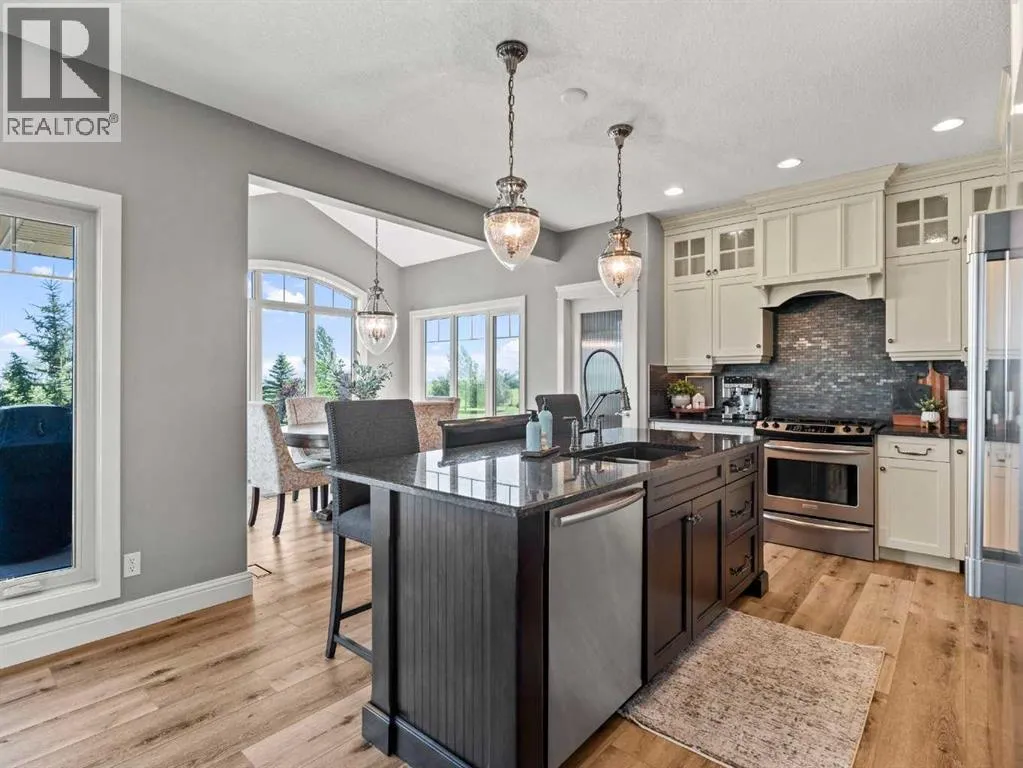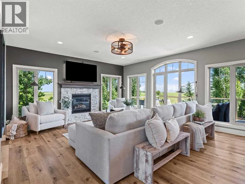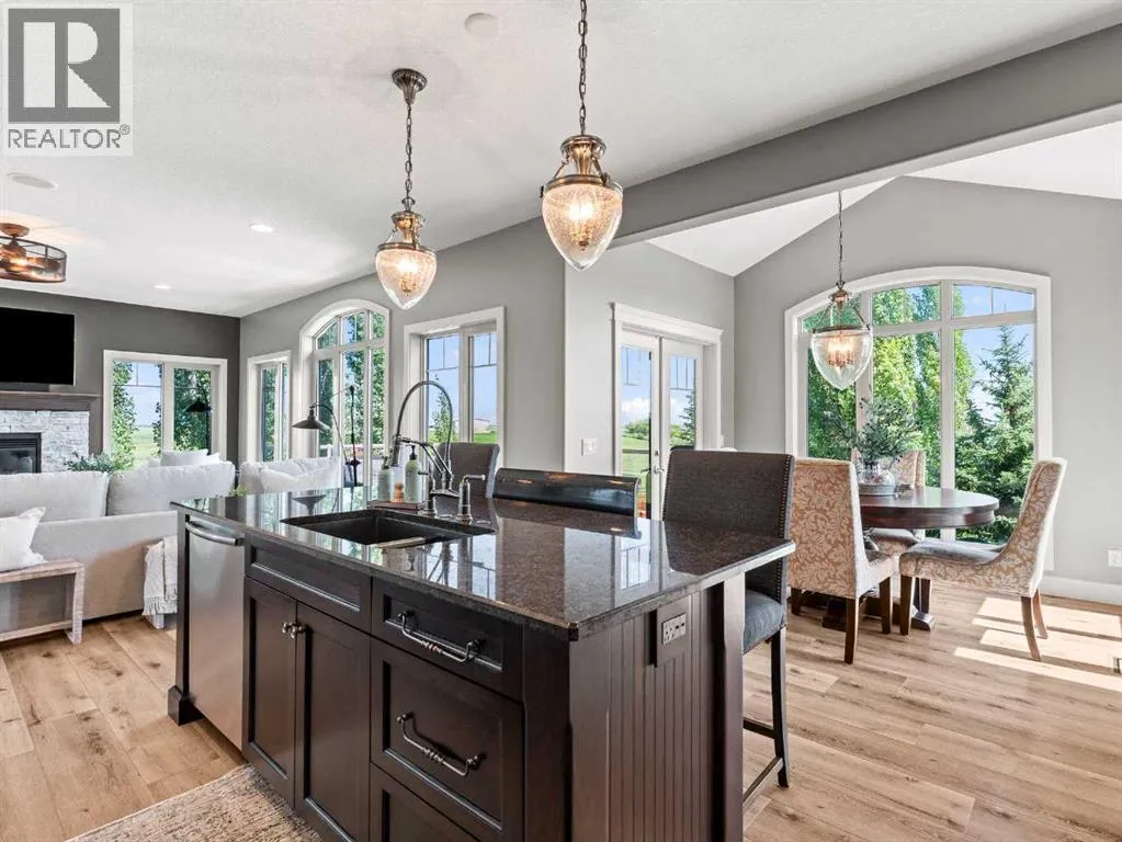 **MOUNTAIN VIEWS ** 5.14 ACRES**2 HOMES IN ONE** 54'x32' SHOP** HEATED POOL** Unique opportunity to have a custom built 2 STOREY HOME attached to a BUNGALOW. ~Multi family generational living at its finest~ This exquisite property has been immaculately maintained and is ready for its new owners. Step inside to this Air-conditioned , showhome like setting - and embrace the feeling of comfort. The updates through out the home shine through as you step through the main living area on the beautiful luxury flooring. Huge windows allow plenty of natural light and views of the big Alberta Skies. The beautifully presented kitchen is the true heart of the home featuring upgraded appliances, loads of cabinetry, and a large sit up island. A perfect place to entertain guests with an open floorplan that combines , living, dining, and kitchen in one space. The upper level boasts a primary suite suited for king sized furniture, and a renovated ensuite with 2 way fireplace. Enjoy the views in this tranquil setting while relaxing in a space that you will not want to leave. The architecture of the rooflines on this home will capture your eyes and your heart. 2 more large bedrooms and a full bathroom complete this upper level. The lower walkout level gives a good place for a recreation area, gym, home based business, or whatever your needs may be. The bungalow "wing" of this expansive home provides a full second living area. The large kitchen, vaulted ceilings, huge amounts of natural light, and open floor plan, make this cozy space the perfect place to settle into. This part of the home offers 1 bedroom up plus ensuite and 2 piece bathroom. The lower level walkout has 2 more bedrooms, another full bathroom, and a huge living space. After falling in love with the interior of this home you are definitely going to love the outdoor space. With 2 upper decks, 2 front porches 2 lower patio spaces, a covered gazebo sitting area, a poolside pergola deck overlooking the stunning heated pool, an outdoor fireplace , this place is made for entertaining, staying home, and making memories! The 54 x 32 shop is icing on the cake. Immaculate landscape, mature trees, triple heated garage wide open spaces- there is truly something for everyone at this exceptional property. Send the kids on the bus right from your driveway, this is a quick commute to Calgary and Okotoks. Become a part of the Davisburg community and enjoy their events just down the road from home. THIS PROPERTY IS TRULY THE CHANCE OF A LIFETIME ... (id:27476)