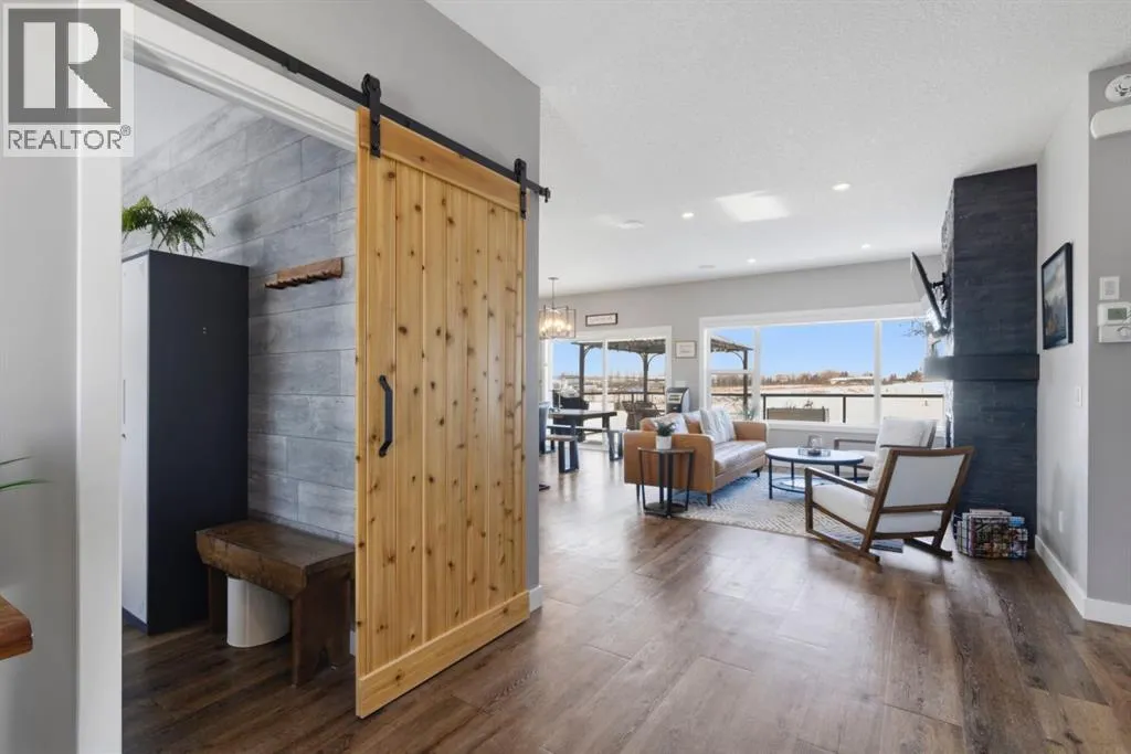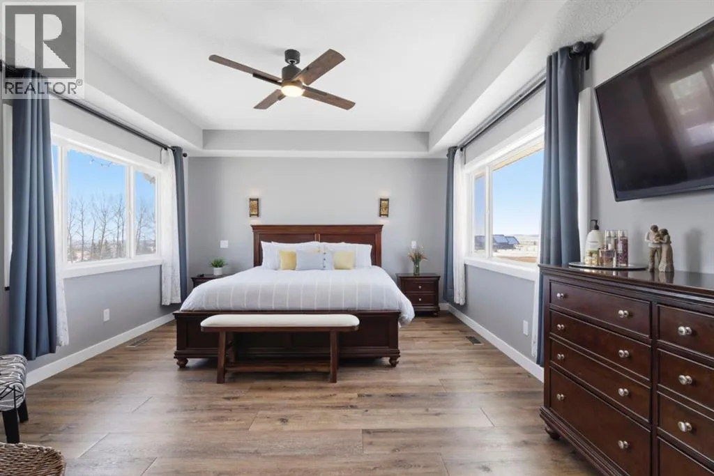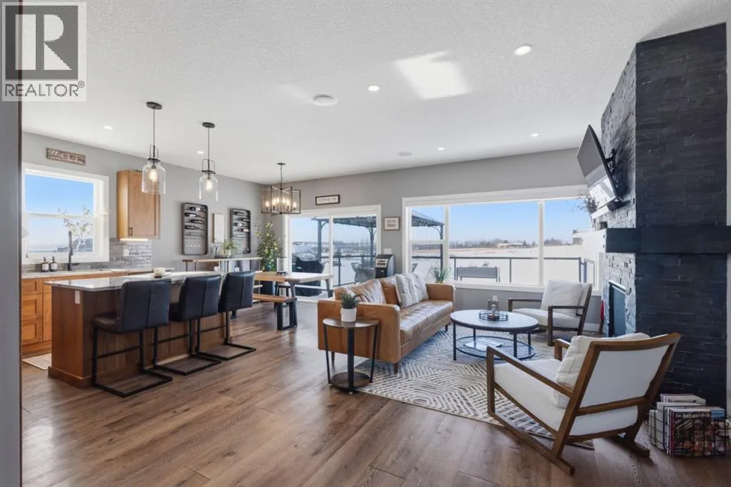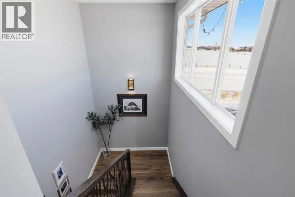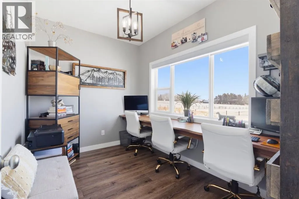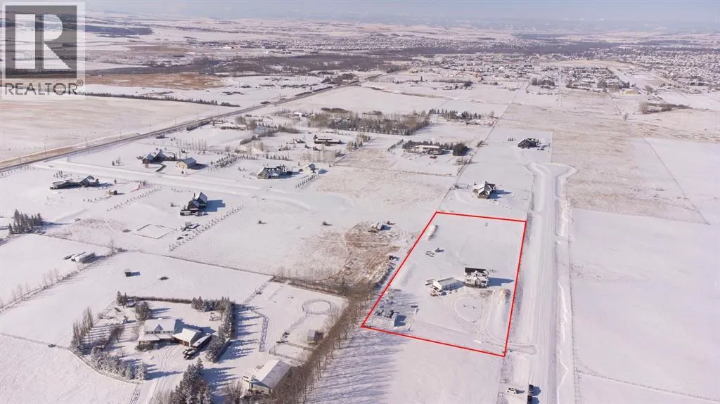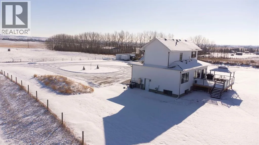 The perfect location for a city commuter or Okotoks resident! This home is situated just east of Okotoks and Green Haven and is also just a quick three minute drive to Highway 2 north which gets you to Calgary in less than 15 minutes! Drive into this 3 acre parcel and the first thing you notice to the west is the unobstructed skyline full of Rocky Mountains! The exposed aggregate front patio and staircase lead you up and into the home where at that point it is very evident that this house has been a meticulously maintained and upgraded since the year of purchase. With an office to your immediate right and the main floor, laundry and mudroom to your immediate left. Once a little deeper into the main floor the open concept that leads back to the great oversized windows again shows off those fabulous Mountain Viewâs. The Kitchen was completely redesigned and rebuilt with beautiful Walnut with custom built-ins for appliances and system for your in ceiling audio. The dining room leads out to a brand new, oversized, spectacular deck with glass railing, and pergola to shade you from the all day sun and sunsets you receive in the backyard. The main floor also hosts one bedroom and a fully remodeled, four piece bathroom. Now upstairs is what makes this home so unique in my mind! THE MASTER RETREAT! The whole second floor is all yours with a massive bedroom, stunning, remodeled, five piece en suite and a massive walk-in closet. One of the biggest highlights has to be the unrivalled Westerly view. The basement is also fully developed with another two bedrooms, four piece bathroom and the great size rec room. Head back outside to the garage or currently used shop that has a current sport court that could easily be converted into another fully enclosed garage. The garage is outfitted with 220 power, heat and water. You will certainly see the attention to detail and the extreme pride of ownership while viewing this property. Hope you enjoy. (id:27476)