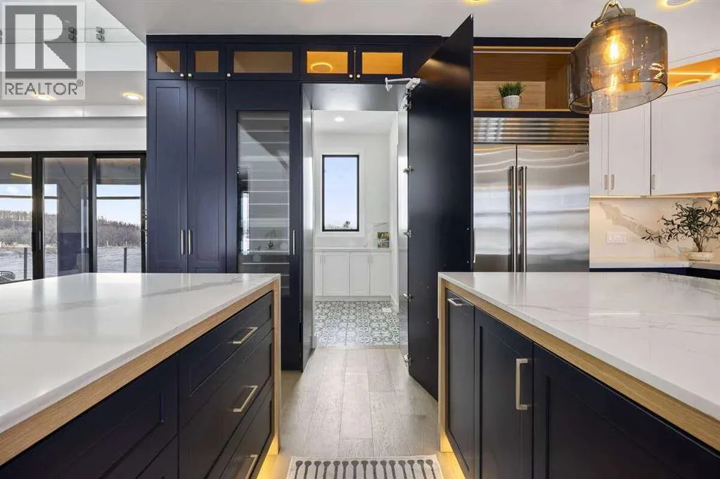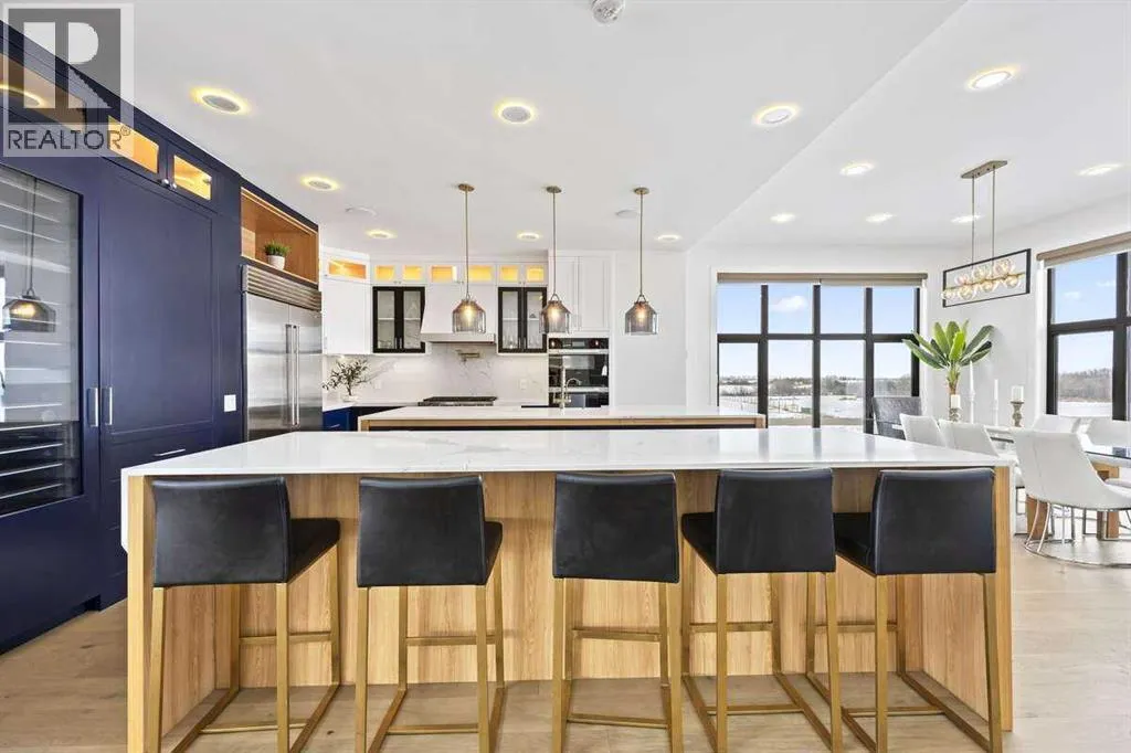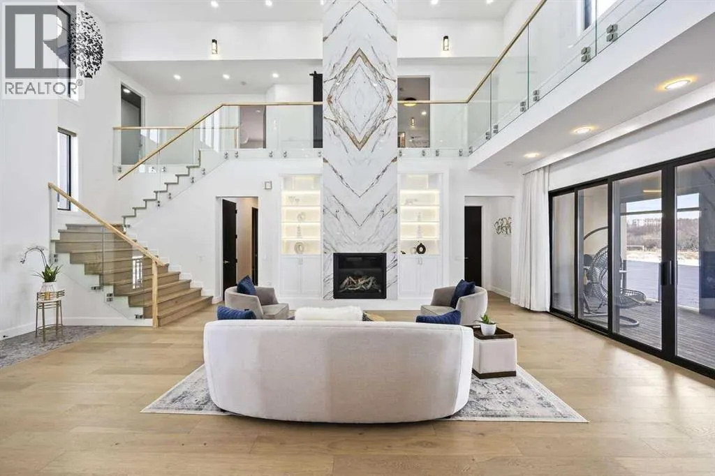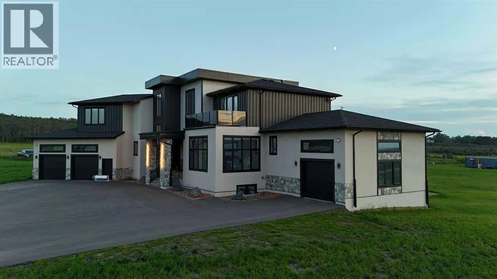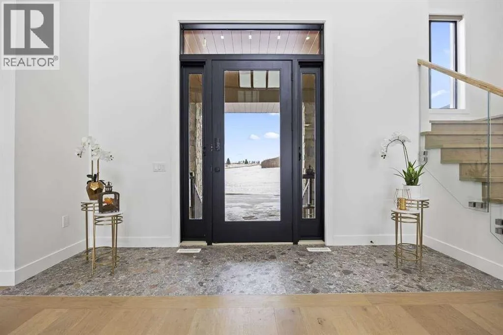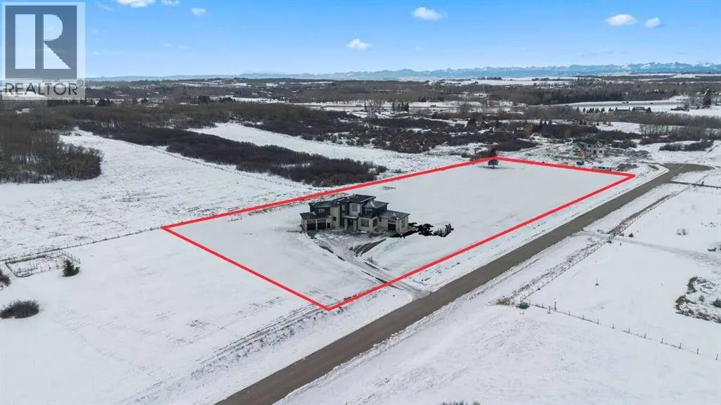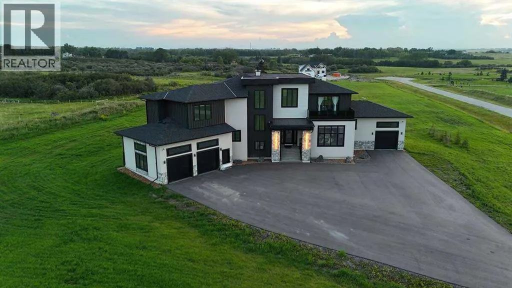 *** For more information, please click the "More Information" button. ***Welcome to an extraordinary blend of modern elegance and countryside charm. Built in 2023, this stunning 6-bedroom, 5.5-bathroom estate offers over 7,200 sq. ft. of meticulously designed living space, nestled on a picturesque 5-acre property. More than just a home, itâs a peaceful retreat surrounded by nature, yet conveniently close to Calgaryâs South Campus hospital, top-rated schools, and urban amenities, offering the perfect balance of serene country living and city convenience. As you enter through natural flat stone pillars, a grand entryway welcomes you into warm and expansive living areas set against the breathtaking backdrop of the Rocky Mountains. The living room features a towering stone fireplace that serves as a centerpiece, while a glass-surround walkway bathes the space in natural light. Telescoping glass doors seamlessly connect indoor and outdoor spaces, making it ideal for entertaining or relaxing with loved ones. The chefâs kitchen is the heart of the home, featuring double islands perfect for hosting, high-end appliances including a combination steam oven, and two butlerâs pantries. These pantries provide ample storage and include access to a hidden workspace and a single garage, adding both functionality and convenience to the kitchenâs design. The main-floor primary suite is a true sanctuary, boasting floor-to-ceiling west-facing windows that frame stunning views. The spa-inspired en-suite includes luxurious stone-accented walls, an oversized soaker tub, and a walk-in shower, while the custom-designed closet caters to a modern lifestyle with ample space and organization. Upstairs, three spacious bedrooms, each with walk-in closets and private bathrooms, provide comfort and privacy for family or guests. A striking glass walkway connects a custom home office and a cozy family room, creating a unique and inviting upper-level retreat. The lower level is designed for both relax ation and activity. Highlights include a home gym with a pro-height basketball hoop, a luxurious steam shower for post-workout relaxation, an additional bedroom, and a versatile flex room that opens directly to the backyard. The outdoor space offers endless possibilities. The expansive backyard is a blank canvas awaiting your visionâwhether itâs a vibrant garden, a playground, or even space for animals. The propertyâs 5-acre expanse ensures privacy and room to customize. Behind the beauty of this estate lies impeccable functionality. Two mechanical rooms house high-end systems, including advanced A/C, on-demand hot water, and multiple furnaces and boilers, ensuring comfort year-round. Premium finishes, custom flooring, and thoughtful details elevate the homeâs design. This property is more than a residenceâitâs a lifestyle. Whether hosting grand gatherings, seeking a tranquil retreat, or making cherished family memories, this estate delivers it all. Donât miss your opportunity to own this incredible count (id:27476)