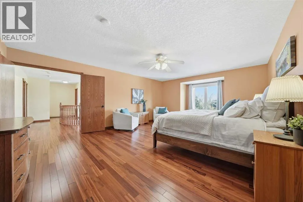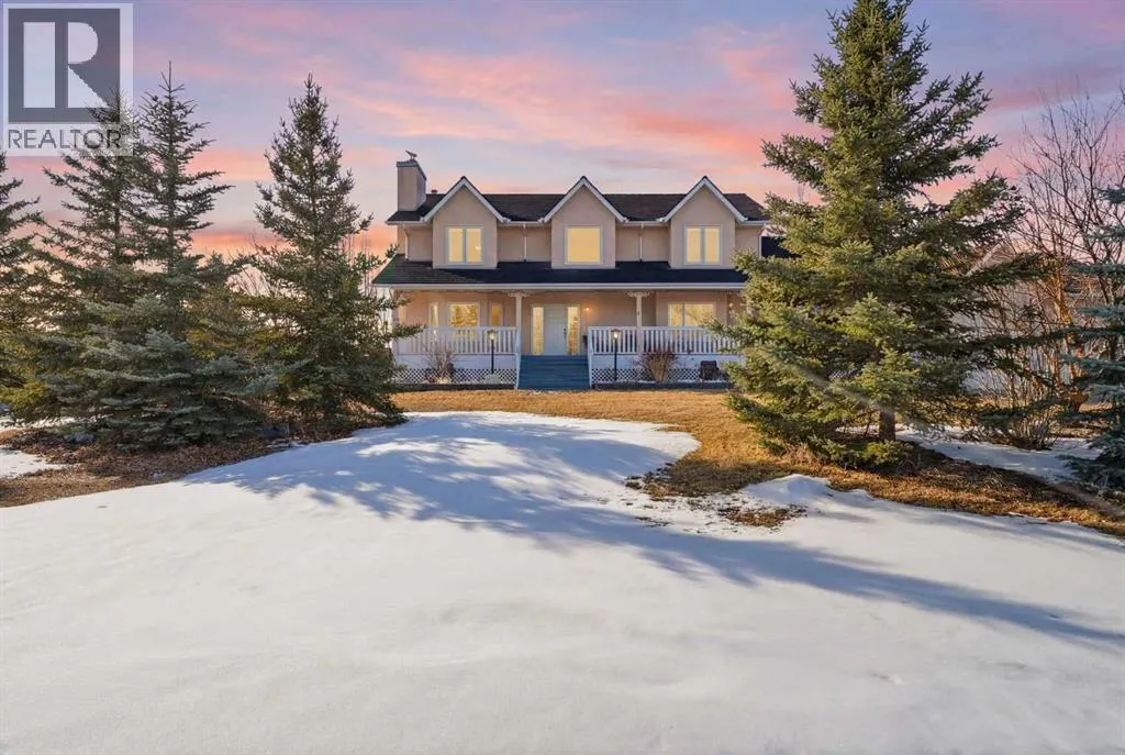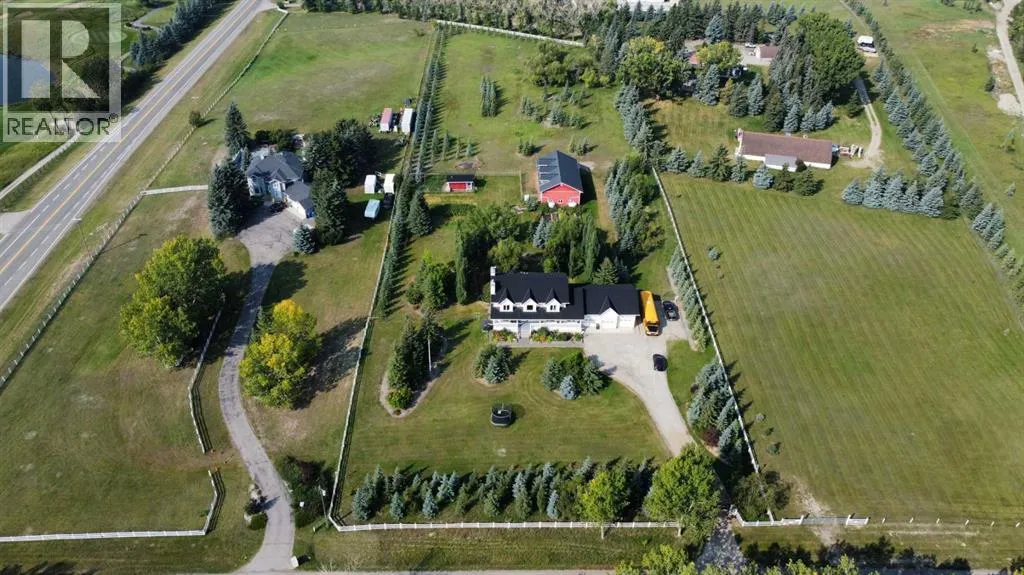 Welcome to your private Foothills retreat, where peaceful country living meets stunning Alberta scenery. Set on a beautifully maintained acreage mere minutes from Calgary, this 4-acre property offers the perfect opportunity to enjoy the Foothills lifestyleâwide open spaces, fresh country air, nearby river access, and breathtaking views in every direction. This home has undergone significant updates, including rubber roof with 50-year warranty (2009), an updated kitchen and flooring, replacement of poly-B plumbing and new windows (2024), and recently replaced furnaces and central AC units. With expansive views and big Alberta skies, this property truly captures the essence of rural living in Foothills County. The home offers spacious and comfortable living (almost 5000 sq ft of living space), with large windows designed to bring the outdoors in and showcase the surrounding landscape. Whether youâre enjoying quiet mornings with a coffee or hosting friends and family, the property provides the perfect setting for both relaxation and entertaining, with ample mature trees for true privacy. The home offers exceptional space and functionality with six bedrooms thoughtfully laid out for family living. The spacious primary suite provides a relaxing retreat, complete with a 5-piece ensuite and a large, fully organized walk-in closet. Designed with both comfort and versatility in mind, the home also features a generous bonus roomâperfect for a family lounge, playroom, or home officeâalong with a large recreation room in the basement ideal for entertaining, movie nights, or additional living space. Everyday convenience is enhanced by a practical mudroom located just off the garage, providing the perfect drop zone for coats, boots, and gear after a day enjoying the outdoors. In addition to the home, the property features multiple outbuildings, including a garden shed, an oversized triple attached garage, and a large 32â x 56â shop with loft, barn, and workshop, providing except ional space for vehicles, equipment, hobbies, or small business needs. There is also a fully equipped chicken coop, an extensive rain capture system, and irrigated raised beds. The fully fenced acreage offers room for RV parking, outdoor activities, gardening, or simply enjoying the privacy and freedom that acreage living provides. A fantastic retreat for any horticulturists, the multiple gardens have been meticulously maintained. Located in the heart of Foothills County, youâll enjoy the charm of country living while remaining a very short drive to Calgaryâs amenities, and services, with schools and sporting facilities in the neighbourhood. The home is situated directly across from the prestigious Carnmoney golf and country club and offers the perfect location for any golf enthusiasts, with two additional courses within a 7-minute drive. This is a rare opportunity to experience the best of spacious living, privacy, and unforgettable scenery, all in one remarkable property. (id:27476)