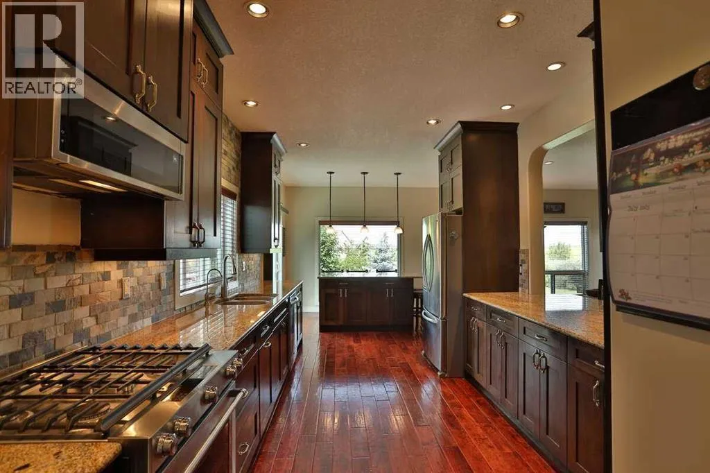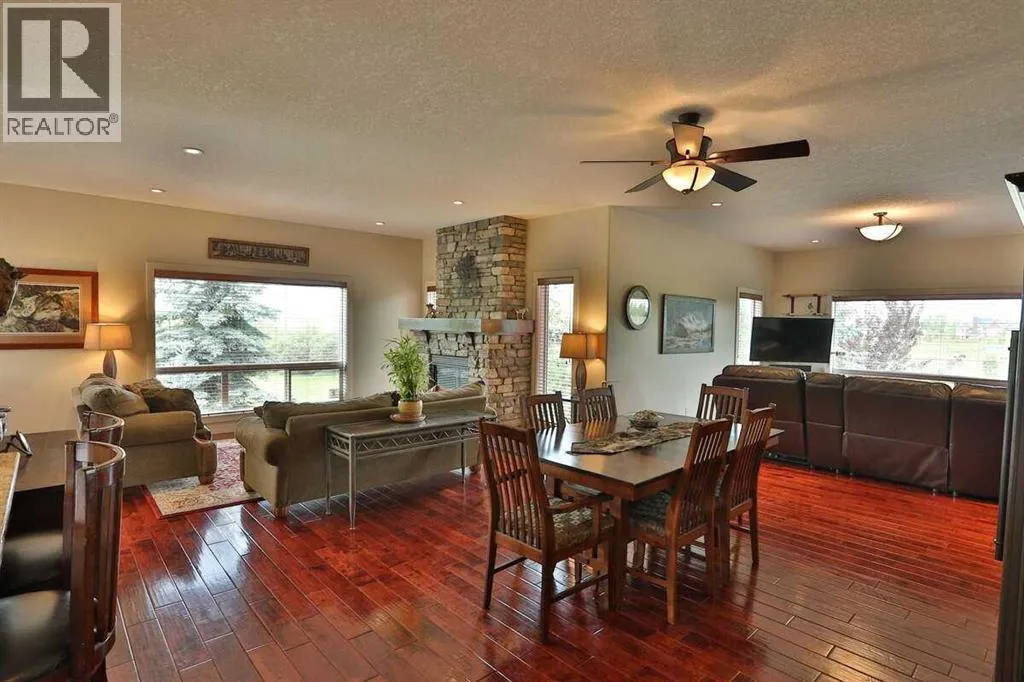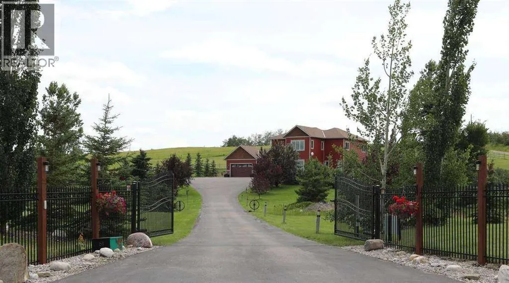 *** For more information, please click the "More Information" button. ***You have discovered your dream lifestyle in this amazing gated estate nestled on 5 acres of picturesque land with breathtaking views in every direction. Perfect for active families, this property offers a paved multi-sport courtyard, with a landscape for winter and summer adventures exploring the expansive grounds. Boasting over 4,000 sq ft of living space across three levels, this home features 4 bedrooms, 4 bathrooms, and an array of amenities including an oversized shed/workshop and an in-floor heated 3-car garage with a dog-wash station and 240v RV connection. Located just 2 km from two K-9 schools and an indoor ice rink, with a short commute to South Calgary, convenience is at your doorstep. Strategically situated 3 minutes from a K to 9 schools, 10 minutes from Calgary South Health Campus (major hospital) and VIP movie theatres and stores, 15 minutes from Okotoks, 30 minutes from the downtown Calgary tower and city centre, 40 minutes from the Calgary airport, and 90 minutes from Banff national park. Inside, the home offers cozy winters and cool summers with dual air-conditioning. The chef's kitchen includes granite countertops, stainless-steel Kitchenaid appliances, and a large island perfect for entertaining. Upstairs, the primary bedroom features a luxurious 6-piece ensuite and walk-in closet, alongside three additional bedrooms and another full bath. The lower level boasts in-floor heating throughout, high ceilings, a gym, open theatre area, hobby room, pool/games area, studies and ample storage. Outside, relax on the south-facing deck with an outdoor kitchen, fireplace, and a year-round enclosed SwimSpa pool and hot tub for endless fun and relaxation all surrounded by mature landscaping, fencing, an automated front gate, and horse-ready enclosures. This is your chance to create lasting memories in this extraordinary home. (id:27476)