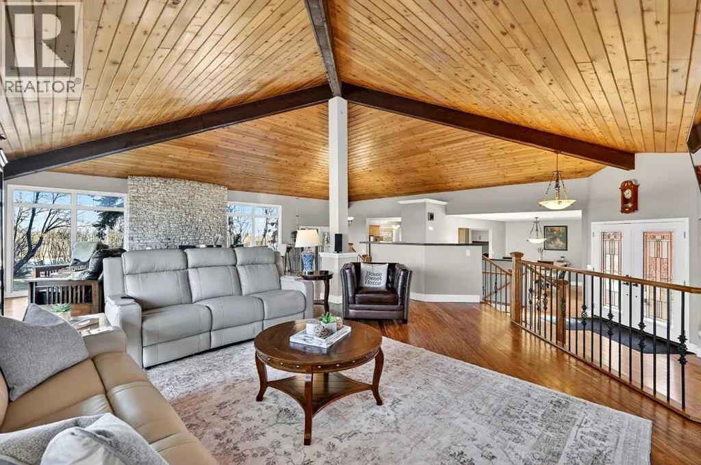Welcome to an exceptional lifestyle property in the sought-after Red Deer Lake area, just minutes from Spruce Meadows and a short 5 minute drive to the amenities of Calgary. This beautifully maintained ranch-style home offers the perfect balance of peaceful country living and everyday convenience, making it ideal for families, professionals, and anyone seeking space, privacy, and long-term value.Designed for both comfort and functionality, the main level features four spacious bedrooms, including a private primary retreat with a spa-inspired ensuite complete with rain shower and generous walk-in closet. Thoughtful finishes such as hardwood flooring, vaulted ceilings, and quality fixtures create a warm yet refined atmosphere throughout the main living spaces. The bright, open layout connects the upgraded kitchen, dining area, and living room, making it equally suited for entertaining or relaxed daily living.The freshly updated lower level expands your lifestyle possibilities with luxury vinyl plank flooring, a full bathroom, wet bar, games area, hobby room, and extensive storage including a cold room and wine cellar, ideal for entertaining, recreation, or multigenerational flexibility.Outdoors, the property truly shines as a private retreat. Enjoy gorgeous mountain views, a semi-inground gas-heated pool, multiple patios, a gazebo with fire pit, low-maintenance landscaping, and plenty of room for play, gatherings, or quiet evenings under the sky with the Rocky Mountains as your backdrop! Families will appreciate the dedicated play structure and even a covered school bus shelter at the driveway for added convenience.Car enthusiasts, hobbyists, or business owners will recognize the exceptional value of the heated oversized triple garage with epoxy floors and workspace, plus a separate single garage perfect for equipment, storage, or projects. A renovated mudroom with lockers and direct garage access keeps daily life organized and efficient.Set in a tranquil setting only minutes to groceries, medical services, and daily essentials, this property delivers the rare combination of rural serenity, functional space, and city accessibility. With extensive upgrades already completed and pride of ownership evident throughout, this is more than a home⦠itâs a lifestyle opportunity in one of the regionâs most desirable country residential communities. (id:27476)