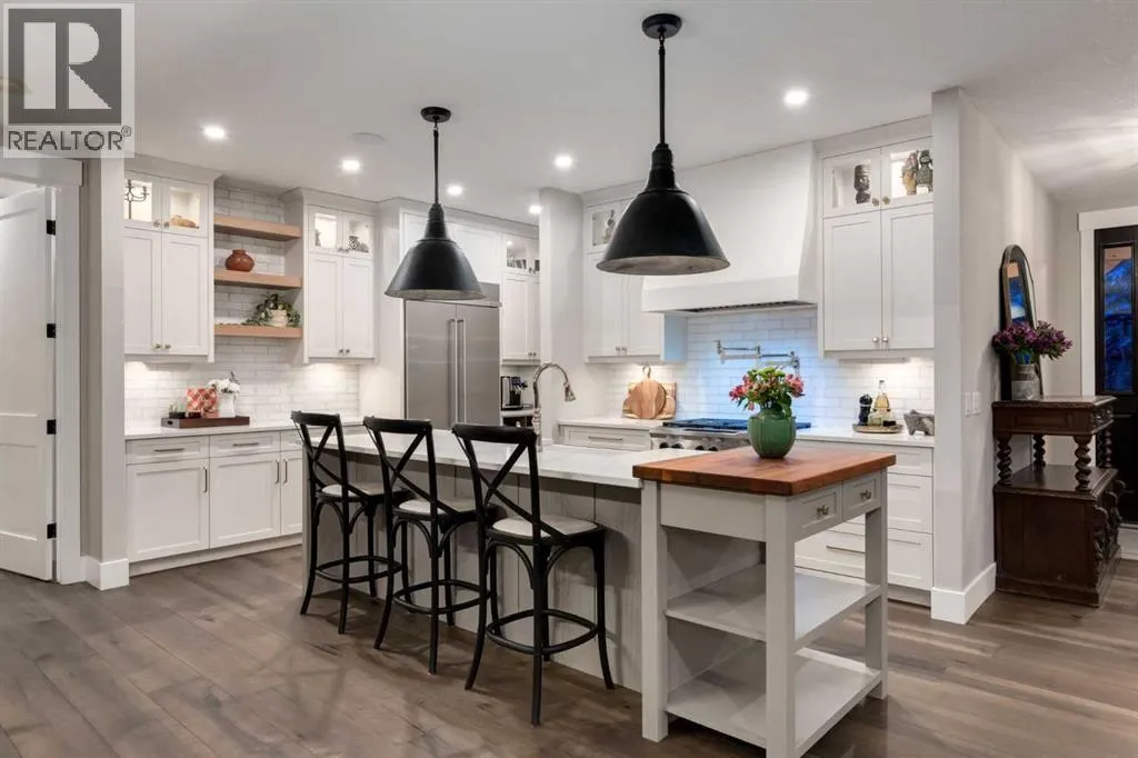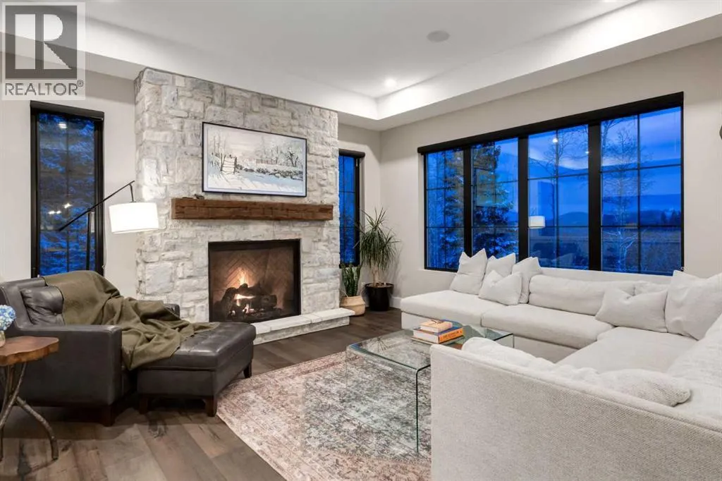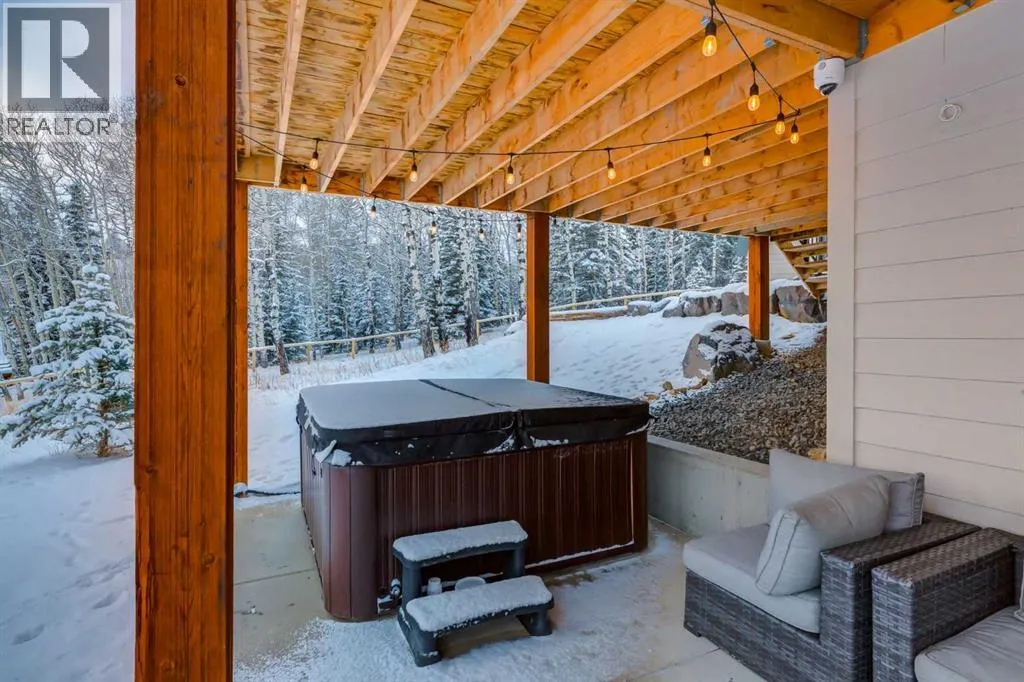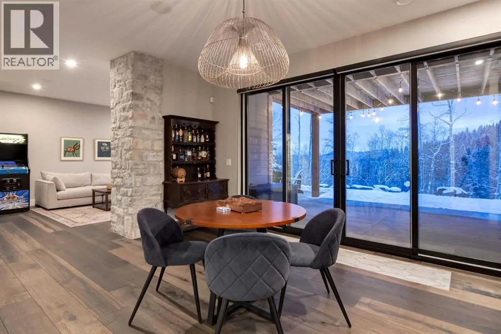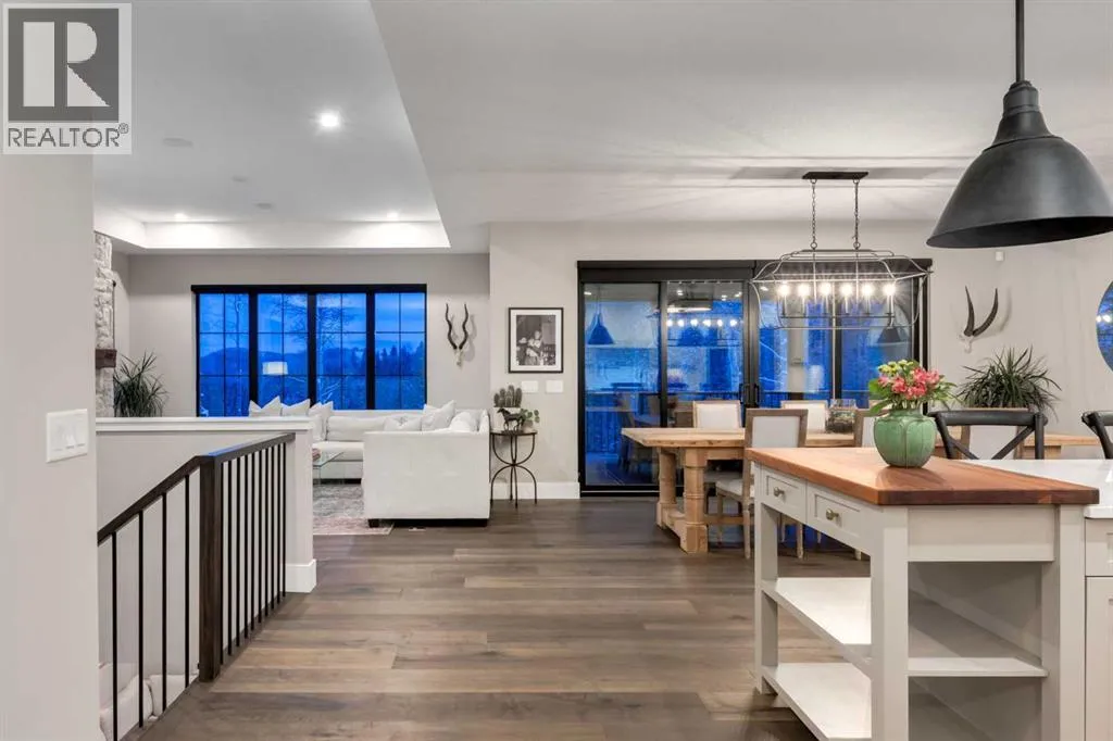 This SPECTACULAR LIFESTYLE Property is the PERFECT ESTATE for the AVID OUTDOORSMAN located in the gated community of Square Butte Ranches on 1.98 ACRES w/BREATHTAKING â UNINTERRUPTED â MOUNTAIN VIEWS + a LUSH, TREED YARD!! This AWARD-WINNING 1.5 Story home blends MODERN FARMHOUSE + OLD-WORLD CHARM, offering 3,318 Sq. Ft. of DEVELOPED LIVING SPACE, 4 Bedrooms, 3.5 Bathrooms, WALK-OUT Basement, Home Gym, Guest Quarters + ATTACHED TRIPLE GARAGE + 8â doors (TRUCK + BOAT). It's STUNNING CURB APPEAL has Hardie Board siding, Stone accents + NATURAL WOOD pillars. An incredible backyard feat. a WRAP-AROUND Deck w/MOUNTAIN VIEWS, STONE-CLAD WOOD-BURNING Fireplace, OUTDOOR DINING, DUAL GAS BBQ LINE + a HOT TUB!! Inside this âIMMACULATEâ home, youâre welcomed by 9â knockdown ceilings, rich wide-plank hardwood flooring + a neutral colour palette throughout, thoughtfully incorporating both NEW + VINTAGE elements. Off the foyer is a private office feat. CUSTOM BUILT-INS, along + a 2 PC bath for guests. The striking BLACK-FRAMED Windows in living room capture the MOUNTAIN VIEWS, as well as a STUNNING STONE-CLAD gas fireplace w/a wood mantle is a focal point + elevated TRAY CEILING for added depth + architectural interest. The SPACIOUS dining area flows seamlessly into the INCREDIBLE CHEFâS KITCHEN featuring a complete two-tone custom floor-to-ceiling cabinetry, under-cabinet lighting, a LARGE island finished in QUARTZ + a BUTCHER block extension + a farmhouse sink. Premium SS APPLIANCES include a 36â GAS RANGE w/a POT FILLER, a Venetian plaster range hood + a DOUBLE fridge. Large sliding doors off the dining area create a seamless INDOOR-OUTDOOR LIVING experience. Archway leads to the mudroom + a built-in microwave in the BUTLER'S PANTRY, while the Laundry Room connects to the garage. The PRIMARY BEDROOM is a SERENE RETREAT has a tray ceiling + large windows that fill the space w/natural light. The SPA-INSPIRED ENSUITE showcases stone work, a freestanding tub, glass shower + dual vanity + a CUSTOM WALK-IN CLOSET w/built-in shelving + thoughtfully designed storage. A LOFT BEDROOM above the garage is ideal for GUEST QUARTERS w/a private exterior entrance + access through the garage. A partial kitchen has a farmhouse sink, microwave + mini fridge, built-in bench seating, a 3 PC bath + wardrobes. The WALK-OUT basement has a WINE ROOM w/stone wall, a SPACIOUS family room has MOUNTAIN VIEWS. A WET BAR in the flex room has cabinetry, a wine fridge + sink. A HOME GYM w/10MM glass doors, rubber flooring + mirrored wall. The 2nd + 3rd bedrooms are a GOOD SIZE, a 4 PC bath + utility/storage room. Square Butte Ranch: 480 ACRES w/Ponds + Pastures + PRIVATE Riding Trail + AMENITIES incl EQUESTRIAN FACILITY (heated barn, tack room, trailer storage, riding arena, round pen, paddocks), SALOON, gym, stocked pond, trout stream + community gardenâ ideal for FULL-TIME LIVING or FLEXIBLE, COME-AND-GO LIFESTYLE + direct access to Kananaskis Country: hiking, biking, trail riding + MORE!! (id:27476)