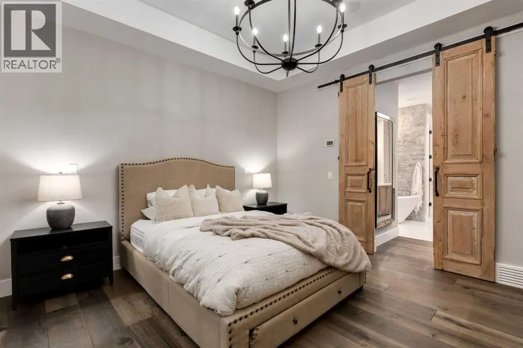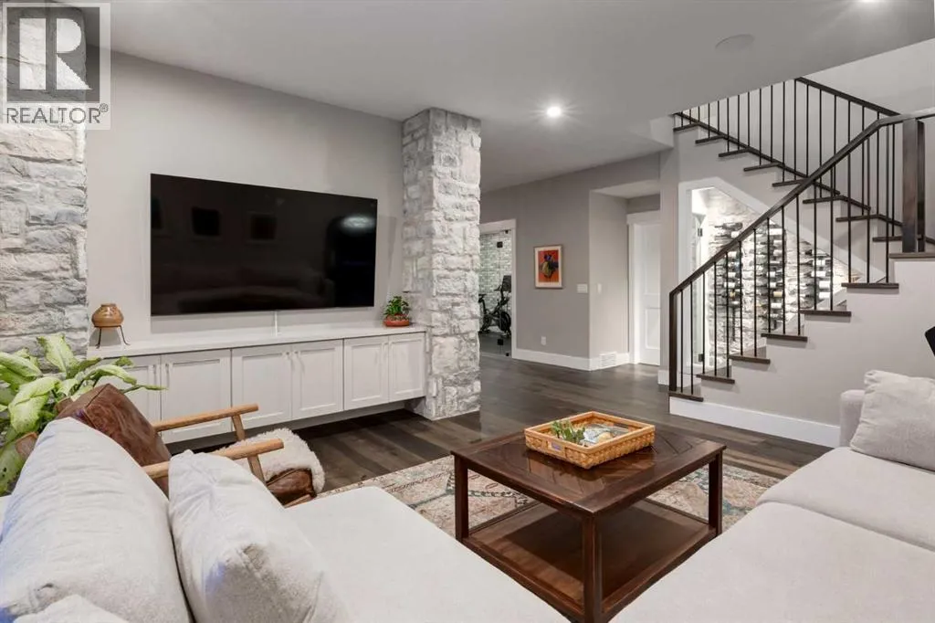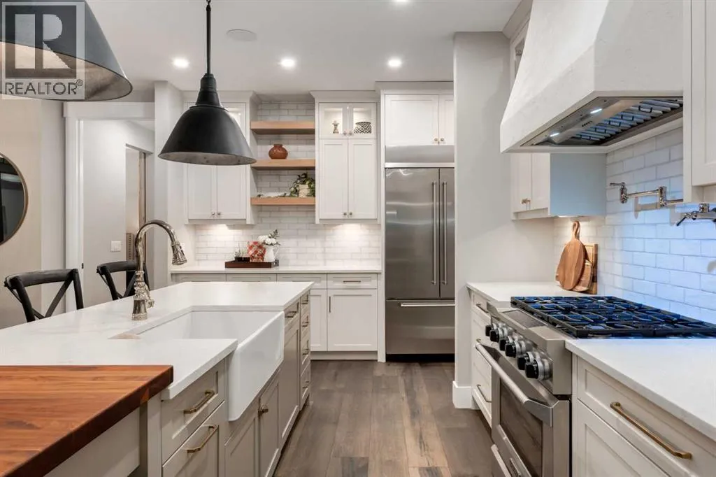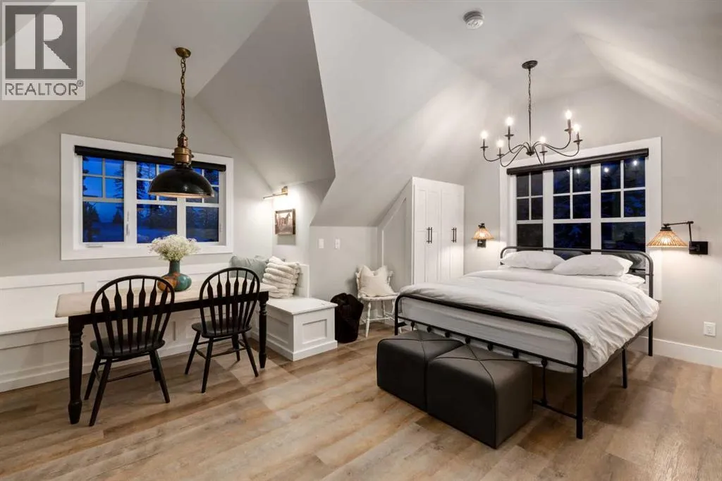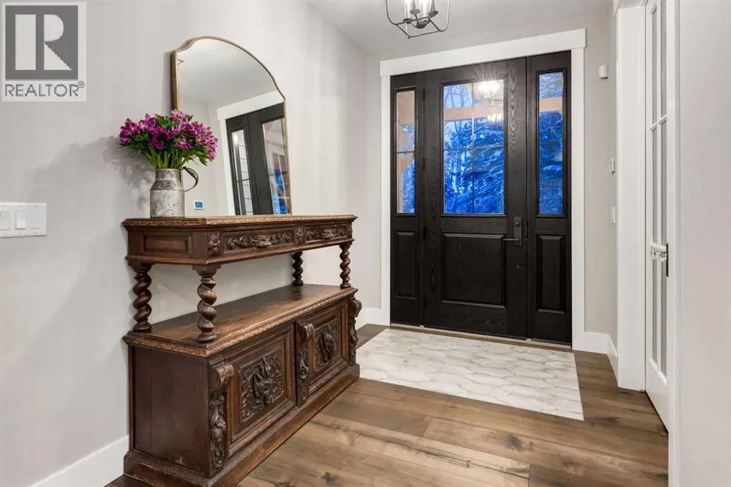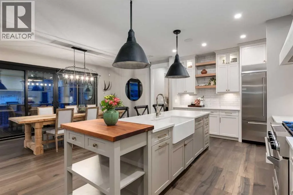 This SPECTACULAR LIFESTYLE Property is the PERFECT ESTATE for the AVID OUTDOORSMAN located in the gated community of Square Butte Ranches on 1.98 ACRES w/BREATHTAKING â UNINTERRUPTED â MOUNTAIN VIEWS + a LUSH, TREED YARD!! This AWARD-WINNING 1.5 Story home blends MODERN FARMHOUSE + OLD-WORLD CHARM, offering 3,318 Sq. Ft. of DEVELOPED LIVING SPACE, 4 Bedrooms, 3.5 Bathrooms, WALK-OUT Basement, Home Gym, Guest Quarters + ATTACHED TRIPLE GARAGE + 8â doors (TRUCK + BOAT). It's STUNNING CURB APPEAL has Hardie Board siding, Stone accents + NATURAL WOOD pillars. An incredible backyard feat. a WRAP-AROUND Deck w/MOUNTAIN VIEWS, STONE-CLAD WOOD-BURNING Fireplace, OUTDOOR DINING, DUAL GAS BBQ LINE + a HOT TUB!! Inside this âIMMACULATEâ home, youâre welcomed by 9â knockdown ceilings, rich wide-plank hardwood flooring + a neutral colour palette throughout, thoughtfully incorporating both NEW + VINTAGE elements. Off the foyer is a private office feat. CUSTOM BUILT-INS, along + a 2 PC bath for guests. The striking BLACK-FRAMED Windows in living room capture the MOUNTAIN VIEWS, as well as a STUNNING STONE-CLAD gas fireplace w/a wood mantle is a focal point + elevated TRAY CEILING for added depth + architectural interest. The SPACIOUS dining area flows seamlessly into the INCREDIBLE CHEFâS KITCHEN featuring a complete two-tone custom floor-to-ceiling cabinetry, under-cabinet lighting, a LARGE island finished in QUARTZ + a BUTCHER block extension + a farmhouse sink. Premium SS APPLIANCES include a 36â GAS RANGE w/a POT FILLER, a Venetian plaster range hood + a DOUBLE fridge. Large sliding doors off the dining area create a seamless INDOOR-OUTDOOR LIVING experience. Archway leads to the mudroom + a built-in microwave in the BUTLER'S PANTRY, while the Laundry Room connects to the garage. The PRIMARY BEDROOM is a SERENE RETREAT has a tray ceiling + large windows that fill the space w/natural light. The SPA-INSPIRED ENSUITE showcases stone work, a freestanding tub, glass shower + dual vanity + a CUSTOM WALK-IN CLOSET w/built-in shelving + thoughtfully designed storage. A LOFT BEDROOM above the garage is ideal for GUEST QUARTERS w/a private exterior entrance + access through the garage. A partial kitchen has a farmhouse sink, microwave + mini fridge, built-in bench seating, a 3 PC bath + wardrobes. The WALK-OUT basement has a WINE ROOM w/stone wall, a SPACIOUS family room has MOUNTAIN VIEWS. A WET BAR in the flex room has cabinetry, a wine fridge + sink. A HOME GYM w/10MM glass doors, rubber flooring + mirrored wall. The 2nd + 3rd bedrooms are a GOOD SIZE, a 4 PC bath + utility/storage room. Square Butte Ranch: 480 ACRES w/Ponds + Pastures + PRIVATE Riding Trail + AMENITIES incl EQUESTRIAN FACILITY (heated barn, tack room, trailer storage, riding arena, round pen, paddocks), SALOON, gym, stocked pond, trout stream + community gardenâ ideal for FULL-TIME LIVING or FLEXIBLE, COME-AND-GO LIFESTYLE + direct access to Kananaskis Country: hiking, biking, trail riding + MORE!! (id:27476)
