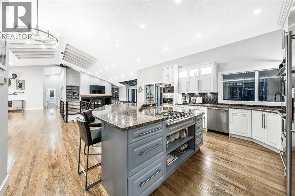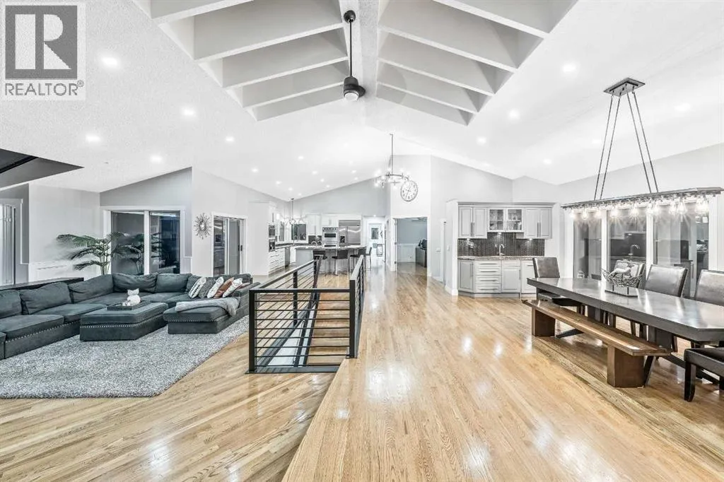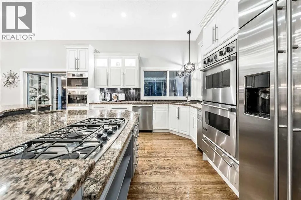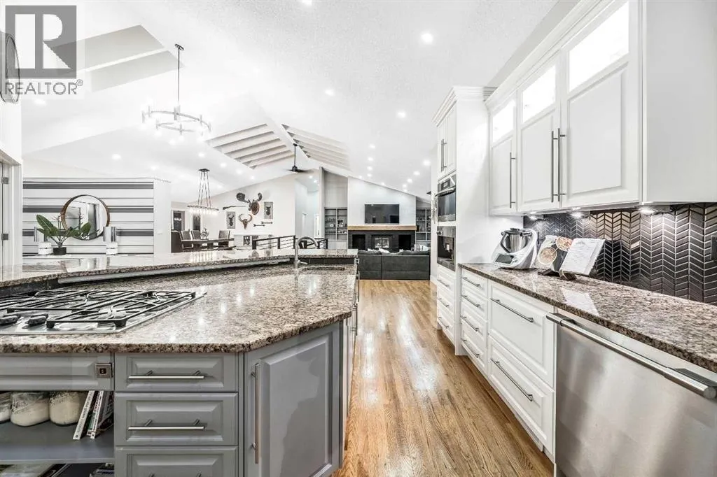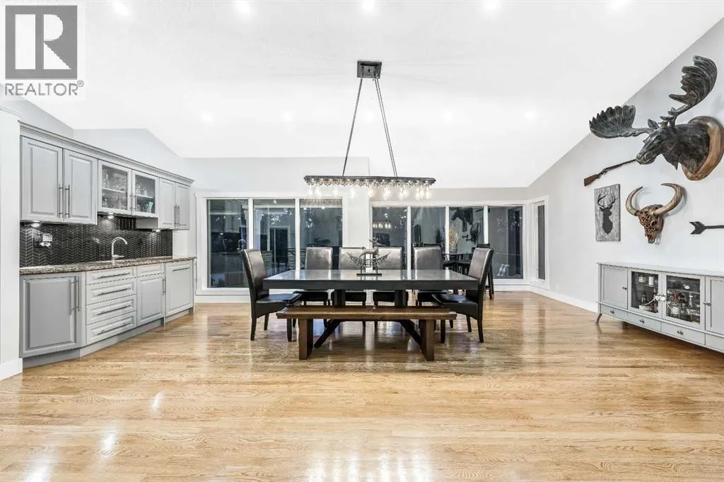 Discover unmatched privacy and refined country living on this exceptional 5.67-acre property in Millarville. Surrounded by mature birch and evergreens, the fully treed setting features a tranquil pond, expansive outdoor living spaces, and a beautifully upgraded partial walk-out bungalowâoffering the perfect balance of nature and luxury.Thoughtfully built with above-average construction standards, the home showcases a 16â on-center floor system incorporating engineered trusses and joists, paired with 3/4â tongue-and-groove plywood subflooring that is glued and screwed for a solid, quiet feel. The building envelope is equally impressive, featuring a 6â EPS insulated wall system, R40 ceiling insulation, and double batt insulation in the main floor ceilingâdelivering enhanced energy efficiency, sound control, and year-round comfort rarely found in homes of this era.With over 6,000 sq ft of developed living space, the home is designed for both everyday living and entertaining. The main level welcomes you with soaring 14â vaulted ceilings, five skylights, and an open-concept layout filled with natural light. Hardwood and luxury vinyl plank flooring flow throughout, while a spacious front office with French doors and custom built-ins offers the ideal work-from-home setup. A well-designed mudroom includes laundry, a dog wash, and additional firdge.The chef-inspired kitchen is truly the heart of the home, featuring granite countertops, a large island with prep sink, and an impressive appliance package including double ovens, warming drawer, steamer, espresso machine, and gas cooktop. The adjacent living and dining areas are framed by dramatic floor-to-ceiling windows, a wood-burning fireplace with custom built-ins, and a built-in hutch with a second dishwasher (dining area)âperfect for hosting.The north wing offers two generous bedrooms, a full bathroom, and a private primary retreat complete with deck access and a spa-inspired 5-piece ensuite featuring a soaker tub, oversized shower, and dual vanities.The fully developed lower level (over 2,800 sq ft) expands your living space with a large family room, games area with built-ins, additional bedrooms, a full bath, hobby room, flex spaces, and walk-out accessâideal for multi-generational living or entertaining.Step outside to over 1,200 sq ft of decking, where you can take in the peaceful surroundings or relax year-round in the stunning 17â swim spa with pergola. A firepit area and private yard provide endless opportunities for outdoor enjoyment.For tradespeople, hobbyists, or collectors, the 3,500 sq ft heated shop is a standout featureâoffering three bays, overhead doors, and independent gas heating systems.All of this, just 6 minutes to Diamond Valley, 20 minutes from Calgary and Okotoks, this property offers the perfect combination of seclusion, space, and convenience. (id:27476)