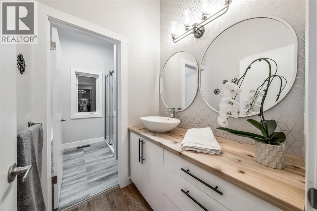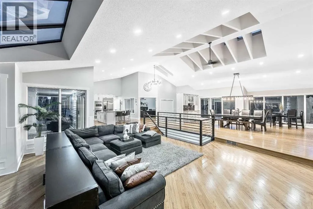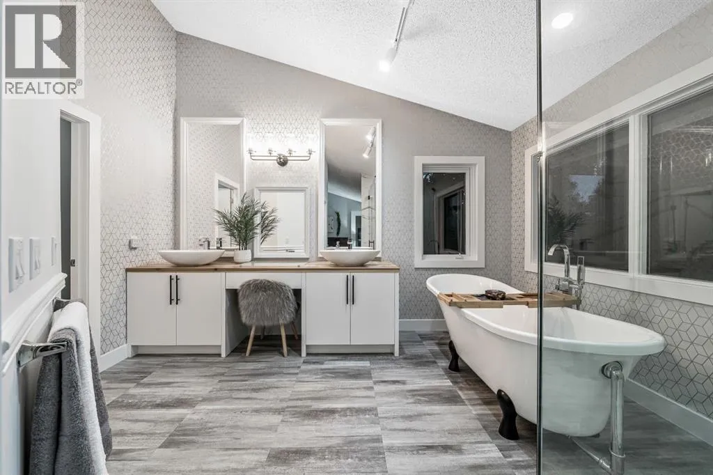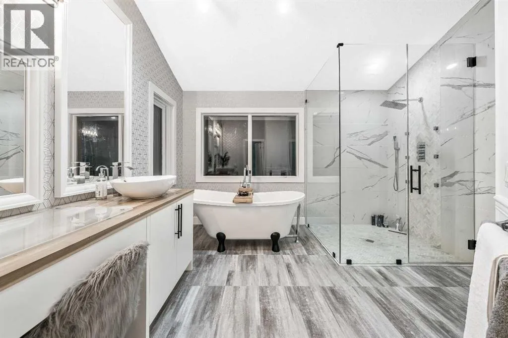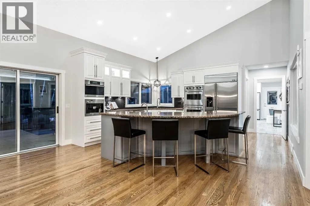 Discover unmatched privacy and refined country living on this exceptional 5.67-acre property in Millarville. Surrounded by mature birch and evergreens, the fully treed setting features a tranquil pond, expansive outdoor living spaces, and a beautifully upgraded partial walk-out bungalowâoffering the perfect balance of nature and luxury.Thoughtfully built with above-average construction standards, the home showcases a 16â on-center floor system incorporating engineered trusses and joists, paired with 3/4â tongue-and-groove plywood subflooring that is glued and screwed for a solid, quiet feel. The building envelope is equally impressive, featuring a 6â EPS insulated wall system, R40 ceiling insulation, and double batt insulation in the main floor ceilingâdelivering enhanced energy efficiency, sound control, and year-round comfort rarely found in homes of this era.With over 6,000 sq ft of developed living space, the home is designed for both everyday living and entertaining. The main level welcomes you with soaring 14â vaulted ceilings, five skylights, and an open-concept layout filled with natural light. Hardwood and luxury vinyl plank flooring flow throughout, while a spacious front office with French doors and custom built-ins offers the ideal work-from-home setup. A well-designed mudroom includes laundry, a dog wash, and additional firdge.The chef-inspired kitchen is truly the heart of the home, featuring granite countertops, a large island with prep sink, and an impressive appliance package including double ovens, warming drawer, steamer, espresso machine, and gas cooktop. The adjacent living and dining areas are framed by dramatic floor-to-ceiling windows, a wood-burning fireplace with custom built-ins, and a built-in hutch with a second dishwasher (dining area)âperfect for hosting.The north wing offers two generous bedrooms, a full bathroom, and a private primary retreat complete with deck access and a spa-inspired 5-piece ensuite featuring a soaker tub, oversized shower, and dual vanities.The fully developed lower level (over 2,800 sq ft) expands your living space with a large family room, games area with built-ins, additional bedrooms, a full bath, hobby room, flex spaces, and walk-out accessâideal for multi-generational living or entertaining.Step outside to over 1,200 sq ft of decking, where you can take in the peaceful surroundings or relax year-round in the stunning 17â swim spa with pergola. A firepit area and private yard provide endless opportunities for outdoor enjoyment.For tradespeople, hobbyists, or collectors, the 3,500 sq ft heated shop is a standout featureâoffering three bays, overhead doors, and independent gas heating systems.All of this, just 6 minutes to Diamond Valley, 20 minutes from Calgary and Okotoks, this property offers the perfect combination of seclusion, space, and convenience. (id:27476)