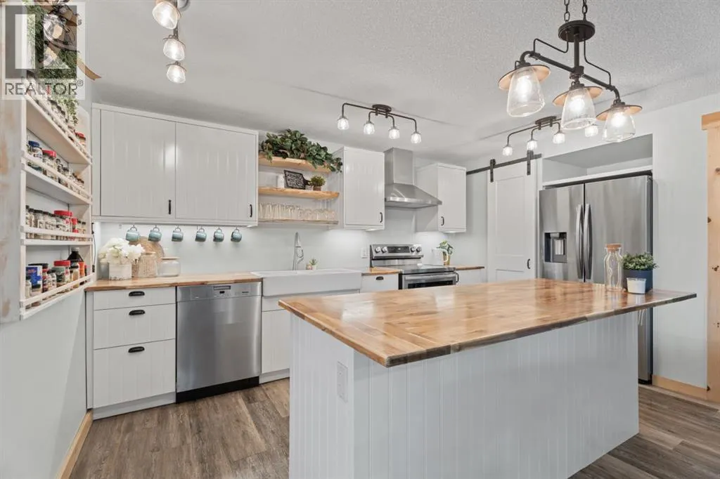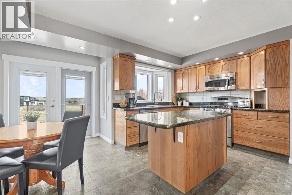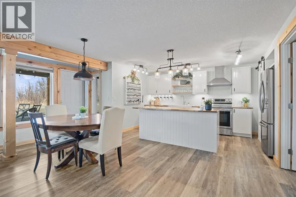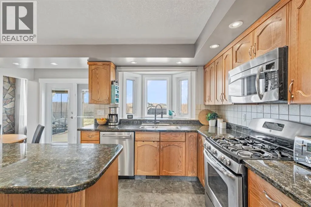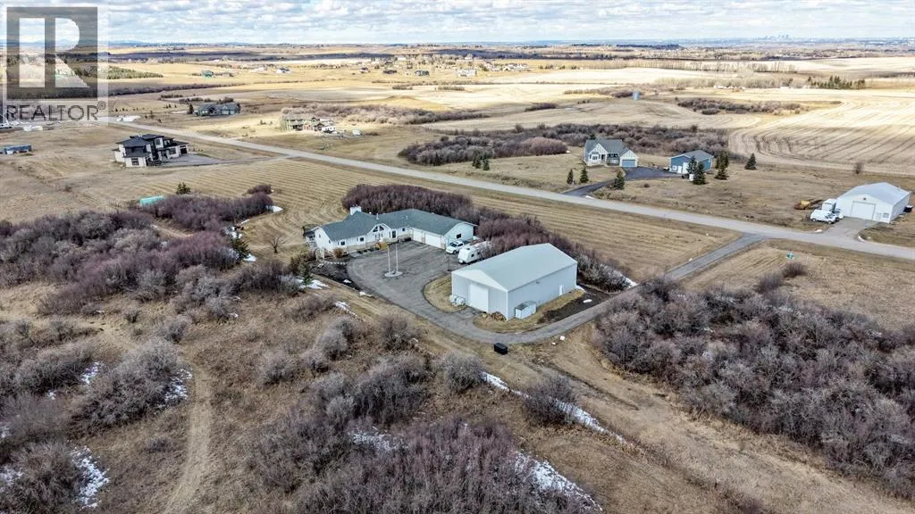 Set on 4.15 acres of private, tree filled land just minutes from Okotoks and Calgary, this fully finished walkout bungalow offers over 3,600 sq.ft. of developed living space and an exceptional blend of comfort, function, and lifestyle. The main floor welcomes you with a bright, vaulted entry and spacious living area anchored by a beautifully updated fireplace. Newer hardwood flows throughout, leading into a kitchen with lots of granite counter space, updated appliances including gas stove, and further through you find a dedicated dining space. Step outside to the expansive west-facing deck and beautiful gazebo, complete with gas hookup, perfect for taking in uninterrupted mountain views. The primary suite features deck access and the ensuite, while two additional bedrooms and a refreshed full bath complete the main level. The fully renovated basement adds incredible versatility, offering a large family room, a fully loaded bedroom wing with ensuite and oversized walk in closet. Also found is an office, additional full bath, nice separate entrance from garage into a large boot room/laundry room and a stylish country kitchen with a beautiful island and lovely pantry. Currently being used by the grandparents but a great space for a variety of uses. Walk out to the patio with a salt water hot tub, creating a seamless indoor-outdoor retreat. Extensive upgrades include newer furnace (2024),air conditioning (2024), hot water tank (5 years), electrical panel (2020), updated plumbing, upgraded cistern pump & controls (2023), entire basement (2020), and moreâproviding peace of mind and move-in-ready convenience. Car enthusiasts and hobbyists will appreciate the oversized triple attached heated garage which additionally includes a large storage room, a vented cold room and a large boot room with access to the back yard. Then there is the impressive 60âx40â heated shop featuring concrete floors, a pit, mezzanine storage, separate office, workshop area and an additional stor age room. The property is beautifully landscaped with mature trees and fruit trees/bushes (Saskatoon berry & choke cherry), fire pit area with outdoor prep area (no sink), a greenhouse and large fenced garden, plus a paved circular driveway (resealed 2022) and plenty of room to enjoy the outdoors. A rare opportunity to own a turnkey acreage with space, privacy, and updates throughout in an unbeatable location. Call your favourite realtor for a showing today!! (id:27476)