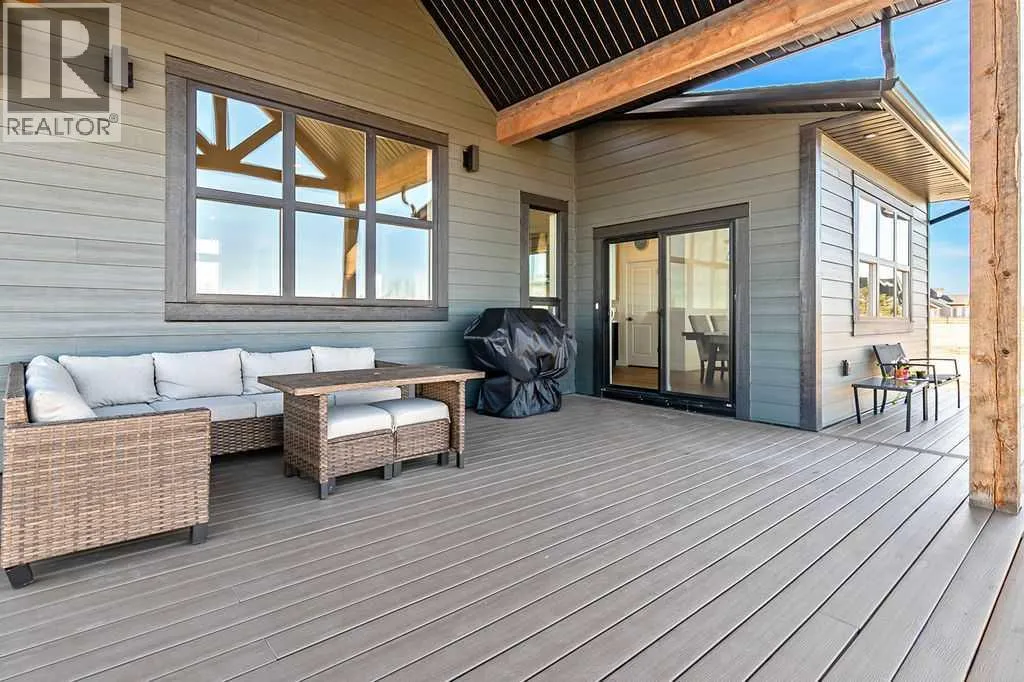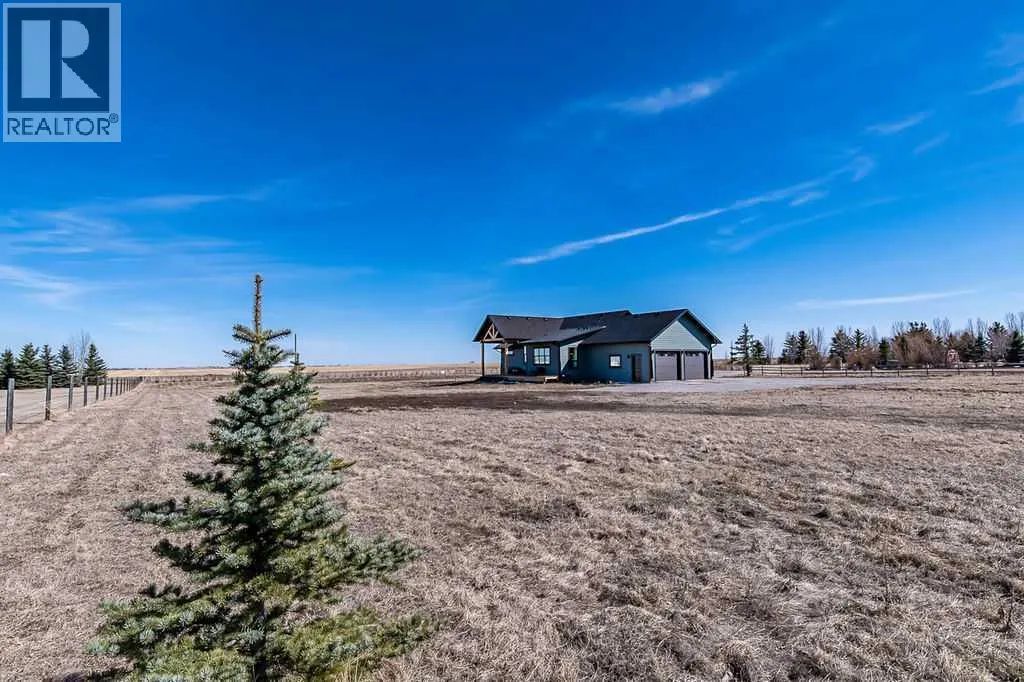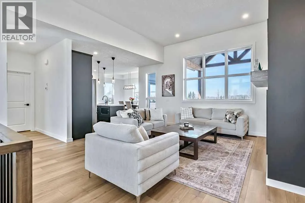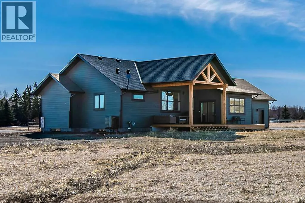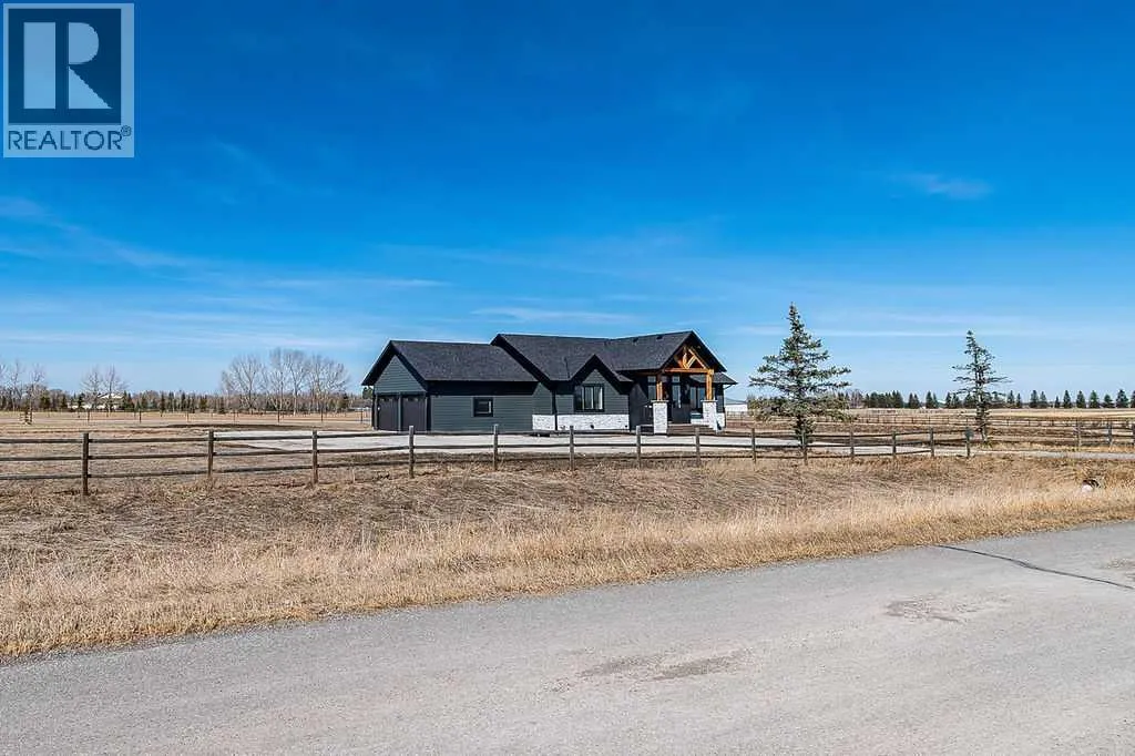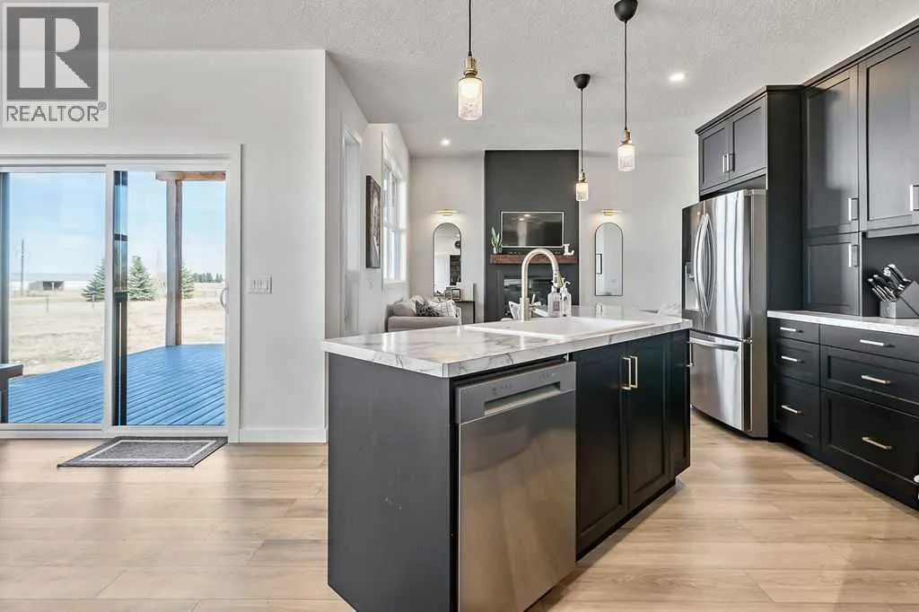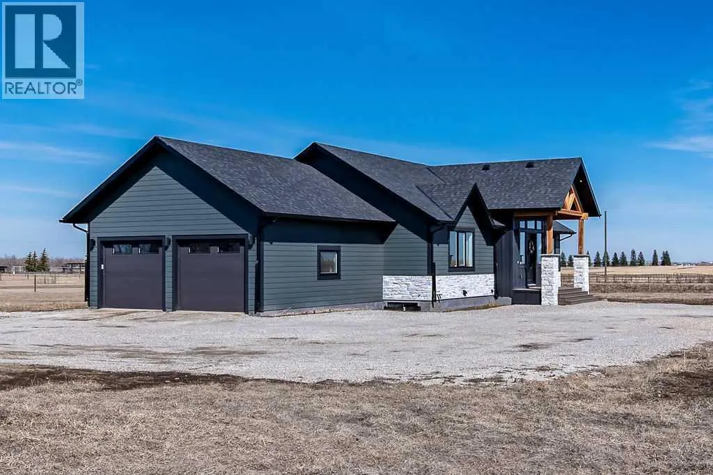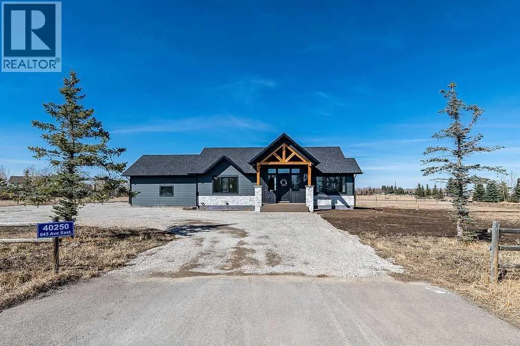 Welcome to your dream acreage in sought-after Foothills Countyâjust 5 minutes southwest of High Riverâwhere breathtaking mountain views meet the peace of country living with the convenience of town amenities nearby. Situated on 2.42 acres, this stunning custom-built (2025) bungalow offers over 5 bedrooms, 3 full bathrooms, and a beautifully designed, fully finished layout. From the moment you arrive, the striking Hardie board and stone exterior, large covered front porch, and clean contemporary lines set the tone. Step inside to a bright, welcoming foyer featuring a custom built-in bench and hooksâperfect for everyday functionality. The open-concept main floor showcases gorgeous vinyl plank flooring and a seamless flow between the living, kitchen, and dining spaces. The living room impresses with 11â ceilings, expansive north-facing windows, and a modern gas fireplaceâcreating a warm yet sophisticated gathering space. The chef-inspired kitchen is a showstopper, featuring sleek black cabinetry, white countertops and backsplash, and elegant gold accents, along with a large island (with sink and microwave), premium appliances, and a spacious walk-in pantry. The dining area comfortably accommodates large gatherings and is surrounded by west- and north-facing windows, with direct access to the expansive covered deckâprivate, sheltered, and ideal for year-round enjoyment. The primary retreat offers a peaceful escape with bright east-facing windows, a luxurious ensuite with double vanity, soaker tub, oversized walk-in shower, and an expansive walk-in closet conveniently connected. Thoughtful finishes of tile, wood, and stone elevate the space. The main level also includes a second bedroom (perfect as a home office or den), a full 4-piece bathroom, and a well-designed mudroom and laundry area with direct access to the oversized double garage. The fully finished lower level features three additional spacious bedrooms, a 4-piece bathroom, large windows for abundant natural li ght, and a versatile layout ideal for a recreation room, gym, home business, or media space. Ample storage completes the lower level. Outside, the property is ready for your visionâoffering endless potential for landscaping, outbuildings, and outdoor living. This home perfectly blends modern design, clean lines, and a neutral palette of white, black, wood, and natural textures, creating a space that feels both elevated and inviting. A rare opportunity to own a newly built home in an unbeatable locationâspace, style, and lifestyle all in one. (id:27476)