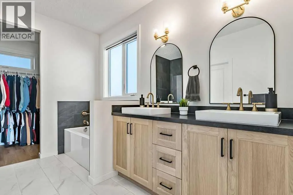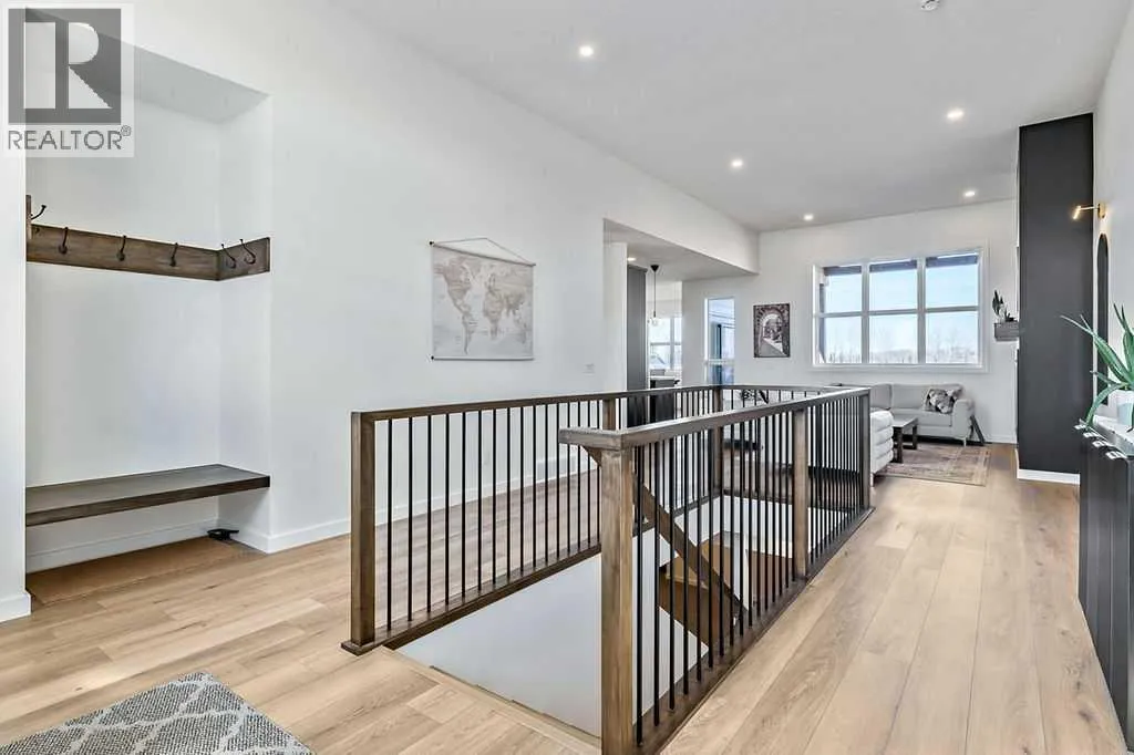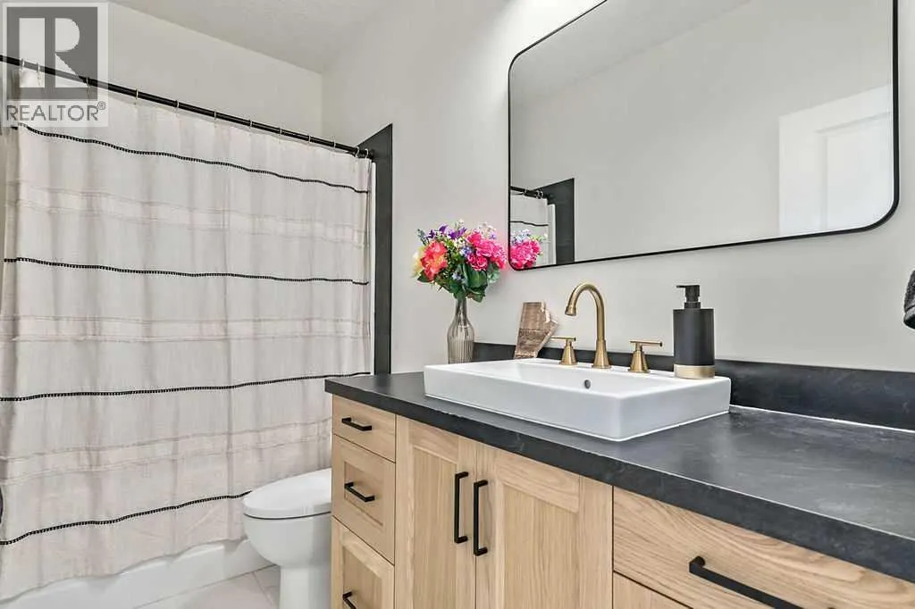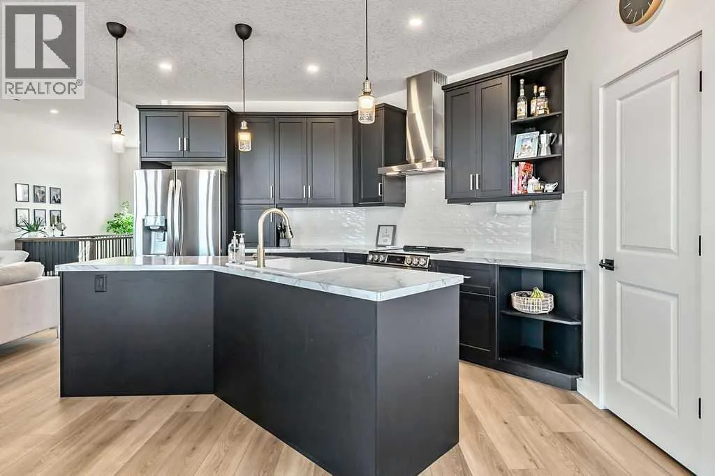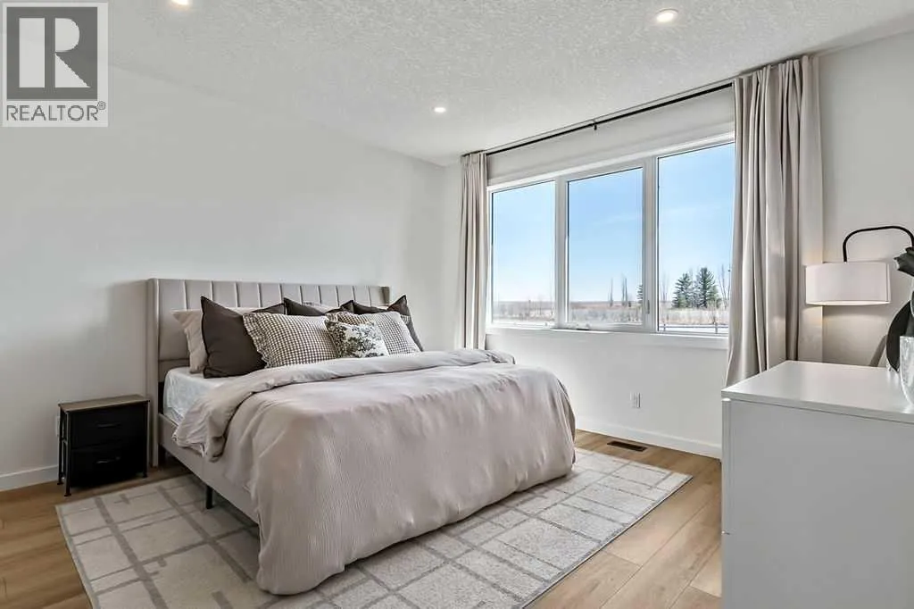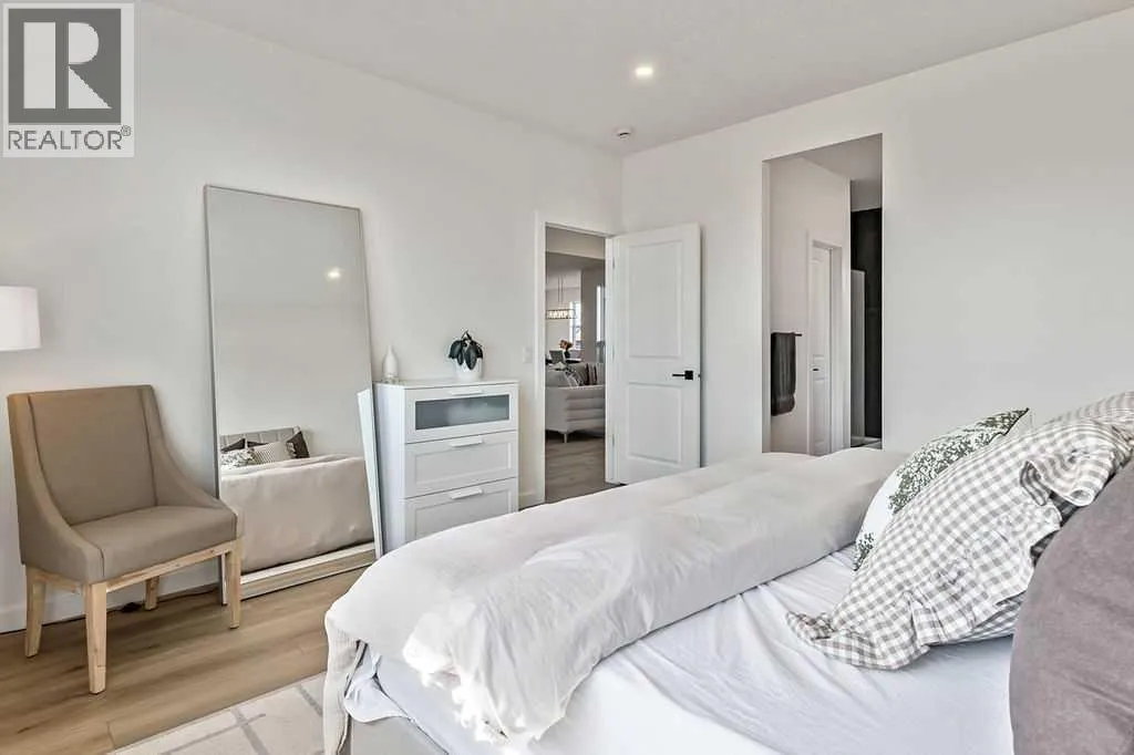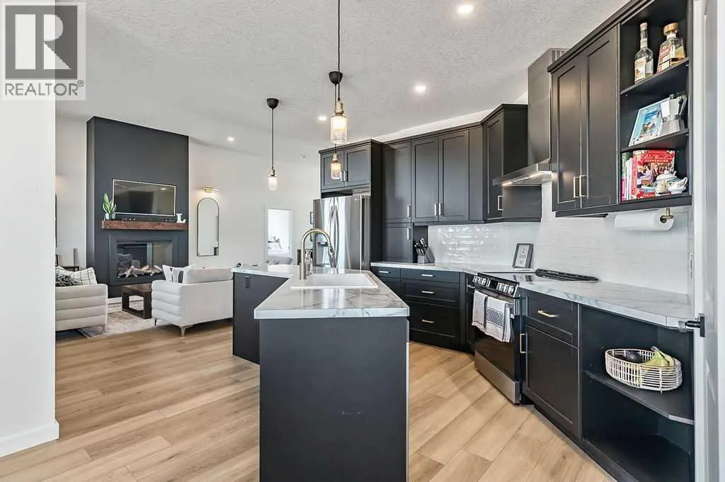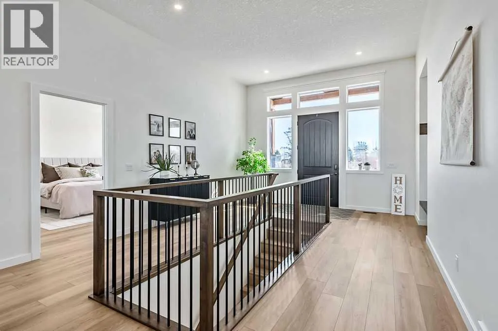 Welcome to your dream acreage in sought-after Foothills Countyâjust 5 minutes southwest of High Riverâwhere breathtaking mountain views meet the peace of country living with the convenience of town amenities nearby. Situated on 2.42 acres, this stunning custom-built (2025) bungalow offers over 5 bedrooms, 3 full bathrooms, and a beautifully designed, fully finished layout. From the moment you arrive, the striking Hardie board and stone exterior, large covered front porch, and clean contemporary lines set the tone. Step inside to a bright, welcoming foyer featuring a custom built-in bench and hooksâperfect for everyday functionality. The open-concept main floor showcases gorgeous vinyl plank flooring and a seamless flow between the living, kitchen, and dining spaces. The living room impresses with 11â ceilings, expansive north-facing windows, and a modern gas fireplaceâcreating a warm yet sophisticated gathering space. The chef-inspired kitchen is a showstopper, featuring sleek black cabinetry, white countertops and backsplash, and elegant gold accents, along with a large island (with sink and microwave), premium appliances, and a spacious walk-in pantry. The dining area comfortably accommodates large gatherings and is surrounded by west- and north-facing windows, with direct access to the expansive covered deckâprivate, sheltered, and ideal for year-round enjoyment. The primary retreat offers a peaceful escape with bright east-facing windows, a luxurious ensuite with double vanity, soaker tub, oversized walk-in shower, and an expansive walk-in closet conveniently connected. Thoughtful finishes of tile, wood, and stone elevate the space. The main level also includes a second bedroom (perfect as a home office or den), a full 4-piece bathroom, and a well-designed mudroom and laundry area with direct access to the oversized double garage. The fully finished lower level features three additional spacious bedrooms, a 4-piece bathroom, large windows for abundant natural li ght, and a versatile layout ideal for a recreation room, gym, home business, or media space. Ample storage completes the lower level. Outside, the property is ready for your visionâoffering endless potential for landscaping, outbuildings, and outdoor living. This home perfectly blends modern design, clean lines, and a neutral palette of white, black, wood, and natural textures, creating a space that feels both elevated and inviting. A rare opportunity to own a newly built home in an unbeatable locationâspace, style, and lifestyle all in one. (id:27476)
