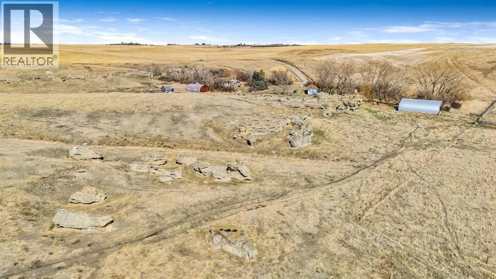 Have you been looking for privacy and seclusion? A large property that you can share with a family member ? Some great revenue ? Well this one is coming to the market with all the things ! 160 acres with 2 dwellings located west of Cayley. Older 1391 sq ft home needing some love and a 1440 sq foot 2003 Mobile home. Cross fenced, 90 acres in farm land to rent out or farm yourself. This land is really the neatest land I have seen in the area. Historic " Hoodoos" in different areas of the land. They are the most interesting formations. History states that these are 70 - 75 million years old and created originally by wind, rain and frost. Really cool !! The kids (and adults) will play for hours on them.. The land lay out is very special and has so many places to explore and enjoy. Lots of mature trees, privacy and is at the end of the road creating a beautiful private lifestyle. A good set of corrals at the back of the one Quonset. That particular Quonset needs a completion on the roof and possibly some other structural work. . The other Quonset is a full working shop and will need shingles or some metal on the roof. Cement floor, 220 power, has an older furnace but not insulated. The mobile is sweet and clean with plenty of square footage placed nicely amongst the trees. A really cute bright home ! The old house we are thinking is in the late 1960's is needing some love, but its a great home. A ton of potential to roll in and get things organized for your family or families !! Prepare to be " Wooed" for when you drive down the road and see this little Gem in the coulee you will fall in love. A long time family farm with stories of many memories on this beautiful land . Easy quick drive to Hwy # 2 for your commute if you really have to leave this gorgeous property !! Memories made here !!! Disclosure : The existing well will expire when the property is sold and a new well will be drilled on the property to buyers preference . Seller and buye r will agree on placement and how to move forward . There is some mold in the basement bedroom in the older house and it was caused by an appliance leak a while back . Door is closed with signage to identify. The roof on the older home needs to be replaced soon but over all its a great solid built home . Each property has as septic tank and field. Revenue is available from the 90 acres of farm land and the gas well provides a pay cheque each August. Potential of around $7000-$8000 a year. This property is ready for its next adventure !! (id:27476)