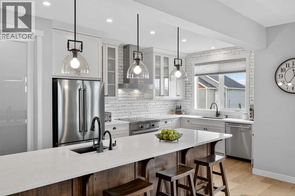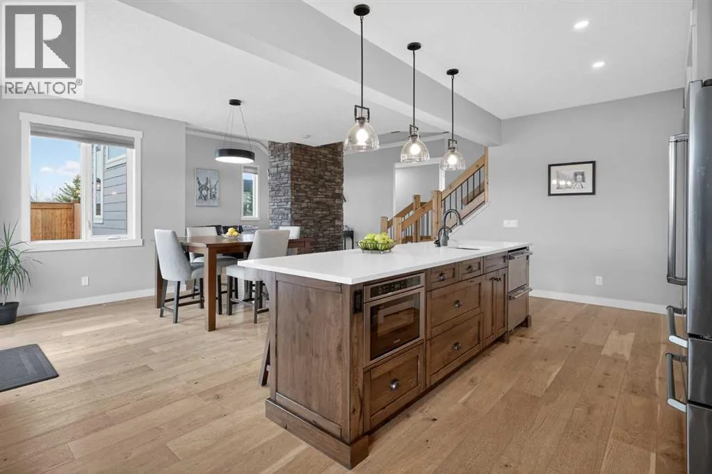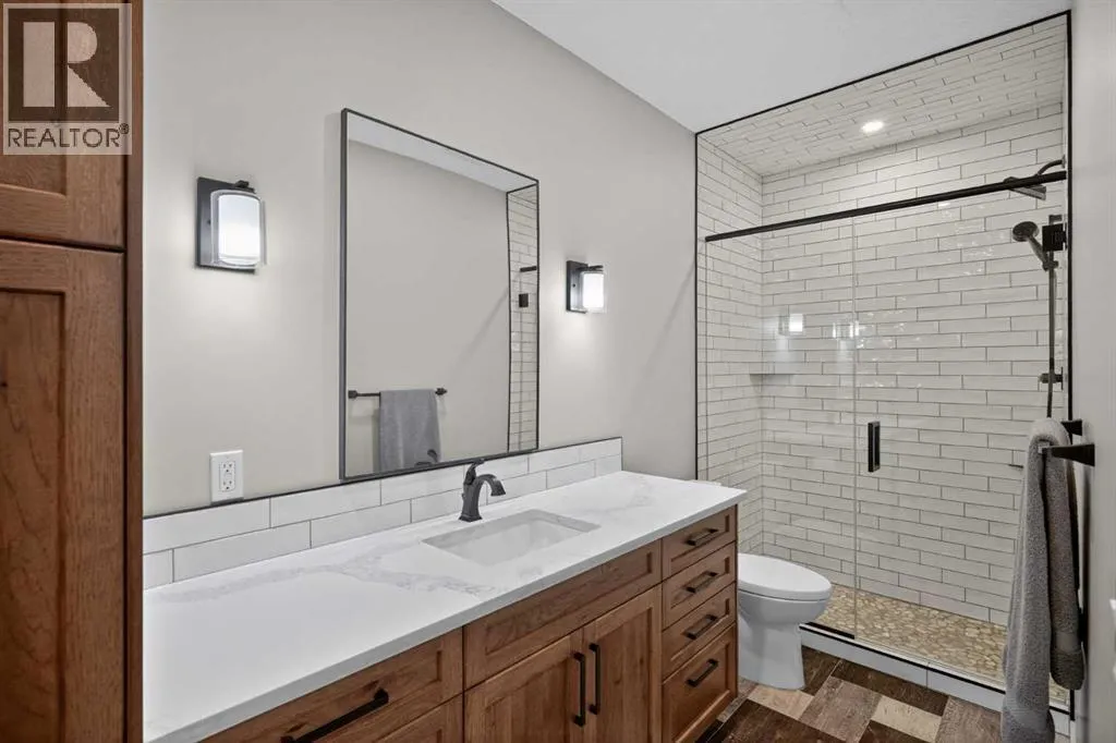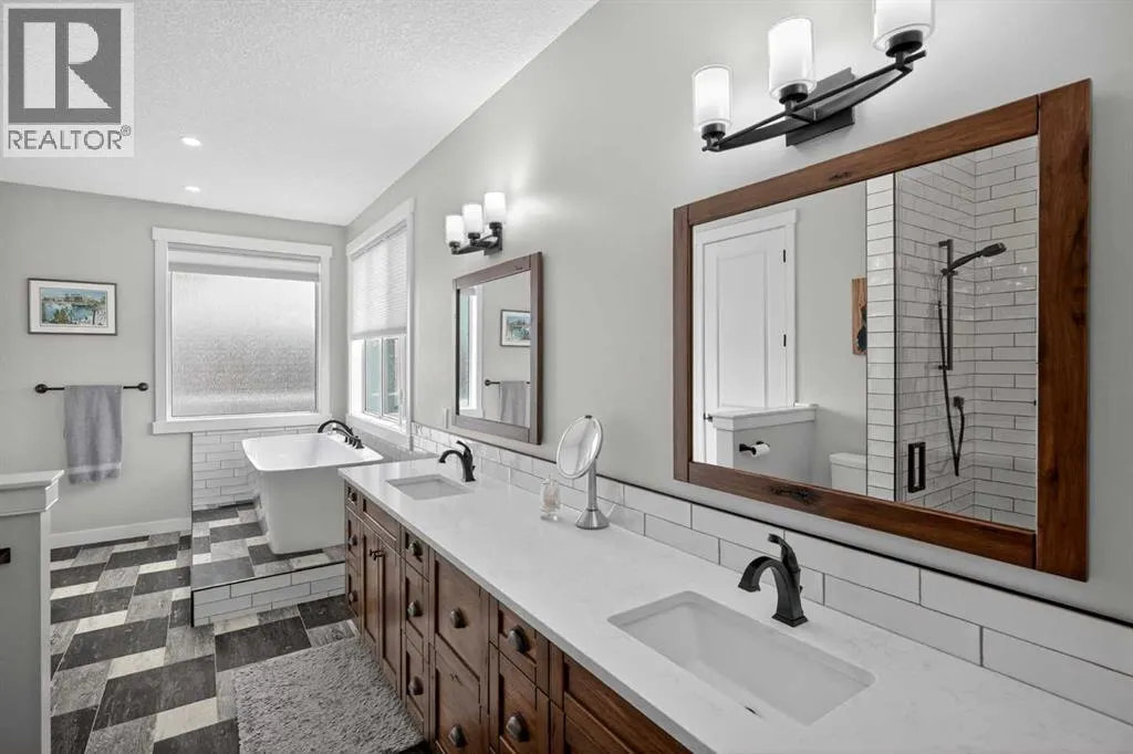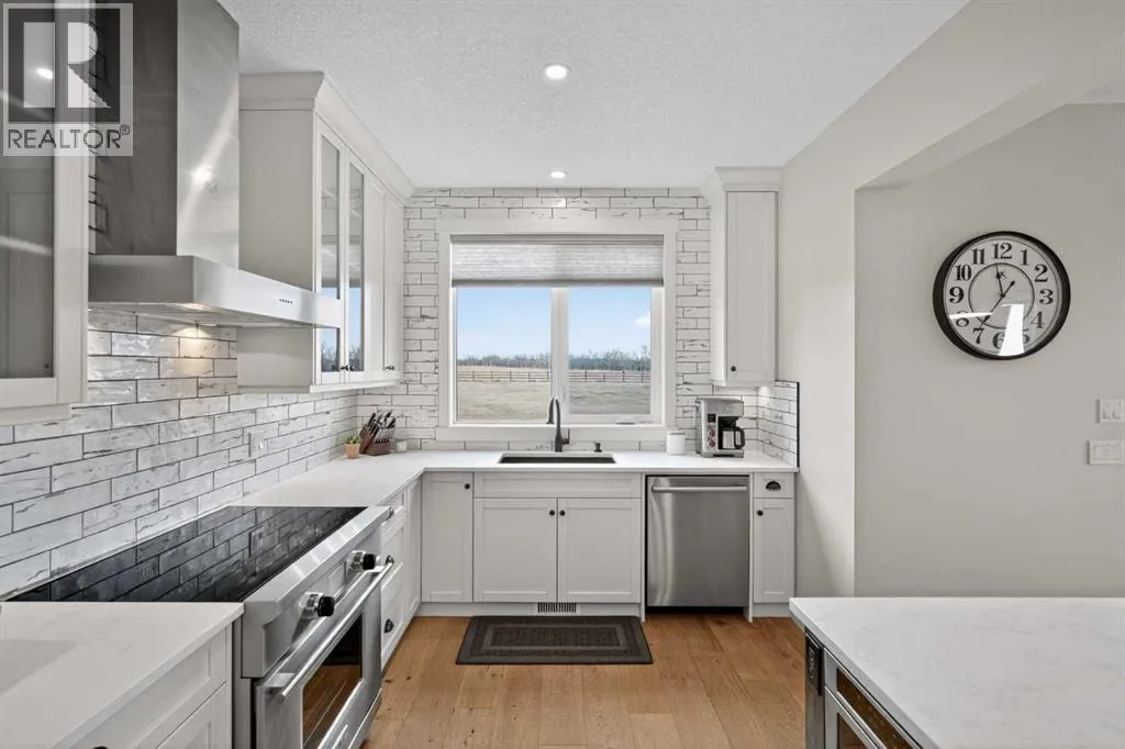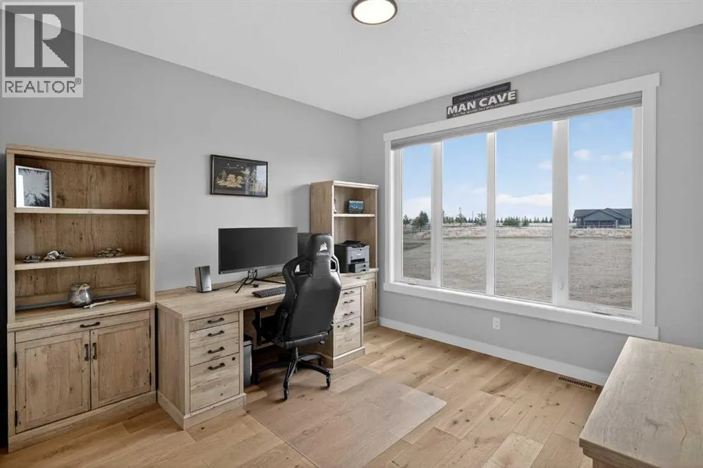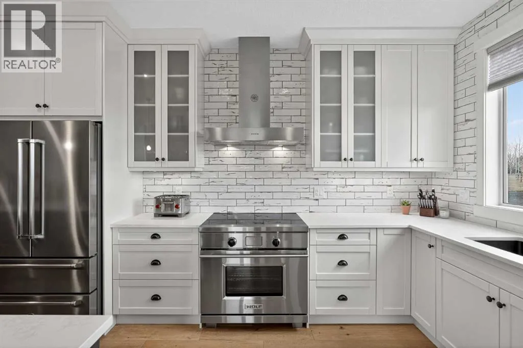 Set on just over 2 acres and only 5 minutes southwest of High River, this CUSTOM BUILT HOME offers nearly 4,000 sq ft of developed living space in a private setting backing onto an environmental reserve, giving you the space, privacy, and lifestyle people are searching for but rarely find this close to town. Step through the front door and you are immediately welcomed by an expansive open concept space, highlighted by soaring VAULTED ceilings, a stunning floor to ceiling BRICK GAS FIREPLACE, and a custom FIR WOOD staircase that acts as a true architectural feature. The kitchen is seamlessly integrated into this space and is built to stand out, featuring a large central island, custom cabinetry, premium appliances, including a 36 inch INDUCTION WOLF RANGE that brings both style and performance. The main floor is finished with wide plank white oak ENGINEERED HARDWOOD, along with 9 foot ceilings, and 8 foot doors. The layout is both practical and flexible, offering a main floor bedroom or office, a full bathroom, and laundry, all thoughtfully positioned to enhance how the home functions day to day. The upper level is highlighted by a stunning primary suite, complete with its own PRIVATE BALCONY showcasing west facing MOUNTAIN VIEWS, an ensuite featuring a dual vanity with quartz countertops, a freestanding tub, and a glass enclosed shower, along with a spacious walk in closet that creates a true retreat. Two additional bedrooms, a comfortable sitting area, and a custom designed staircase complete a second level that blends both function and style. The basement is fully finished and adds significant, well designed living space to the home. You will find two spacious bedrooms, a beautifully finished 3 piece bathroom, and a massive entertaining area that is enhanced by CUSTOM CABINENTRY, creating the perfect setup for a media room, games area, or extended family space. In floor heating runs throughout, adding a level of comfort that you will appreciate every single day. S tep outside, and you start to understand what truly sets this property apart. The set-back lot creates a level of privacy thatâs hard to find, giving you space to enjoy the outdoors the way itâs meant to be. Itâs built for both entertaining and everyday living, with a hot tub hookup already in place. A SECURITY GATE adds an extra layer of privacy and peace of mind. Stamped concrete patios at both the front and back create clean, functional spaces to relax and gather. You have a TRIPLE ATTACHED GARAGE plus a detached HEATED SHOP, giving you all the room you need for vehicles, storage, or a dedicated workspace without compromise. And itâs not just about the space, itâs how comfortably you live in it. With CENTRAL A/C and a 2-ZONED furnace, the home is designed to keep every level feeling just right, no matter the season. Every detail is designed for how the home lives day to day, with space to grow without losing connection. Opportunities like this, with this level of finish, space, and privacy, are rare! (id:27476)