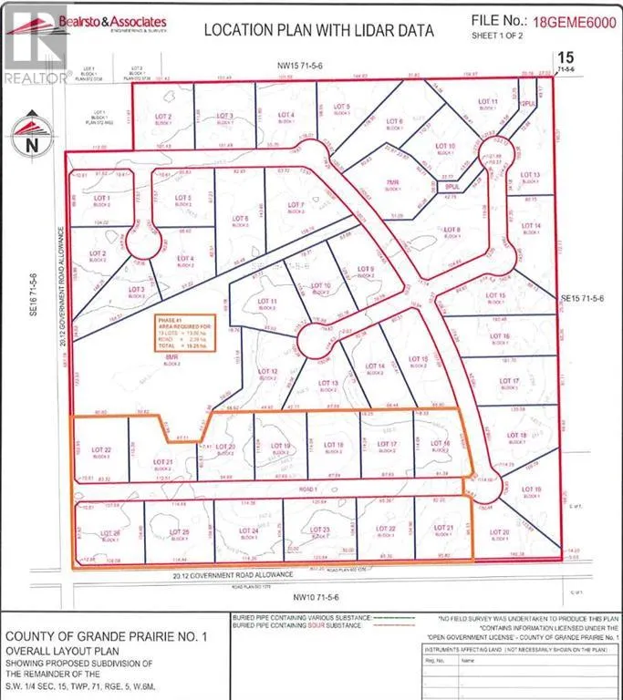 DEVELOPMENT PARCEL! Welcome to the new acreage community just SE of Grande Prairie - Heritage Estates! 146.91 acres East of Signature Falls, Sandy Ridge Estates, etc. along 68 Avenue and RR53. Wetland Assessment completed and subdivision plan approved by County. First phase approval has 13 lots ranging from 2.47 acres -3.12 acres each. The quarter to the East is also available for sale and would be ideal for future phases (MLS# A2123359). (id:27476)