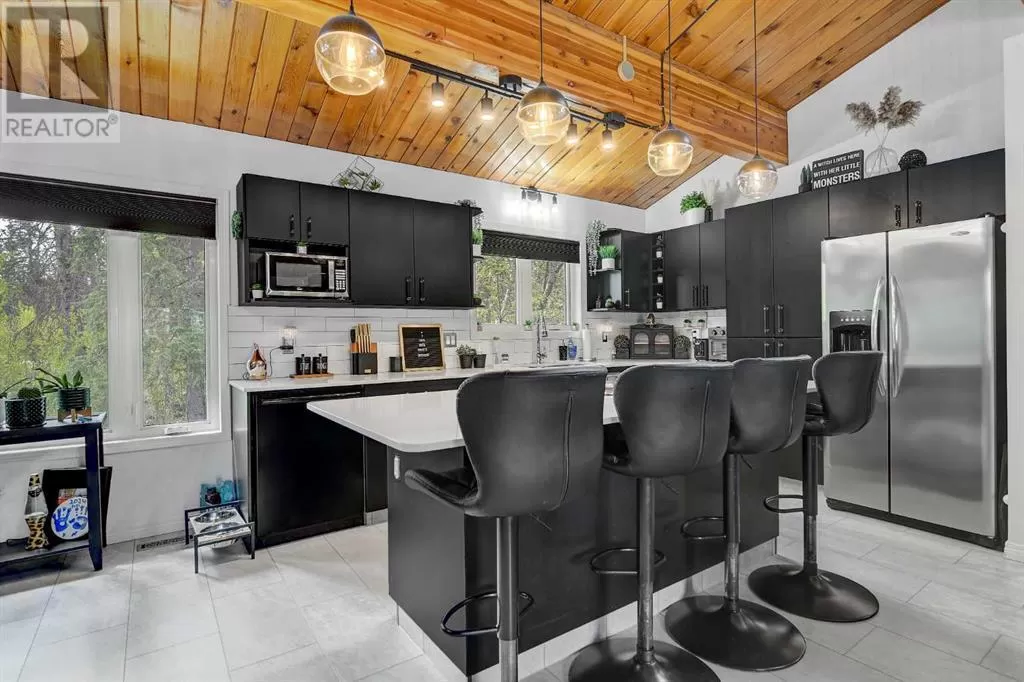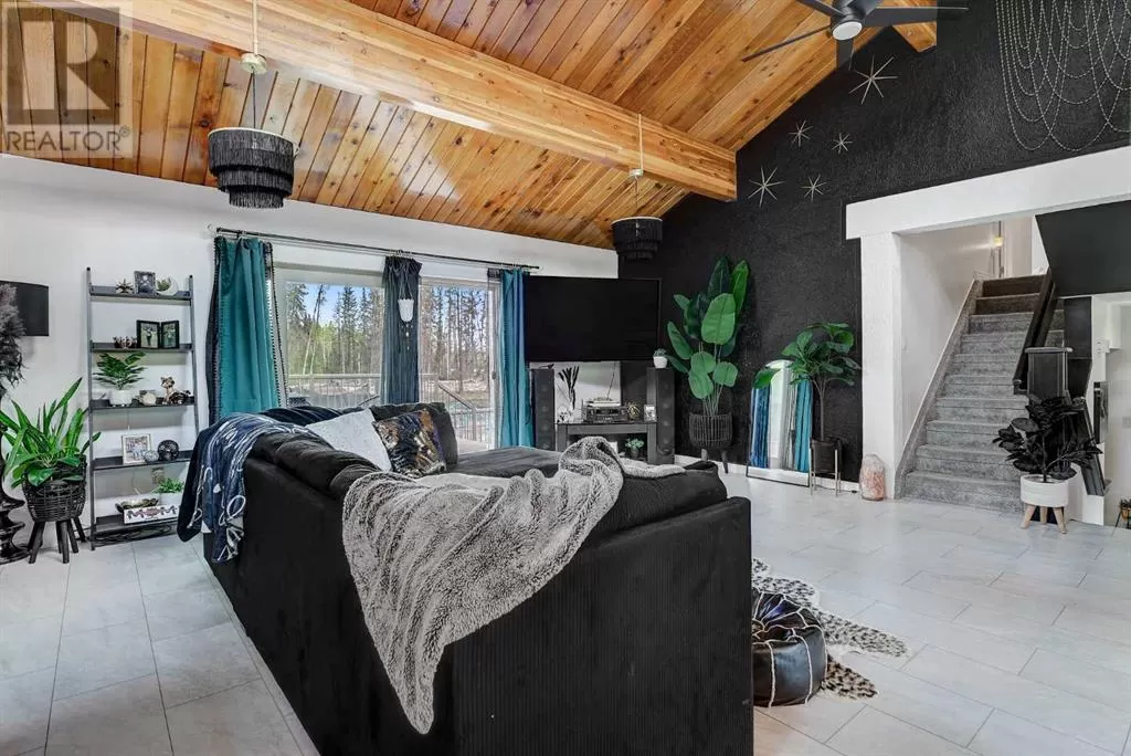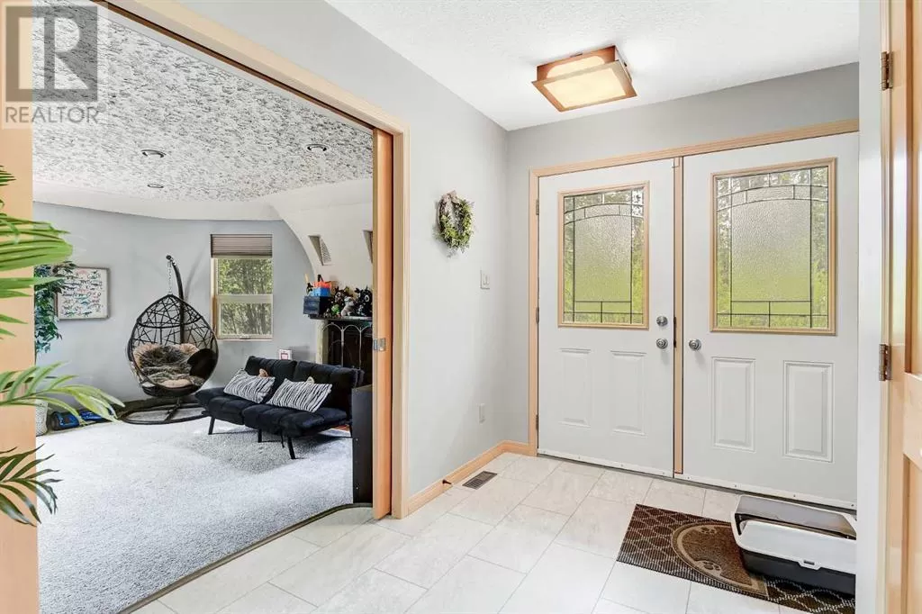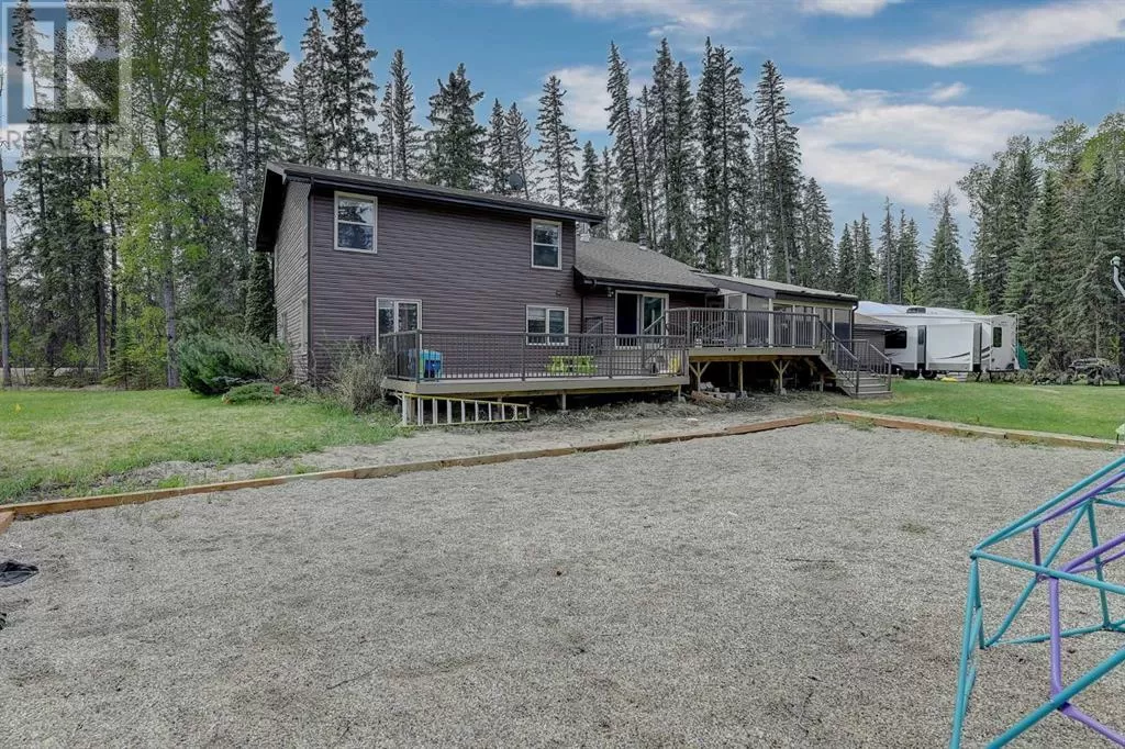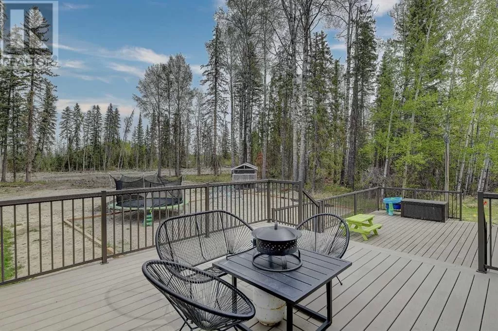 Just one minute from city limits, this stunning 7.52-acre fully treed acreage offers an incredible blend of location, privacy, space, and upgradesâan opportunity that comes along only once in a decade. The paved driveway leads you through towering spruce trees to a beautifully manicured yard, an architecturally striking 3,228 sq ft (includes the 720 sqft converted garage space) custom home, and a massive 42' x 60' steel pole coverall shop with concrete floorâperfect for RVs, equipment, or all your toys. Inside, the home features numerous updates including quartz countertops, subway tile backsplash, new sink and fixtures in the kitchen, fresh vinyl tile flooring, new carpet, and updated paint throughout. The spacious living room opens onto a two-tier deck and a 3-season BBQ/hot tub screen room, complete with a low-maintenance, skirted saltwater hot tub on a concrete slabâperfect for year-round relaxation. Vaulted ceilings and large windows fill the main living areas with natural light, while the second level boasts a luxurious master suite with a fully renovated spa-like ensuite and a large custom theatre room. The upper level includes four generously sized bedrooms, all with new paint and flooring, plus a fully updated bathroom and a convenient Jack and Jill bathroom. Additional highlights include main floor laundry, a lower-level guest bedroom with ample storage, and a converted 720 sq ft garage that now serves as a four-season workspace, man cave, or games room. This property must be seen to be truly appreciatedâdonât miss your chance to own this rare gem. County approved 2nd approach (waiting for county to put in the remainder of the approach) (id:27476)