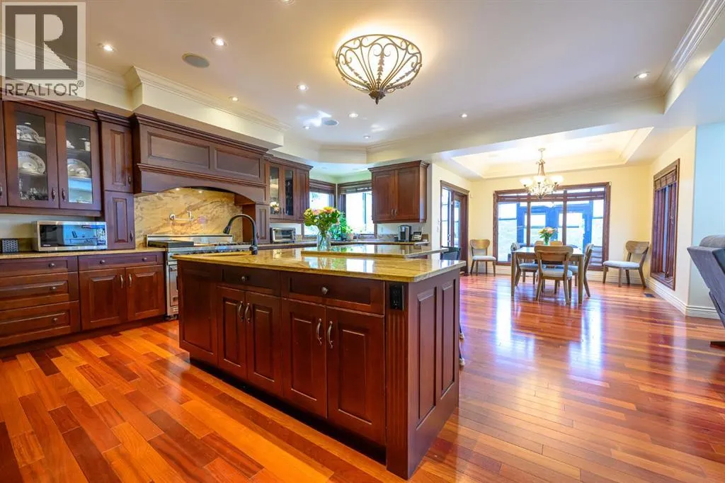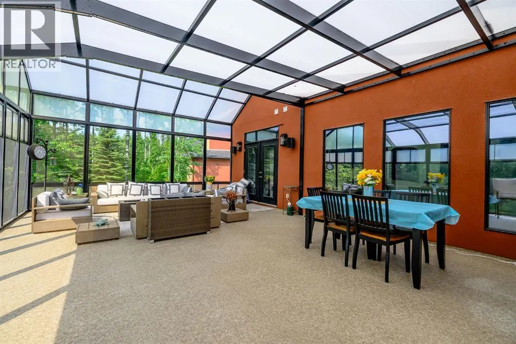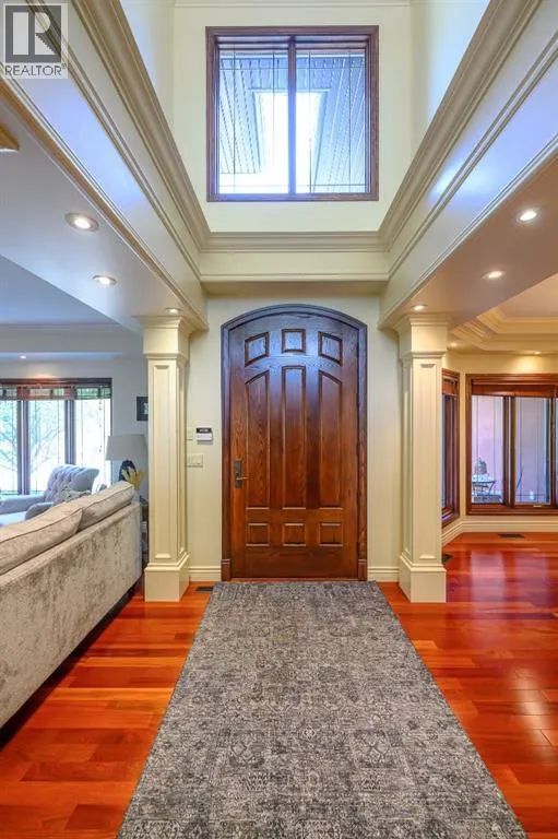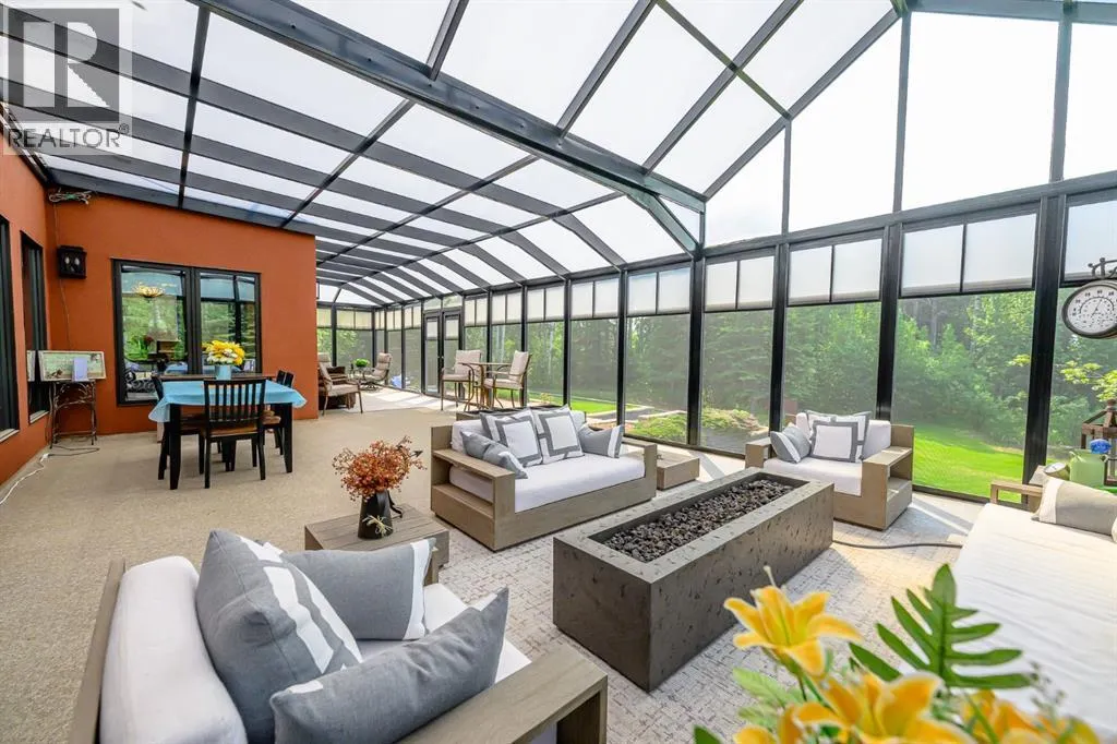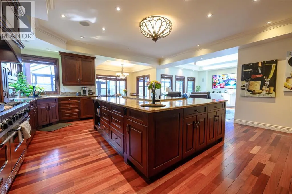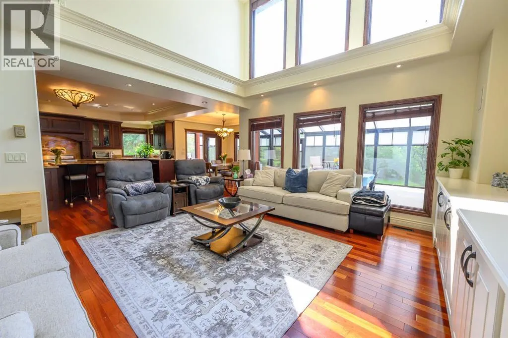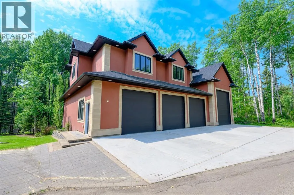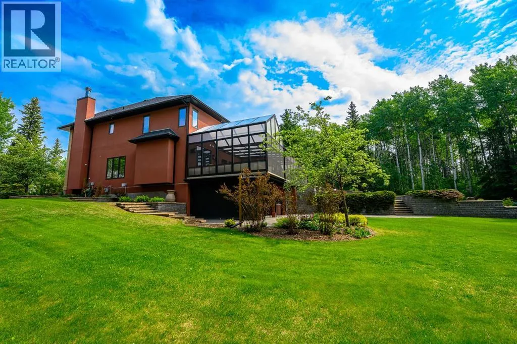 Welcome to your dream estateâan extraordinary blend of refined living, privacy, and unparalleled amenities, all nestled on 4 fully landscaped, gated acres. This exquisite 5-bedroom, 4.5-bathroom custom home offers over 4,900 sq ft of thoughtfully designed living space across two storeys, perfectly suited for families, entertainers, and multi-generational living. Step inside to find soaring ceilings, an elegant open-concept layout, and premium finishes throughout. The gourmet kitchen is a chefâs dream with high-end appliances, custom cabinetry, and a walk-through pantry. A second full kitchen in the fully finished basement offers added versatility for entertaining or extended stays. Upstairs, a spacious bonus room above the oversized 3-car attached garage provides the perfect setting for a family lounge, home office, or play area. Unwind in the luxurious theatre room or enjoy music throughout the home with the built-in sound system. Year-round comfort is ensured with air conditioning, while the three-season sunroomâwith natural gas hookups for a BBQ and fire tableâoffers the ideal indoor-outdoor living experience.The primary suite is a serene retreat, and additional bedrooms are generously sized to accommodate family and guests. Outside, relax in the hot tub, gather around the fire pit, or explore the private pond with a fountain, swing in the woods, playhouse, and two handy storage sheds. A standout feature is the fully finished, heated four-door shop with a bathroom and a beautifully appointed 2-bedroom, 1-bath in-law suite aboveâperfect for extended family, guests, or rental income potential. This rare offering combines luxury, space, and functionality in a peaceful country setting just minutes from city amenities. Your forever home awaits. Book your showing today. *Listing agent related to seller. (id:27476)