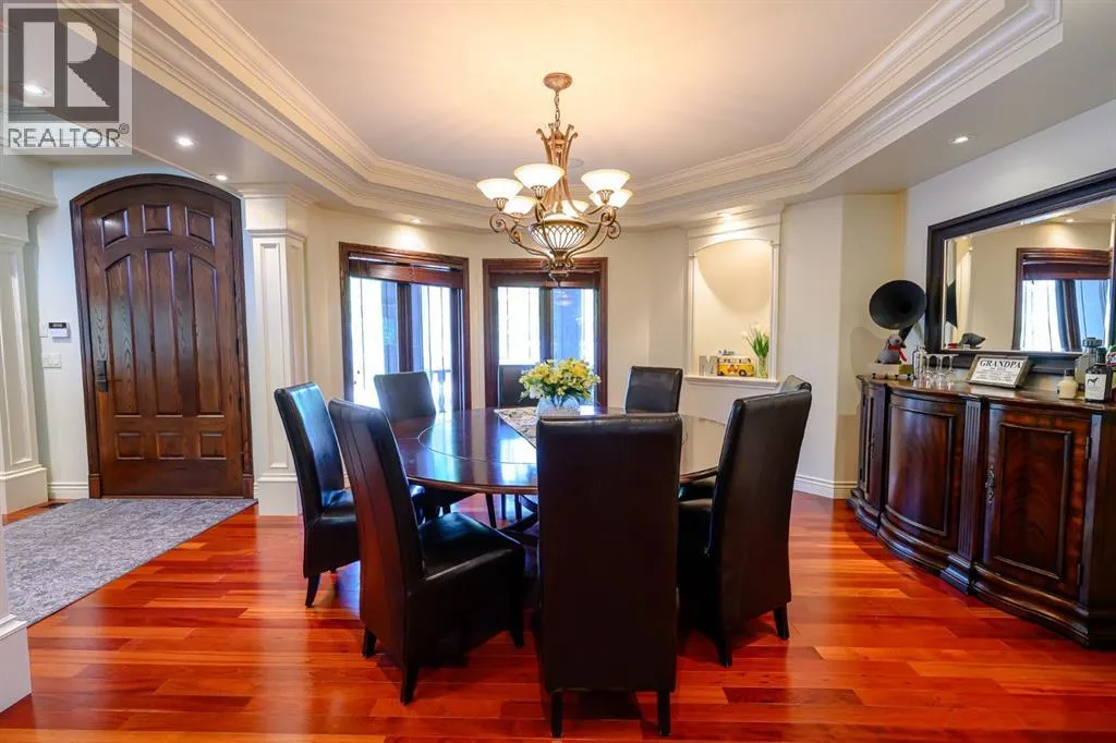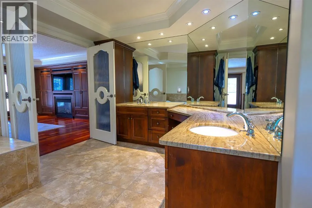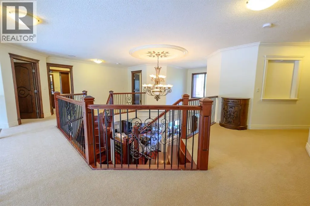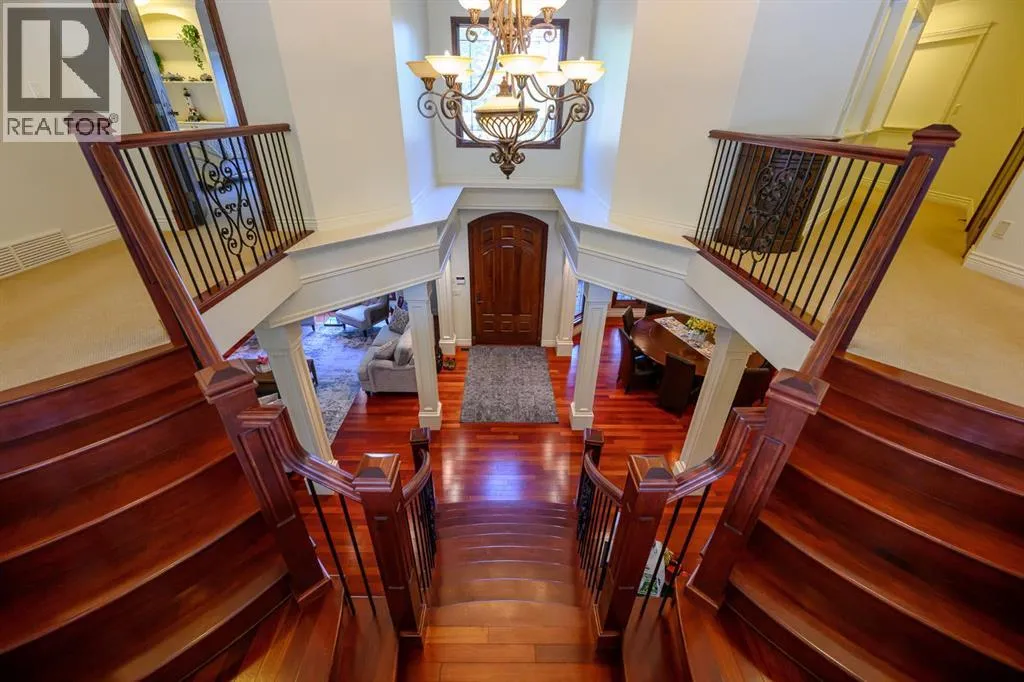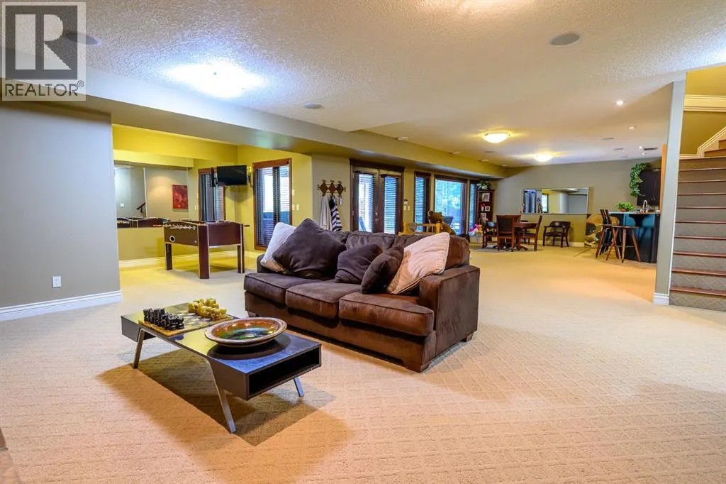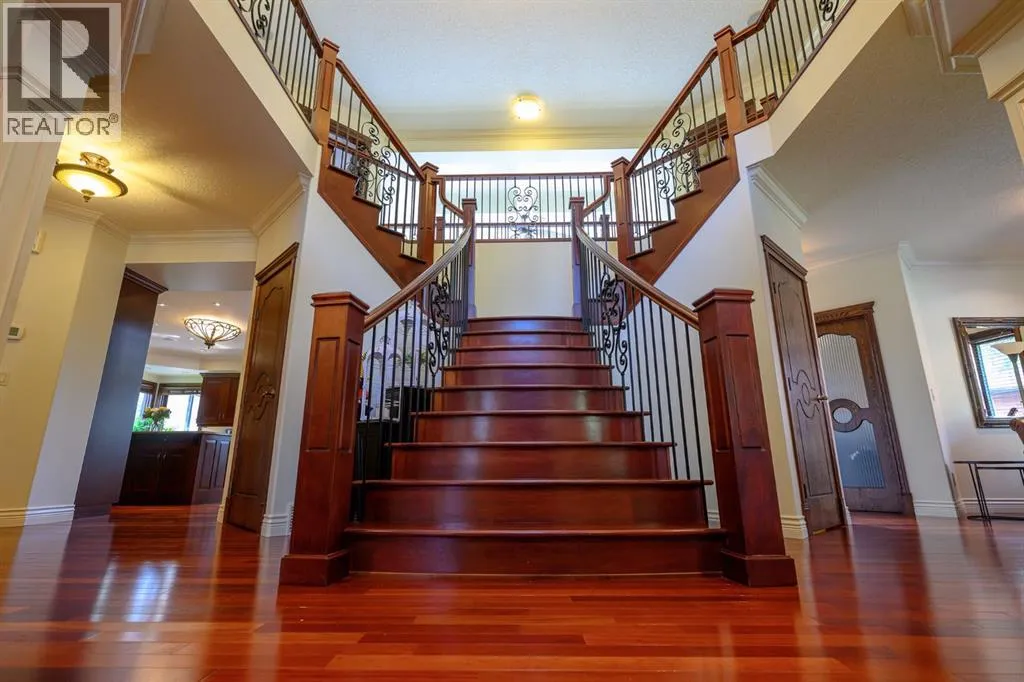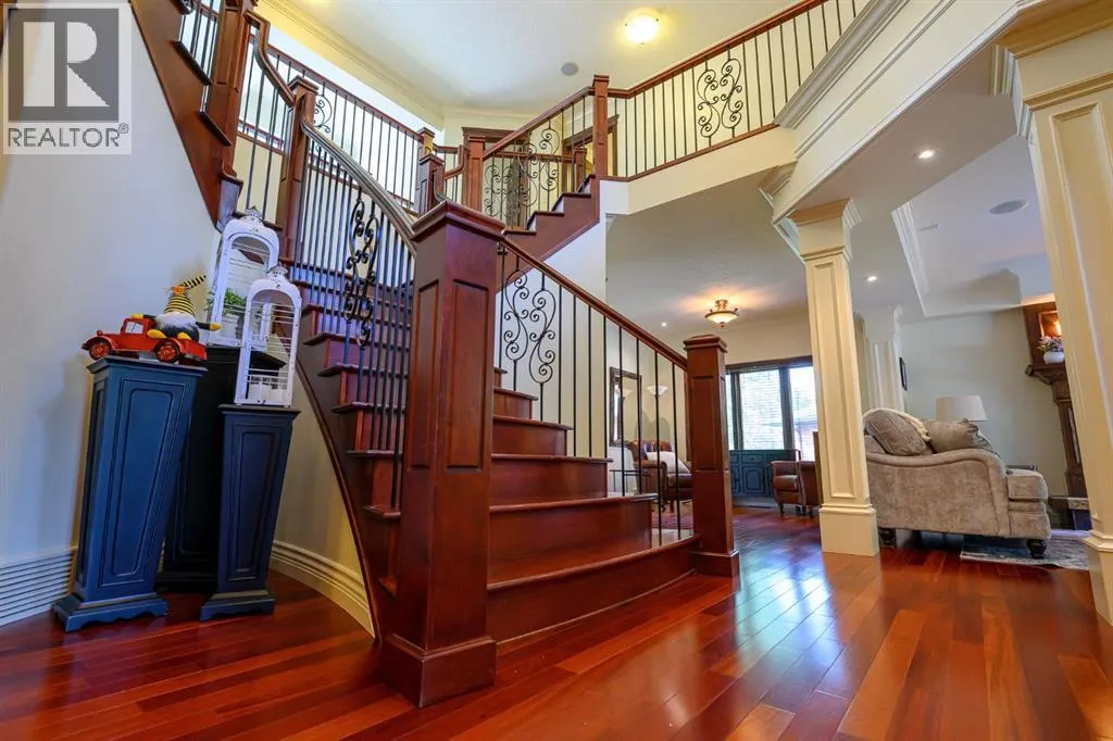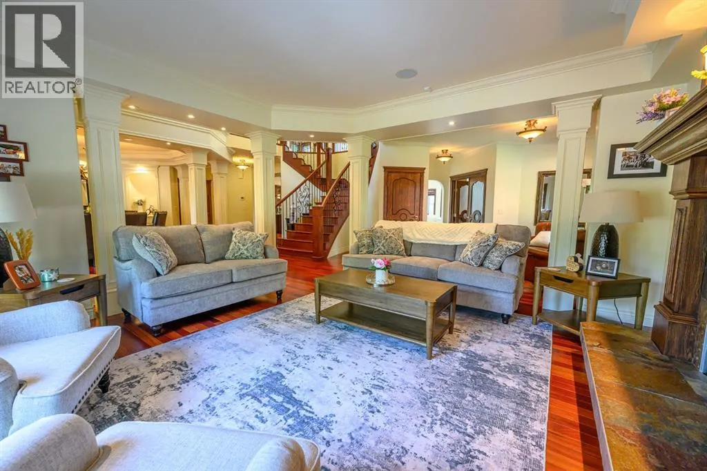 Welcome to your dream estateâan extraordinary blend of refined living, privacy, and unparalleled amenities, all nestled on 4 fully landscaped, gated acres. This exquisite 5-bedroom, 4.5-bathroom custom home offers over 4,900 sq ft of thoughtfully designed living space across two storeys, perfectly suited for families, entertainers, and multi-generational living. Step inside to find soaring ceilings, an elegant open-concept layout, and premium finishes throughout. The gourmet kitchen is a chefâs dream with high-end appliances, custom cabinetry, and a walk-through pantry. A second full kitchen in the fully finished basement offers added versatility for entertaining or extended stays. Upstairs, a spacious bonus room above the oversized 3-car attached garage provides the perfect setting for a family lounge, home office, or play area. Unwind in the luxurious theatre room or enjoy music throughout the home with the built-in sound system. Year-round comfort is ensured with air conditioning, while the three-season sunroomâwith natural gas hookups for a BBQ and fire tableâoffers the ideal indoor-outdoor living experience.The primary suite is a serene retreat, and additional bedrooms are generously sized to accommodate family and guests. Outside, relax in the hot tub, gather around the fire pit, or explore the private pond with a fountain, swing in the woods, playhouse, and two handy storage sheds. A standout feature is the fully finished, heated four-door shop with a bathroom and a beautifully appointed 2-bedroom, 1-bath in-law suite aboveâperfect for extended family, guests, or rental income potential. This rare offering combines luxury, space, and functionality in a peaceful country setting just minutes from city amenities. Your forever home awaits. Book your showing today. *Listing agent related to seller. (id:27476)