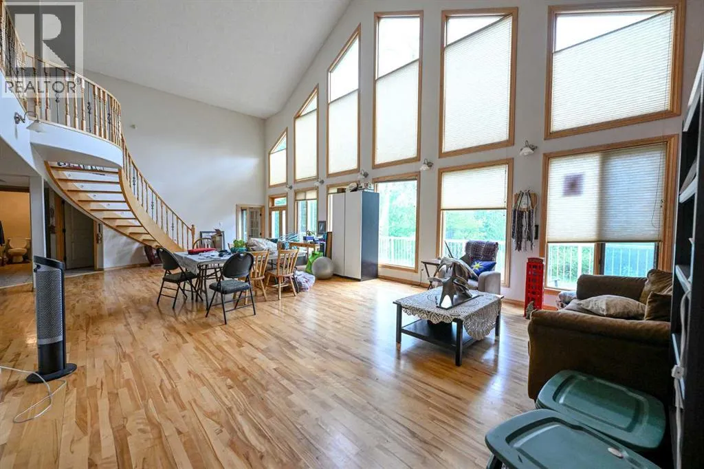 Discover your dream home nestled on a private quarter section of land, offering the perfect blend of tranquility and space. This impressive 3,033 sq ft residence welcomes you with a stunning spiral staircase and expansive windows that fill the home with natural light. The spacious kitchen is a chefâs delight, featuring double ovens and ample room for entertaining. Contact a Realtor today for more details!All bedrooms are designed with comfort in mind, each boasting its own walk-in closet. The luxurious primary suite offers a large ensuite, providing a personal retreat to unwind. Enjoy the wood stove in the living room where there is ample space for entertainment. The property includes both an attached heated double garage and an additional detached garage, ensuring plenty of space for vehicles, or a workshop. Located in a peaceful and quiet area near the Wapiti River, this home offers the perfect escape while still providing easy access to nature and outdoor recreation. (id:27476)