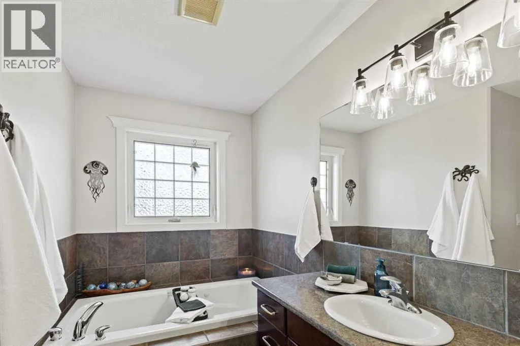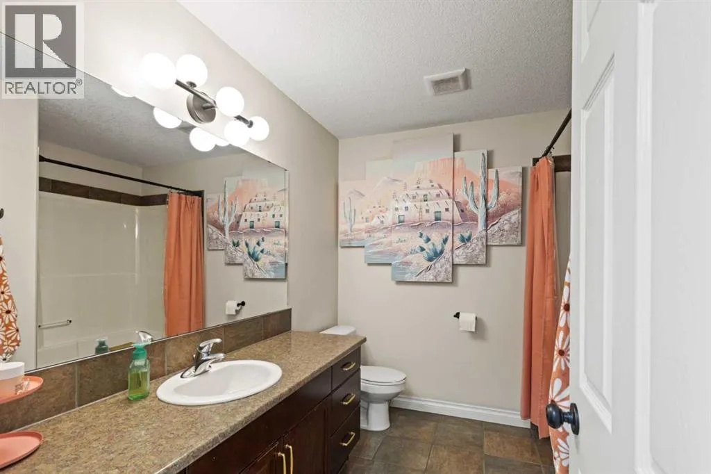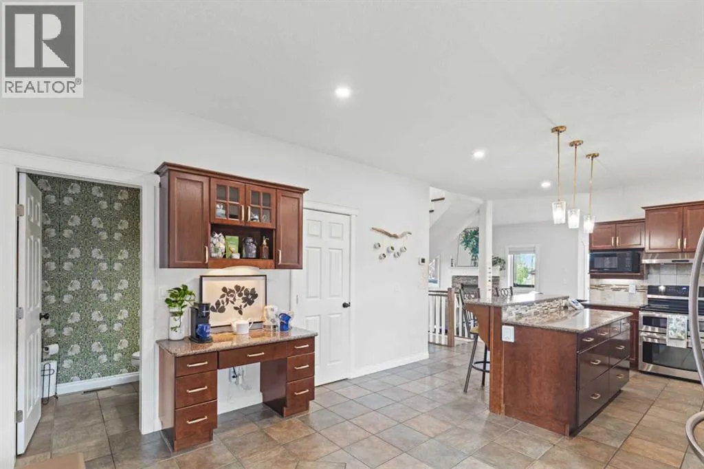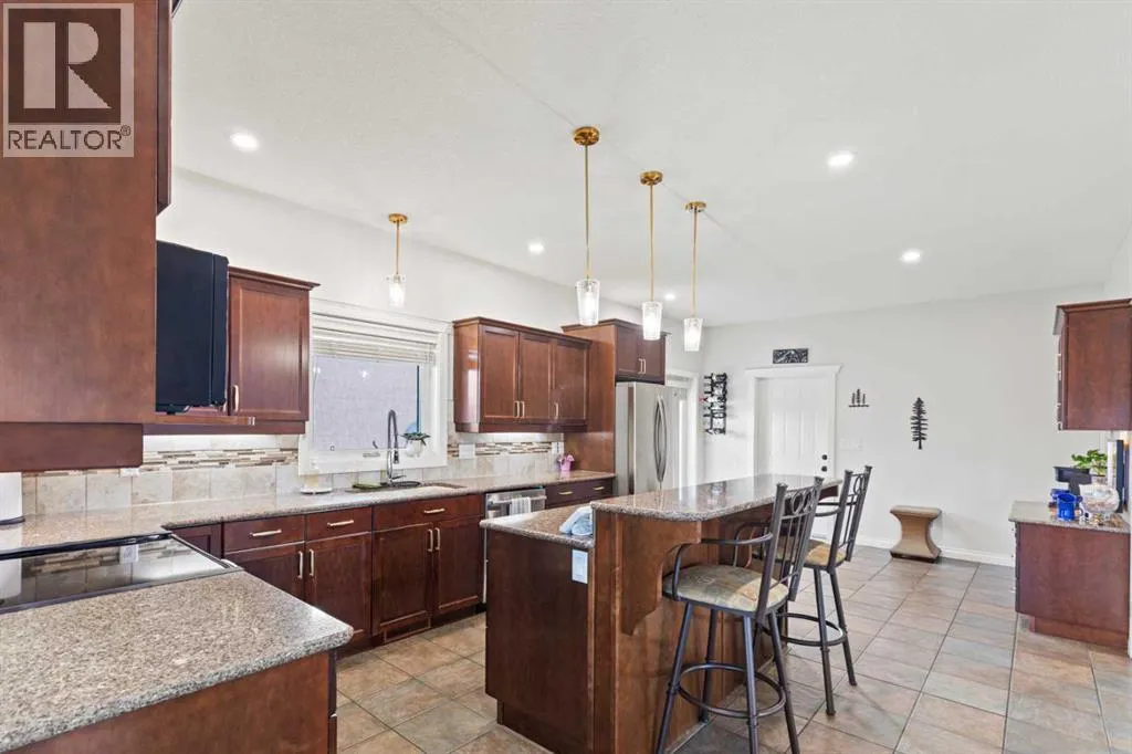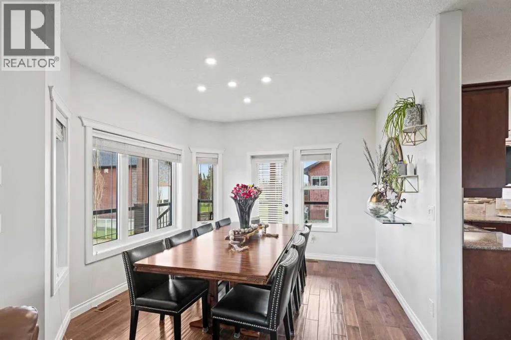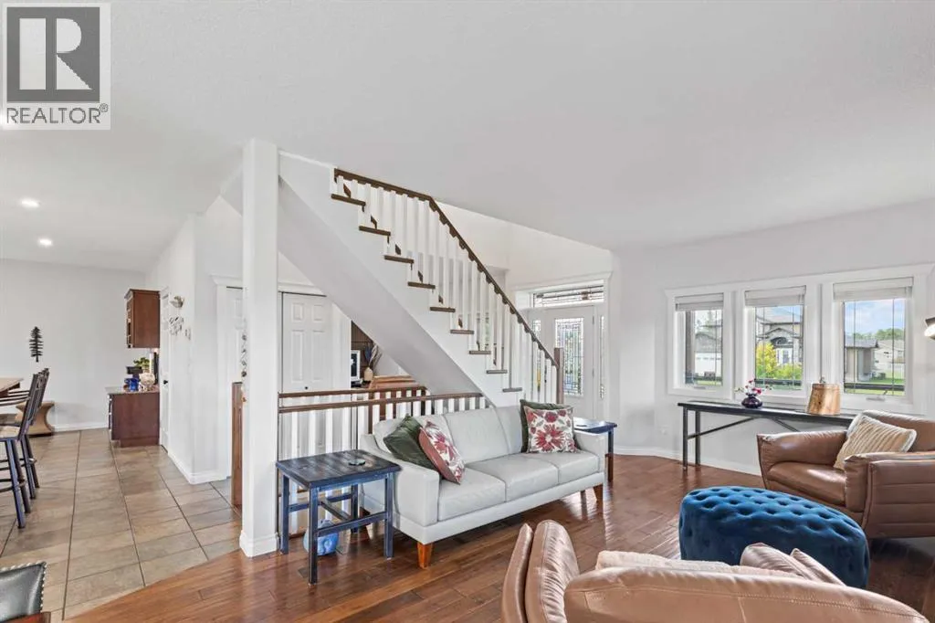 Welcome to this impressive two-storey family abode, a suburban retreat tailored for those yearning to upgrade their lifestyle. With an inviting central staircase greeting you upon entry from the front door, this home exudes a harmonious blend of elegance and comfort. The heart of the home is a capacious kitchen, equipped with granite counters, a sizeable island, eat-up bar, walk-in pantry, garburator, under cabinet mood lighting, and an exquisite coffee bar. The kitchen flows seamlessly into a versatile main floor, offering a formal dining area, a cozy living room with a featured gas fireplace, and a sitting room or den, all boasting hardwood floors and providing various options for arranging your ideal living space. Upstairs, a sanctuary awaits with four well-appointed bedrooms, ensuring the family remains connected. The master suite is a place of tranquillity, featuring a full ensuite with a luxurious deep bath and a walk-in closet. Three additional bedrooms serviced by a spacious main bathroom complete this floor. The lower level boasts a recreational area with sliding doors that open to a snug living space, which can serve as an extra bedroom or a bonus room. Currently itâs perfectly setup as an in law suite including a kitchenette with fridge, substantial storage and closet space, and a full bathroom with a walk-in shower and heated floors. The expansive plot boasts a nearly equal balance of concrete parking space and lush grass, complemented by garden beds, young and mature trees, all enveloped by a fully fenced yard. The composite wrap-around deck, adorned with glass panel regal railing, provides a splendid outdoor living space. This home is brimming with bonuses: new central air conditioning, an irrigation system, security features, a gas BBQ line, RV hookups, updated light fixtures throughout, and fresh paint on upper and lower floors. The triple car garage, with its robust epoxy floors, is heated and finished with 220V power, offering copious parking and s torage solutions. This property is a rare gem, meticulously crafted for the discerning family in search of their forever home. (id:27476)