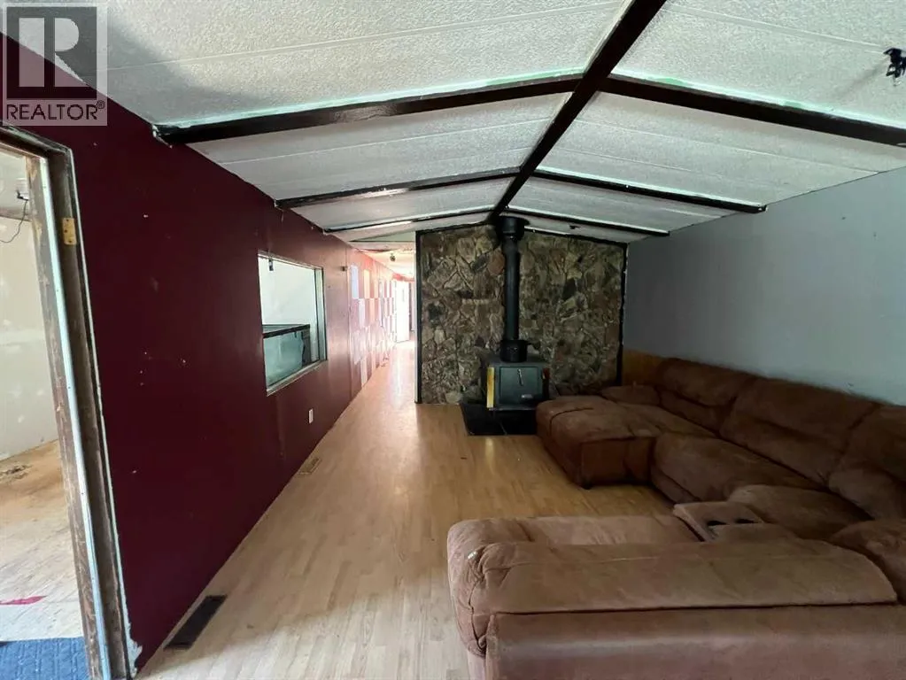 Investor alert! 2 bedroom 1 bathroom single wide mobile home that could be converted back to a 3 bedroom home. Has a large 10'x26' addition that is open to the kitchen and living room area. Front facing kitchen area, and living room has a wood stove. Shingles are newer, and there's a shed in the yard for all your gardening and storage needs. There are no rear neighbours, and you're located at the end of the road so very little traffic. This home is in a park like setting with a forest across the road from you, and a huge lot to enjoy. If you're ready to put the effort in - this home could be the right investment for you! This home is sold as-is, where-is. Contact your realtor today to schedule a viewing. Lot rent is $440/month, property taxes are $175.93 for 2025. (id:27476)