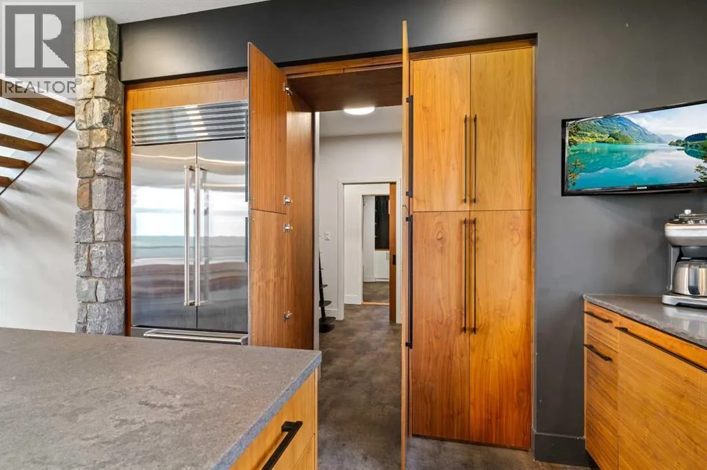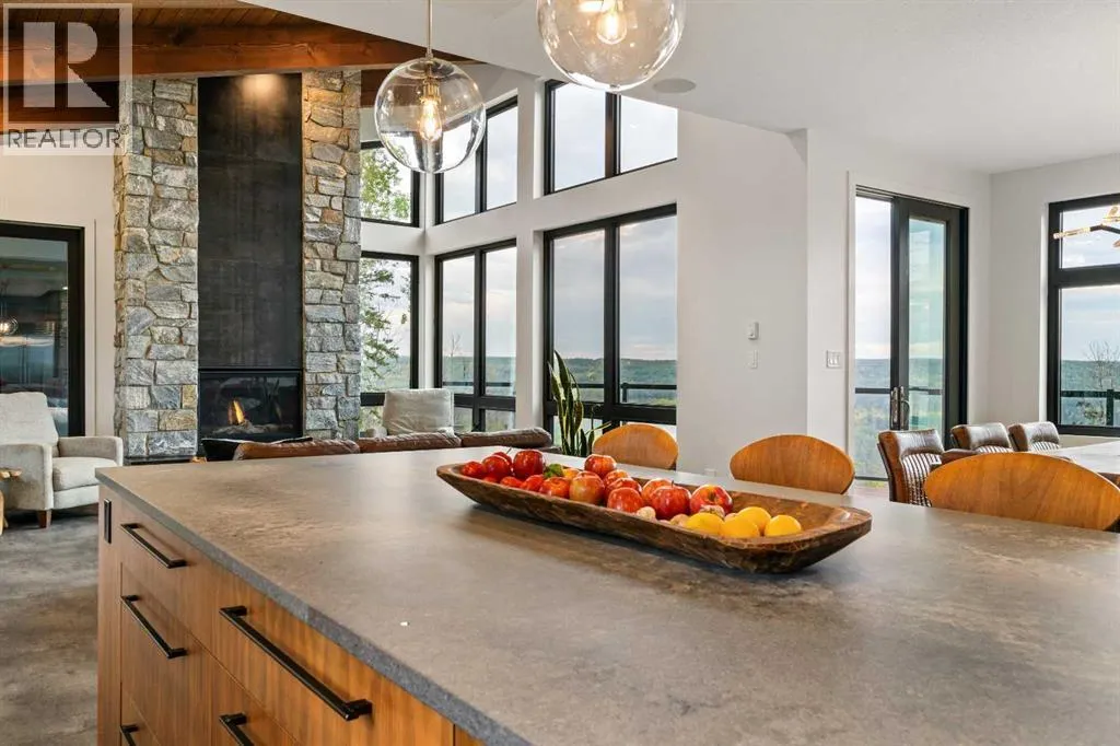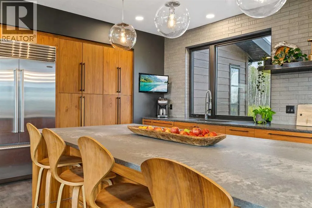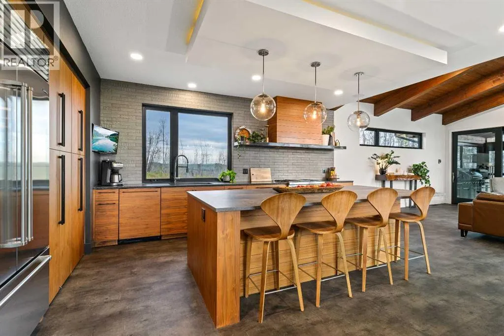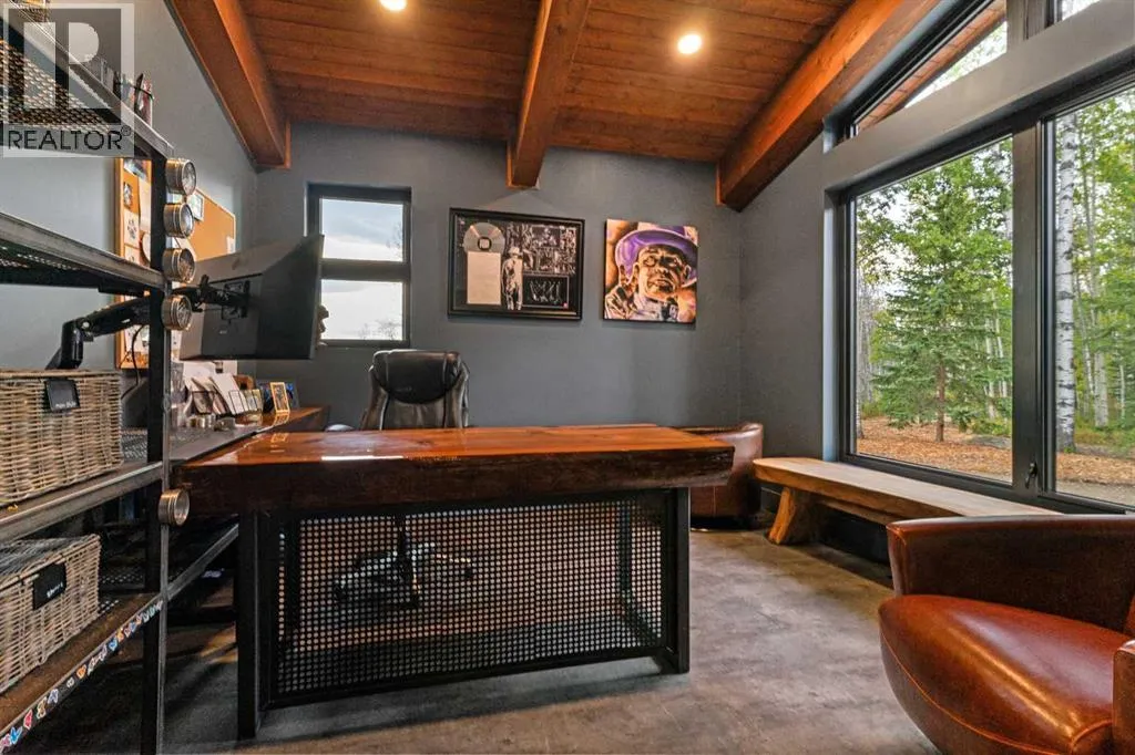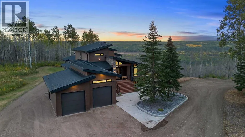 Welcome to your luxurious acreage retreat just minutes southwest of Grande Prairie. This 2019 custom Stonebuilt Home is a rare and remarkable treasure. A true architectural tribute, paying homage to Albertaâs lush landscape with endless views â 3.41 acres of thoughtfully carved out and designed exterior, bordered by breathtaking forest, this property is surrounded and protected by thousands of acres of pristine crown land, offering expansive views of the Wapiti River Valley. The local landscape is a vital wildlife corridor, preserving the age-old towering trees and is rich in wildlife. At the heart of the property, tucked into the trees, is a sleek contemporary hybrid timber frame two-story dream home. Thoughtfully designed to offer a strong indoor-outdoor connection while creating dramatic views from every angle possible. This warm and inviting 4,327 sqft of fully developed living space features a combination of industrial design elements and natural, organic materials throughout. Souring ceilings, rich wood accents, luxury touches and expansive windows frame a picturesque and serene forest with river valley views. A carefully crafted family friendly layout offers a spacious and inviting atmosphere. The main living area is open concept, integrating your kitchen, dining and living areas effortlessly. Built for entertaining the main floor features a multiple seasons room complete with built in BBQ and wood burning stove. The kitchen is a true chefâs dream featuring Wolf appliances, sub zero fridge and a hidden butlers pantry, to name a few. The main level features a spacious bedroom complete with 4pc ensuite, home office drenched in moody aesthetic and a beautiful powder room. As you make your way to the upper-level you will notice a small cozy nook that could be treated as a 5th bedroom. The primary retreat you wonât be able to overlook your very own private deck complete with hot tub. A mini fridge and coffee bar has been conveniently carved into the plans to al low you to pour yourself a cup of coffee in the morning or a glass of wine at night without ever leaving your oasis. Your boutique- like walk in closet features custom built cabinetry and for practicality hosts your own laundry, dual vanities and luxurious steam shower. The lower of level of the home offers two generous sized bedrooms, 4pc bathroom, a charming under the stairs nook perfect for kids to play and a large rec room for the ultimate cozy evenings in. Detached 35x50 Shop with Apartment living quarters complete with kitchen, laundry & bathroom. Endless opportunities for enjoyment are presented with this property: morning coffee on the deck, peaceful hikes through the forest, walks along the river, connecting with the like-minded community members of Riverview Pines and adventurous afternoons exploringThrough the use of natural wood, forward thinking design and textural elements, this home creates a truly contemporary and luxurious space for you to call home. Book your exclusive tour today. (id:27476)