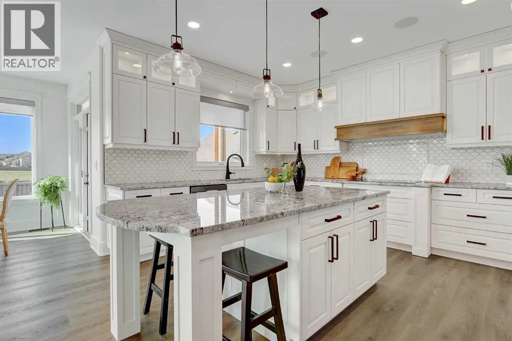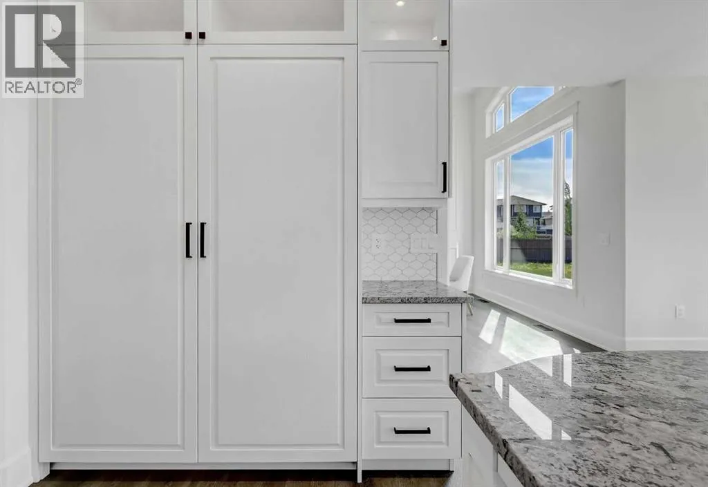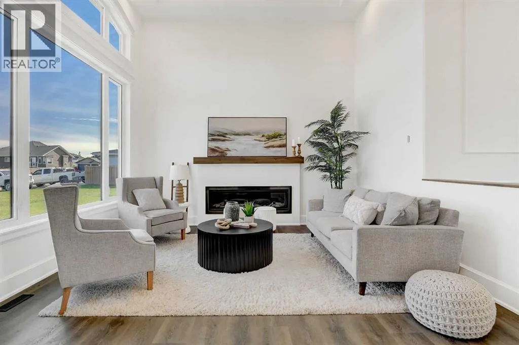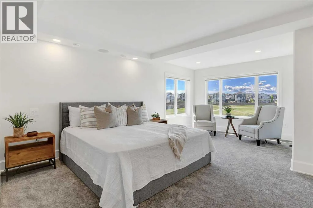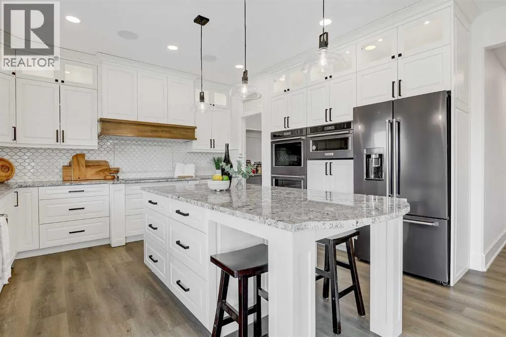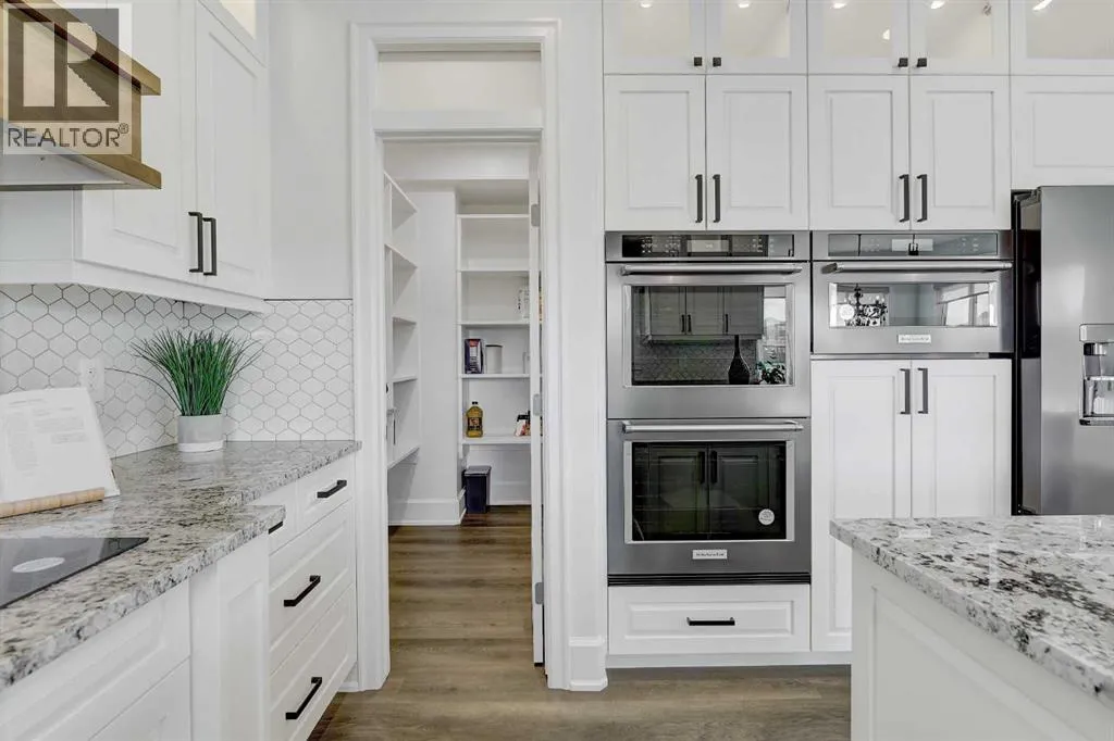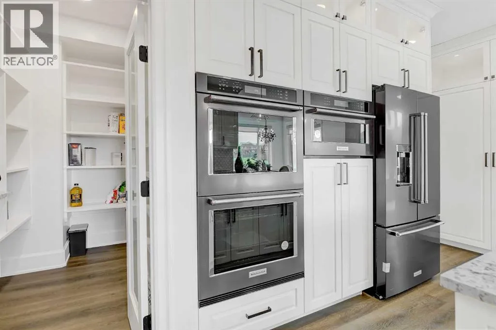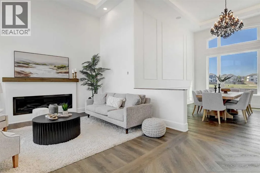 Every detail of this custom-built home in Whispering Ridge has been thoughtfully built to impress, and it does, from the moment you walk through the front door! Set on a 72' x 167' lot with no rear neighbours and county taxes,this property backs onto the pond and walking trails, offering privacy,beauty,and space to breathe.Coffered ceilings and a statement chandelier make an unforgettable first impression. The living room is bright and welcoming, with three large windows that fill the space with natural light.A gas fireplace with a custom maple mantle adds warmth and character,while the coffered ceilings with uplighting bring added dimension.From here,the formal dining room flows beautifully, a space that feels both elegant and inviting. Custom wall moulding, a striking chandelier, and oversized triple windows make it ideal for large gatherings. At the heart of the home, the refined kitchen brings together form and function with stunning results. Cream toned maple cabinetry, granite counters, and a truly massive island make it a natural gathering place. High end appliances include double ovens, an induction cooktop, and a built-in double freezer that blends seamlessly with the custom cabinetry. The butlerâs pantry keeps everything tucked away, and a casual dining nook surrounded by windows makes the most of the scenery, with a door leading to the back deck, made for summer meals outside (deck to be completed). A full bathroom with dual access connects to a spacious main floor bedroom â ideal for guests, multigenerational living, or a refined home office. The rear entry adds style and function with custom built lockers, shelving, and hooks. Upstairs, custom built newel posts lead to a primary suite that feels like a private retreat! The bedroom is generous in size, with a sitting area framed by three windows overlooking the pond and trails. Step out onto your private balcony, designed for a hot tub or morning coffee. The ensuite features heated tile floors, dual vani ties, custom storage towers, an air tub, water closet, and a massive tiled shower with rain head and body sprays. The walk-in closet includes built ins, an island, and a laundry chute. Upstairs also features two large bedrooms and a bath with dual sinks and cheater access. Downstairs, heated floors run throughout and the expansive family room is anchored by a wet bar. The custom theatre is a showstopper, with real constellations, tiered seating, and a mural by a local artist. Two bright bedrooms and a full bath complete the level. The backyard is made for summer evenings, with a stamped concrete fire pit pad and no rear neighbours, perfect for hosting friends! The finished triple garage is a true standout, with easy clean metal walls, epoxy floors, and floor drains in every bay. Triple-pane windows, dual furnaces, A/C, smart lighting, and custom finishes throughout â this home is luxurious, practical, and one-of-a-kind. Call your REALTOR® today to book your private showing. Ask your realtor for list! (id:27476)