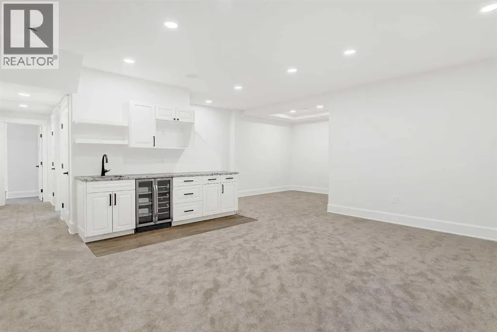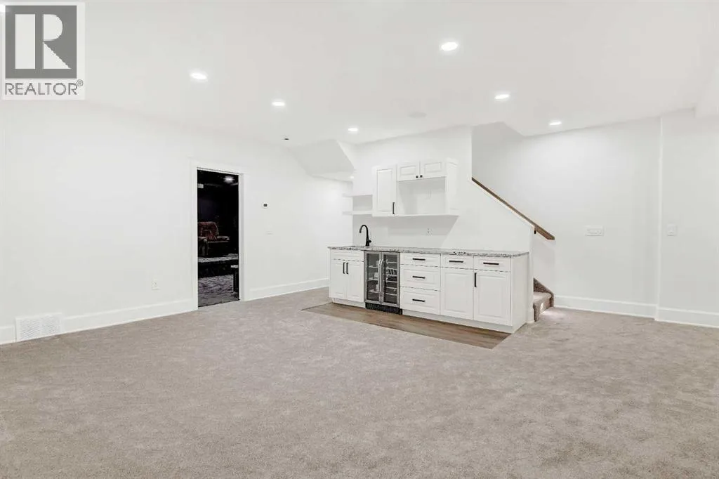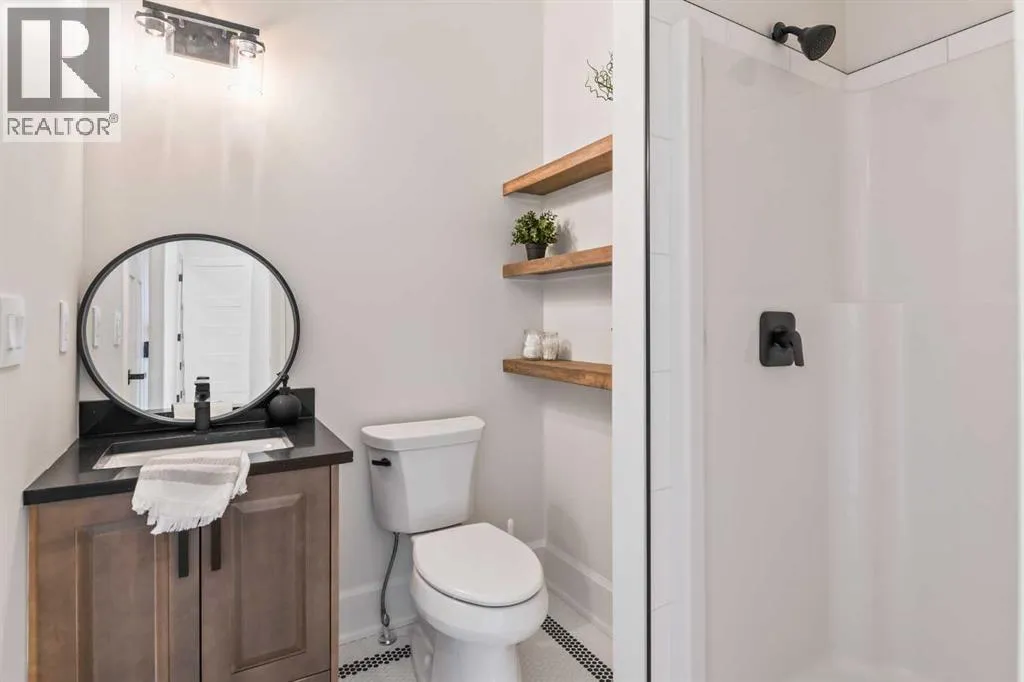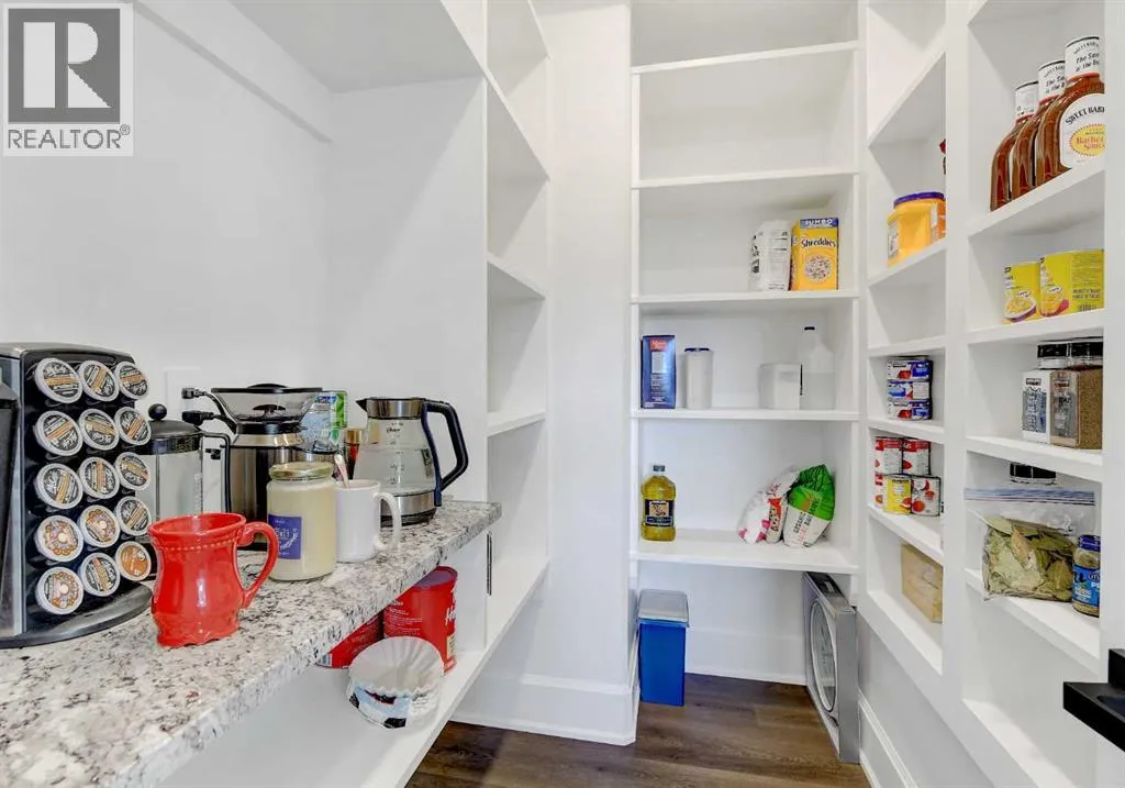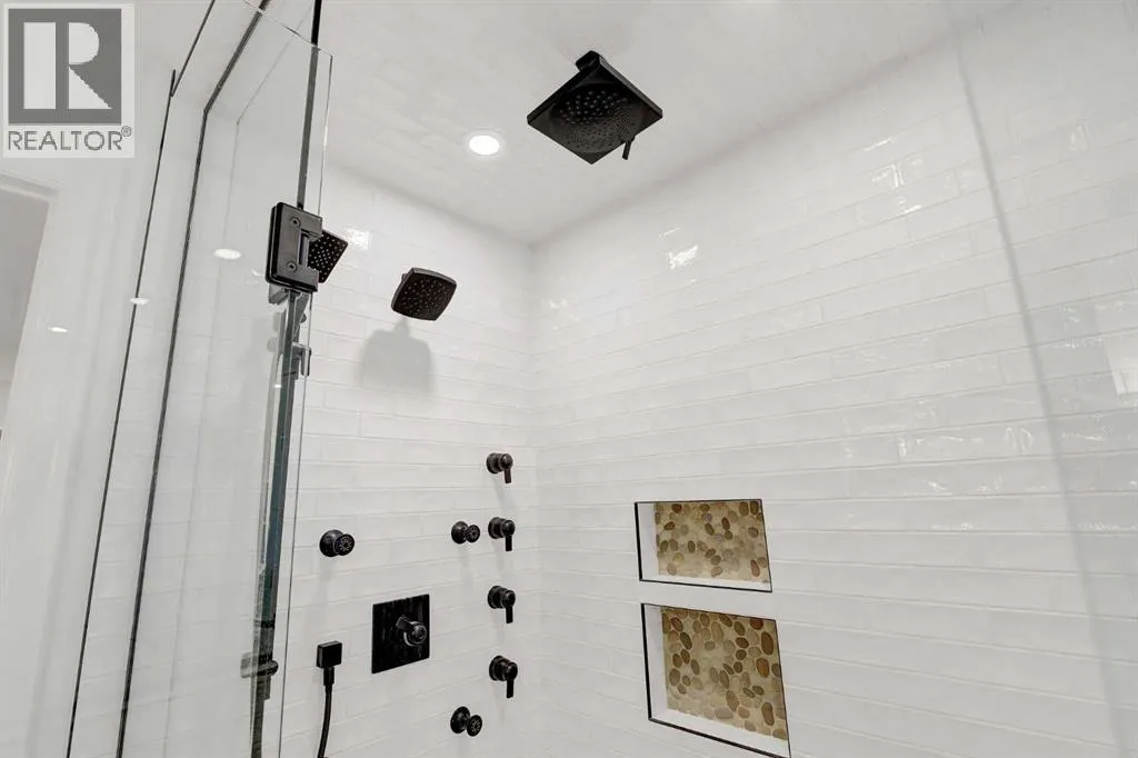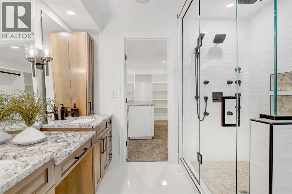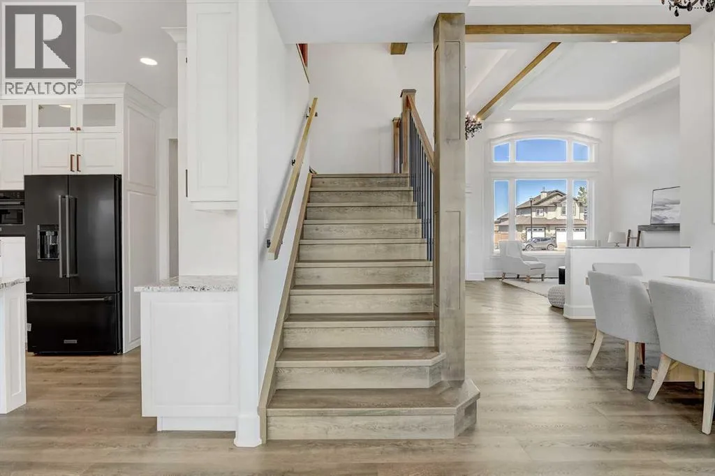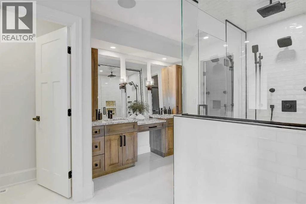 Every detail of this custom-built home in Whispering Ridge has been thoughtfully built to impress, and it does, from the moment you walk through the front door! Set on a 72' x 167' lot with no rear neighbours and county taxes,this property backs onto the pond and walking trails, offering privacy,beauty,and space to breathe.Coffered ceilings and a statement chandelier make an unforgettable first impression. The living room is bright and welcoming, with three large windows that fill the space with natural light.A gas fireplace with a custom maple mantle adds warmth and character,while the coffered ceilings with uplighting bring added dimension.From here,the formal dining room flows beautifully, a space that feels both elegant and inviting. Custom wall moulding, a striking chandelier, and oversized triple windows make it ideal for large gatherings. At the heart of the home, the refined kitchen brings together form and function with stunning results. Cream toned maple cabinetry, granite counters, and a truly massive island make it a natural gathering place. High end appliances include double ovens, an induction cooktop, and a built-in double freezer that blends seamlessly with the custom cabinetry. The butlerâs pantry keeps everything tucked away, and a casual dining nook surrounded by windows makes the most of the scenery, with a door leading to the back deck, made for summer meals outside (deck to be completed). A full bathroom with dual access connects to a spacious main floor bedroom â ideal for guests, multigenerational living, or a refined home office. The rear entry adds style and function with custom built lockers, shelving, and hooks. Upstairs, custom built newel posts lead to a primary suite that feels like a private retreat! The bedroom is generous in size, with a sitting area framed by three windows overlooking the pond and trails. Step out onto your private balcony, designed for a hot tub or morning coffee. The ensuite features heated tile floors, dual vani ties, custom storage towers, an air tub, water closet, and a massive tiled shower with rain head and body sprays. The walk-in closet includes built ins, an island, and a laundry chute. Upstairs also features two large bedrooms and a bath with dual sinks and cheater access. Downstairs, heated floors run throughout and the expansive family room is anchored by a wet bar. The custom theatre is a showstopper, with real constellations, tiered seating, and a mural by a local artist. Two bright bedrooms and a full bath complete the level. The backyard is made for summer evenings, with a stamped concrete fire pit pad and no rear neighbours, perfect for hosting friends! The finished triple garage is a true standout, with easy clean metal walls, epoxy floors, and floor drains in every bay. Triple-pane windows, dual furnaces, A/C, smart lighting, and custom finishes throughout â this home is luxurious, practical, and one-of-a-kind. Call your REALTOR® today to book your private showing. Ask your realtor for list! (id:27476)