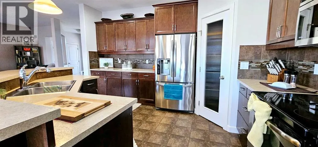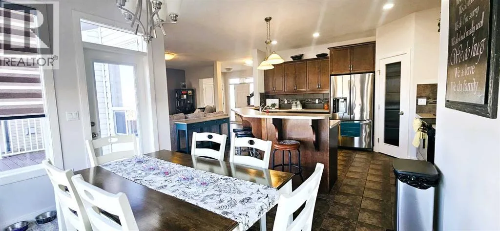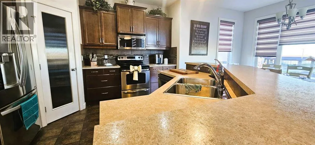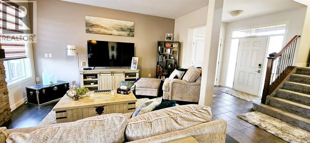 Itâs not often a home like this comes up in Whispering Ridge, a bright, fully finished two-story walkout with no rear neighbors, thoughtful upgrades throughout, and priced under $600,000. Move in before the snow flies and settle into one of Grande Prairieâs most loved neighborhoods.The kitchen is an entertainerâs dream, featuring a large island, abundant counter space, a corner pantry, and modern, eye-catching appliances that make cooking and family gatherings a breeze. The open layout flows seamlessly into the spacious dining area and cozy living room, keeping everyone connected, whether itâs family dinner or movie night. Step out from the dining area onto the deck to enjoy morning coffee or smoke dinner on the Traeger while overlooking the backyard.Busy family life is made easier with the main floor laundry, complete with an oversized washer and dryer. Located just off the garage, it doubles as a convenient mudroom to keep backpacks and shoes organized and out of sight.Upstairs, youâll find three generous bedrooms, including a primary suite with a walk-in closet. The ensuite offers double sinks, a relaxing soaker tub, separate shower, and toilet area. A second full bathroom upstairs serves the other two bedrooms.The fully finished walkout basement adds even more space, featuring a family room with a gas fireplace, a fourth bedroom with its own washer and dryer hookup, a full bathroom, and access to a large patio and fenced yard, all with no rear neighbors for extra privacy.The heated, oversized double garage (25â x 29â) is a showstopper on its own, with 8-foot doors, a floor drain, built-in tool bench, plenty of storage, and a man door to the backyard. Trucks fit comfortably, making this a rare find in Grande Prairie.Recent updates include new carpet throughout, high-end blinds, a new hot water tank, central vac, air conditioning, and shingles in excellent shape. The brown and grey color scheme ties everything together beautifully with a warm, modern f eel.With county taxes, great schools, nearby parks, and a friendly, family-oriented community, this home truly checks all the boxes. Contact your favorite realtor today to see this beauty in person. (id:27476)