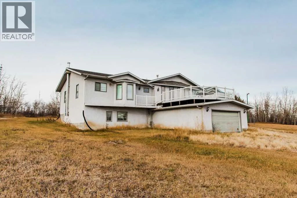 Escape to your own private 22-acre paradise just 10 minutes from Grande Prairie!  Zoned CR-5, this exceptional acreage offers so much opportunity for families, hobby farmers, or anyone seeking space, privacy, and versatility. Immediate possession available!The spacious home spans over 2,500 sq. ft. on the main floor plus a FULL basement, featuring 5 bedrooms, 3.5 bathrooms, and office, 2 large living rooms and a 24' x 24' attached heated garage. Designed for comfortable country living, the bright kitchen includes an island with cooktop, stainless steel appliances with double wall ovens, and ample cabinetry. The generous dining area opens into a large living room with a cozy sunken bonus area and wood-burning stoveâideal for family gatherings. Enjoy breathtaking sunrises and sunsets from the expansive south-facing deck, the kitchen, or the primary suite, all with panoramic views of the Kluskin Hills.The main floor also includes two additional bedrooms, one with direct exterior access, a full bath, and a flexible office space (or sixth bedroom) with French doors. The walkout basement is perfect for entertaining or relaxing, featuring a spacious family room with a wood fireplace, sauna, two more bedrooms, and plenty of room for games or hobbies. A convenient mudroom connects to the side entry and half bath, offering easy access to the garage and abundant storage.This property is truly built for both work and play. Itâs fully fenced with page wire and includes two large horse shelters with pens, pasture areas, and well-built gravel roadways throughout. There are two separate driveways/entrances off RR 43 for excellent access and functionality.For your projects and storage, youâll love the 40â x 60â heated shop with a concrete floor, office space, tool rooms, and its own drilled well. Plus, thereâs an additional 40â x 130â Arch Rib Quonset with a partial concreteâperfect for equipment or additional storage.Updates and mechanical features include new shingles, updat ed pressure tank, Navien hot water on demand, 2021 heating boiler with new main floor water lines, in-floor heating, two drilled wells, and a septic tank with grey water pump-out system.Top it all off with a rooftop patio above the garage, offering sweeping panoramic views and the perfect spot to unwind at dayâs end.This one-of-a-kind acreage offers everythingâspace, comfort, and incredible potentialâall within minutes of the city. Donât miss your chance to own this stunning, move-in-ready property. Call today to book your private tour! (id:27476)