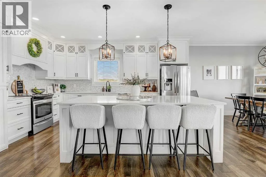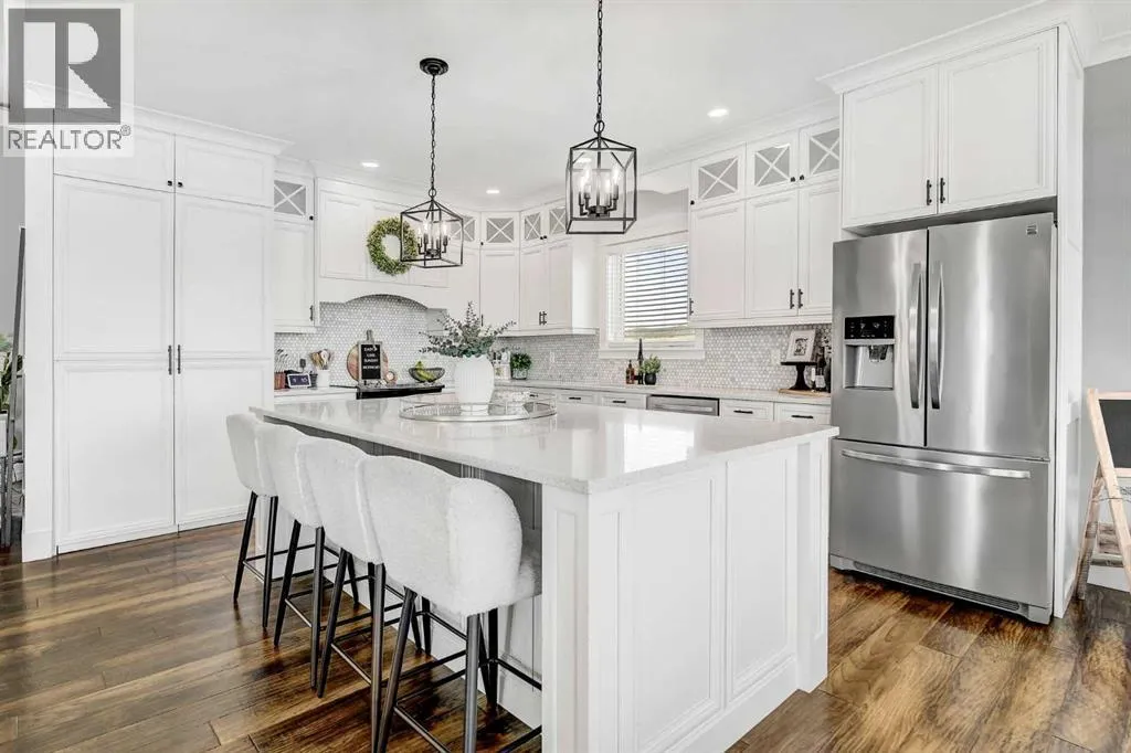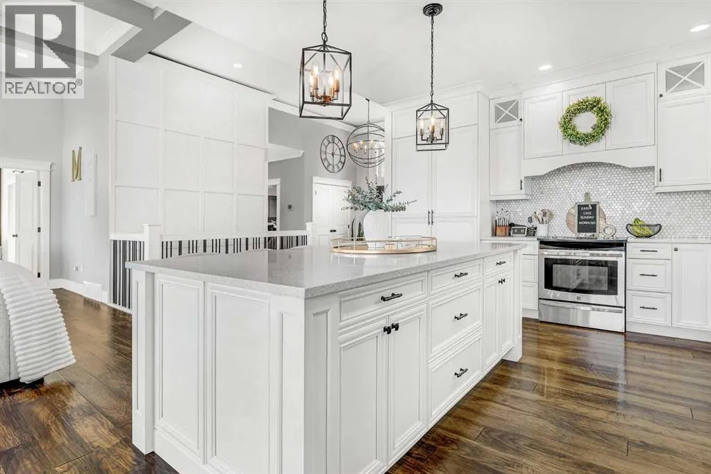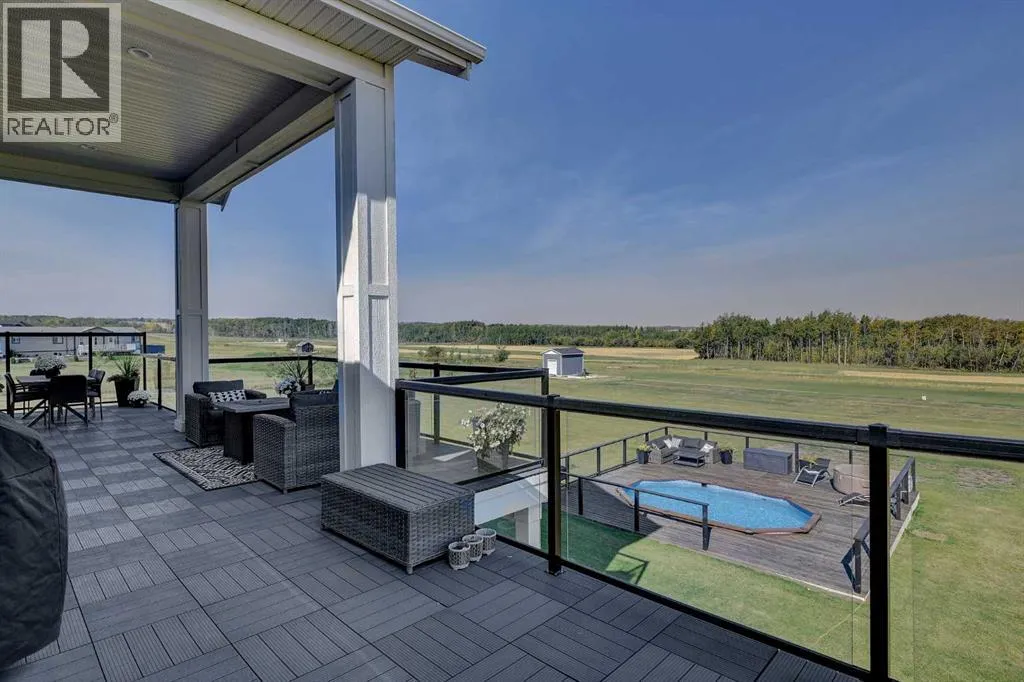 Welcome to this exceptional 5-bedroom bungalow offering over 3,800 sq. ft. of fully developed living space, set in a picturesque and private setting. This luxurious home features a massive triple-car garage and showcases a refined blend of architectural excellence and modern elegance.Step into a spacious, welcoming foyer that flows seamlessly into the heart of the home. The open-concept main living area is highlighted by soaring ceilings, abundant natural light, and a stunning central fireplaceâcreating an inviting space ideal for both everyday living and entertaining.The gourmet kitchen is a chefâs dream, complete with high-end stainless-steel appliances, granite countertops, and an oversized island perfect for meal prep and casual dining. The adjacent dining area offers beautiful views of the professionally landscaped backyard.One of the standout features of this home is the sunken pool, accessible from the walkout basementâyour private oasis for summer relaxation and unforgettable entertaining.The primary suite is a true retreat, featuring a spa-inspired ensuite with a deep soaker tub, separate shower, and walk-in closet. Four additional generously sized bedrooms provide ample space for family and guests.The walkout basement is designed for leisure and entertainment, boasting a state-of-the-art theater room, along with plenty of space for a games area, home gym, or recreation room.Outdoors, the beautifully landscaped grounds offer exceptional privacy and tranquility. Enjoy outdoor living on the massive deck that spans the full width of the homeâperfect for entertaining, relaxing poolside, or dining al fresco.With over 3,800 sq. ft. developed, a massive triple-car garage, sunken pool, walkout basement, and premium finishes throughout, this remarkable bungalow represents luxury living at its finest. A rare opportunityâcome experience it for yourself today. (id:27476)