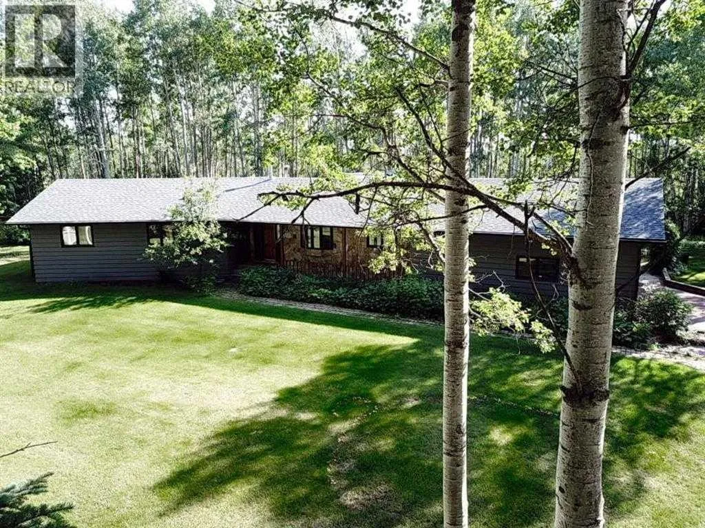 **ONE OF A KIND PROPERTY** Over 2,000 sq. ft. bungalow is nestled on a beautifully treed 4-acre lot backing onto green space and Bear Creek/Crown Land, with miles of ATV and walking trails right in your own backyard. The home offers 3 bedrooms and 2.5 bathrooms, including a large ensuite with a tiled walk-in shower, soaker tub, and dual sinks, plus two generous living rooms featuring wood-stove inserts for cozy winter days. A large upgraded kitchen and dining area provide the perfect space for entertaining, while recent updates include brand-new shingles and two new furnaces, along with a newer hot-water-on-demand system. Basement is undeveloped. The garage is huge with a radiant gas heater and man door. The property is fully fenced, garden plots with fruit trees, outbuildings and more. Zoned CR-2 (allows for some horses and other animal units) On a water well, grandfathered in septic system and ample power locations ran throughout the property and a concrete pad ready for a detached garage or shop for future developments! If you are looking for ultimate privacy, space, unending adventures this could be the one! (id:27476)