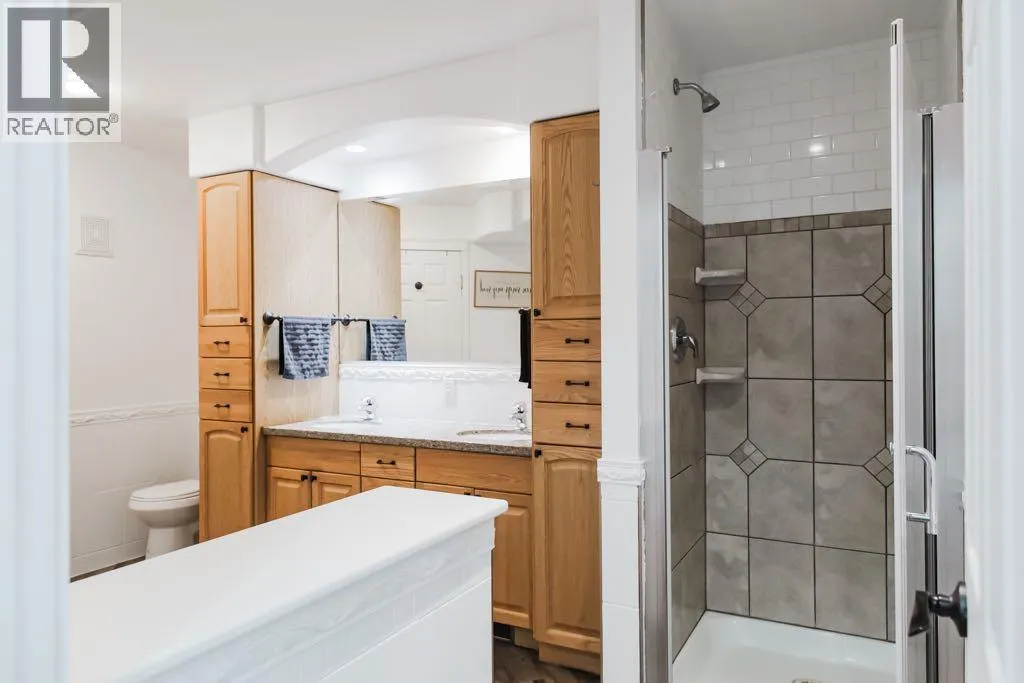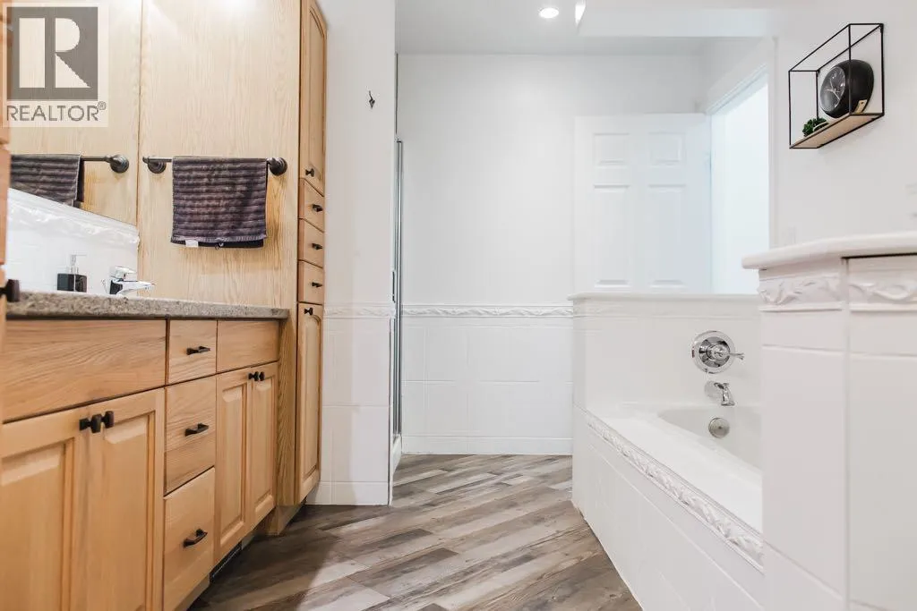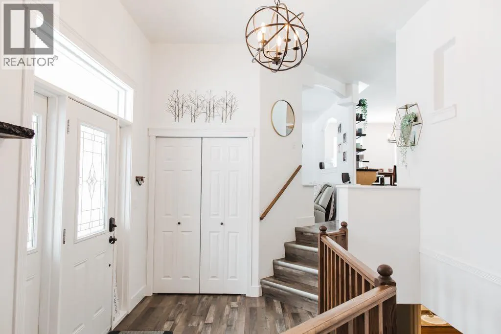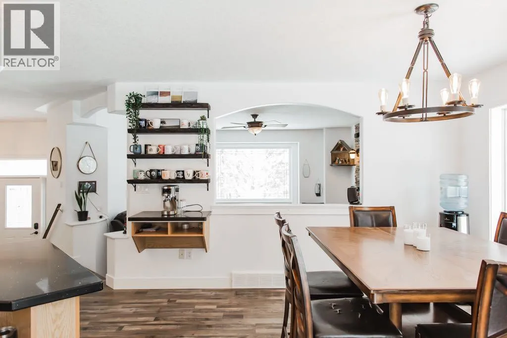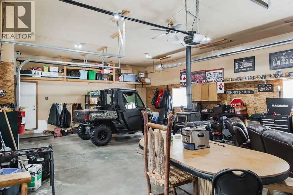 Welcome to this beautiful acreage in Spruce Villa Estates, located on the same road as Spruce Meadows Golf Course and offering peaceful country living just minutes from town. Situated on 3 private, treed acres with pavement right to the driveway, this property offers the space, privacy, and lifestyle acreage buyers are looking for. This 4 bedroom plus den home features a bright and functional layout with open concept living and dining that is semi open to the living room, creating a welcoming space for both everyday living and entertaining. The main floor primary bedroom includes a large walk in closet, shared ensuite with the main bathroom, and a sliding door leading directly to the back deck, perfect for enjoying quiet mornings or evening sunsets. A den on the main floor offers flexibility for a home office or additional living space. Downstairs you will find three additional bedrooms, a full bathroom, a spacious family room, and laundry, providing plenty of room for family or guests. Step outside to enjoy the partially covered back deck overlooking the beautifully treed yard, complete with a large hot tub for year round relaxation. The property also features a heated attached garage, along with two additional sheds for extra storage. Several important updates have already been completed including new flooring in 2023, fresh paint in 2024, new shingles in 2021, and a well installed in 2014. Located in a quiet acreage community with great neighbours, this property offers the perfect blend of privacy, space, and convenience. (id:27476)