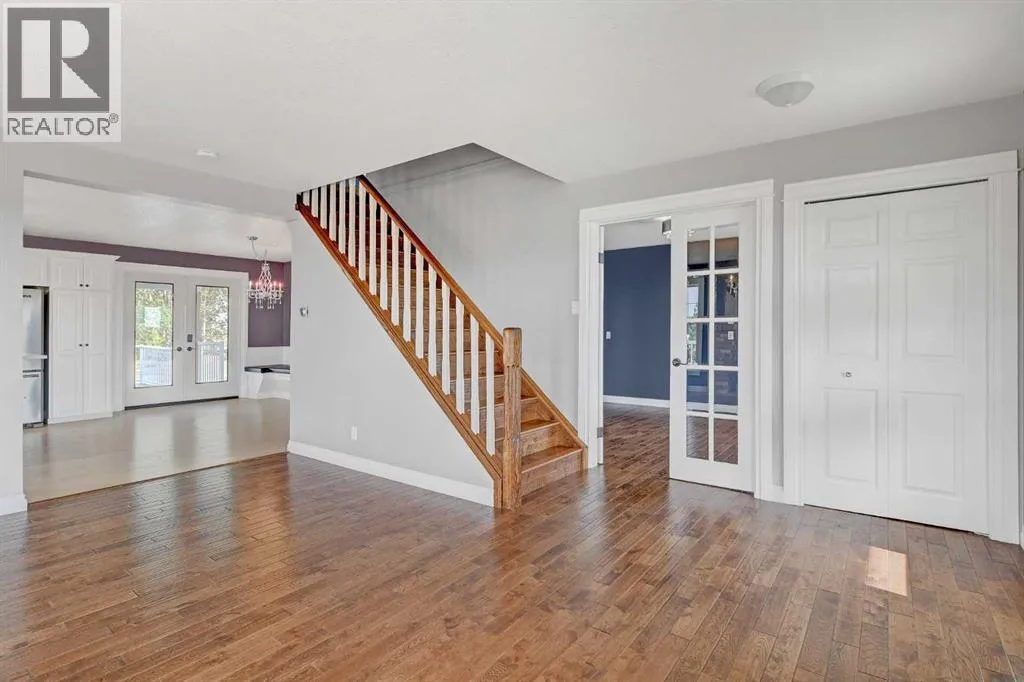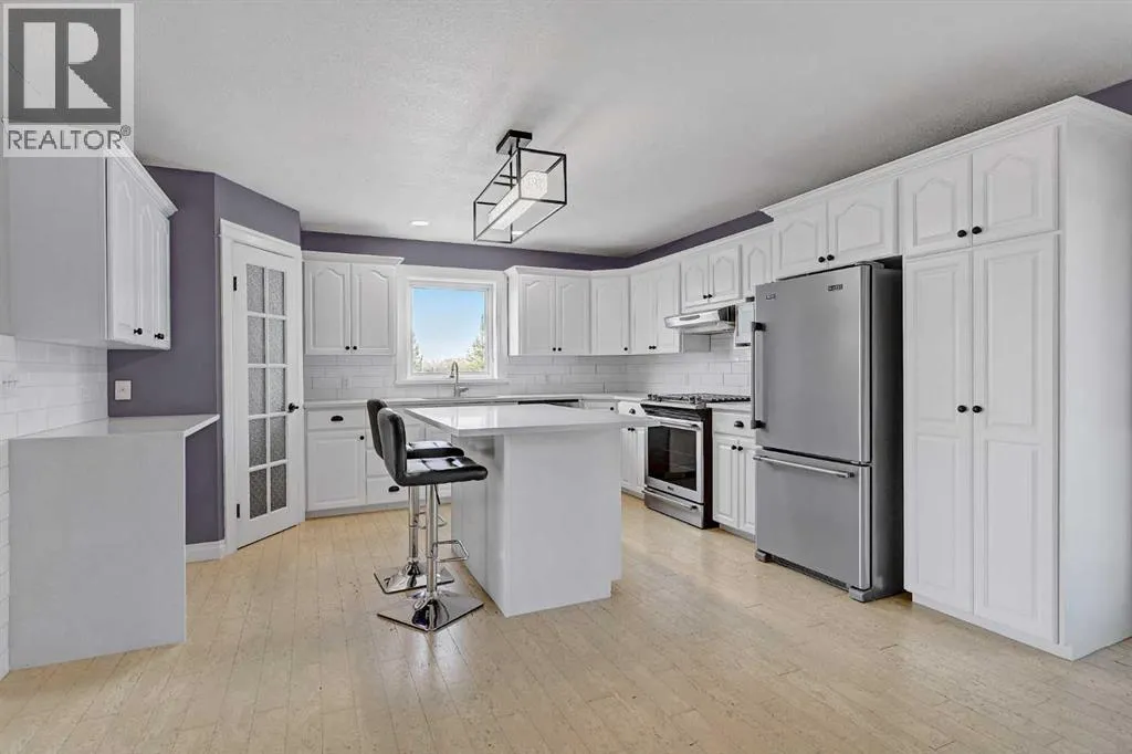 If you have been waiting for an oversized CR-5 acreage close to town, and accessible by pavement, this may be the one! Perfect for the horse lover, or if you just want some extra space and privacy this 16.30acre parcel is just seconds north of City Limits. The well-established property features a beautiful home site on about 6 acres and 10 +/- acres of fenced pasture to the west. The private yard site includes fencing, tons of mature trees and landscaping, paved driveway, a fully developed and updated 2 storey home with double garage and an oversized detached garage (fits 3 cars). The home is a gorgeous blend of country style and modern updating, and you will love the wrap around deck providing covered front veranda and two-tiered partially covered rear deck. The main floor features hardwood flooring and wood stove in living room, large dining room or sitting area, dining nook with built in seating and double swing doors to patio, powder room and spacious white kitchen with quartz counters, stainless steel appliances, pantry and upgraded faucet and undermount sink. Upstairs includes 3 huge bedrooms with dormer windows, large walk-in closet or storage room and huge main bath with freestanding soaker tub, separate tiled shower with glass door and large vanity with quartz counter and his / her sinks. Basement is tastefully developed with 2 more bedrooms, living room with gas fireplace, full bathroom, finished laundry room and cold room / additional storage. Other notable features include: immediate possession, A/C, stamped concrete walkway, firepit, shed, fresh paint, new carpet and development potential with Aquatera city water availability. Book youâre showing today! (id:27476)