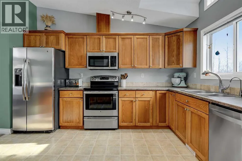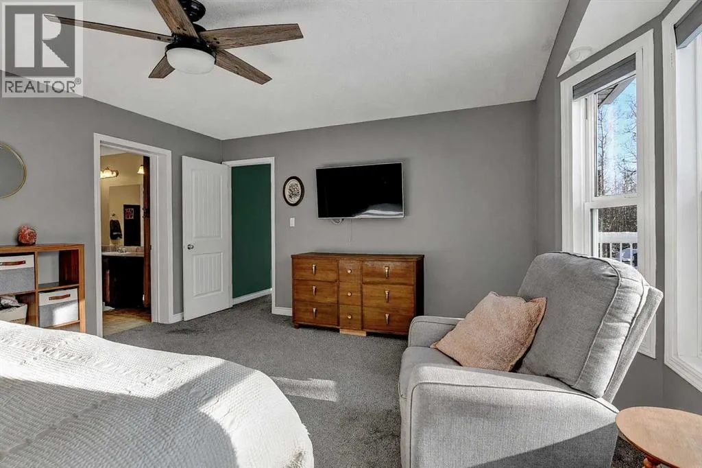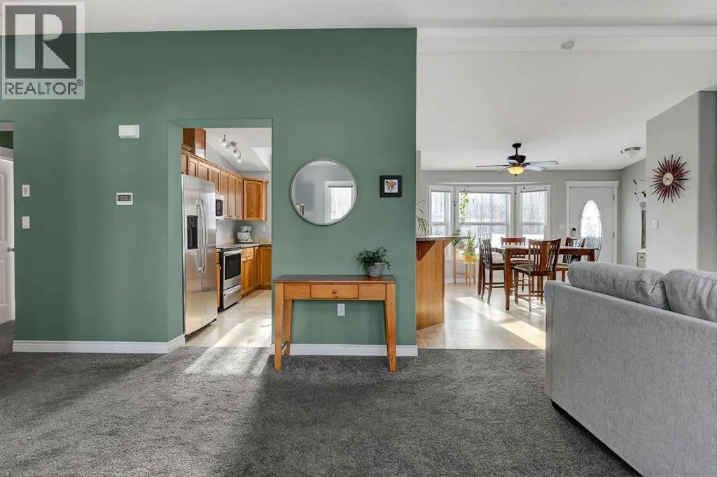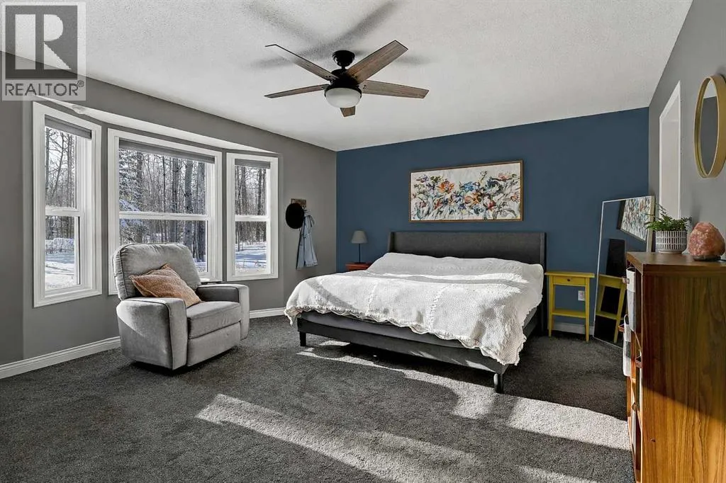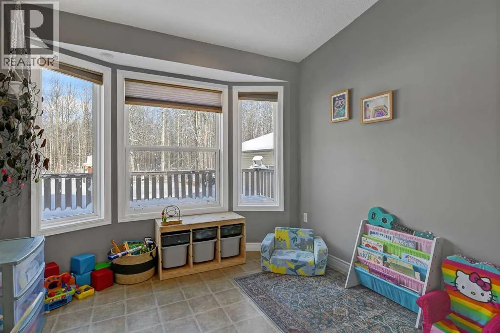 This exceptionally well-maintained 1736 sqft custom built modular home is situated on a gorgeous, private 4.27-acre treed setting in Saskatoon Mountain Acreages about 20 minutes west of Grande Prairie. This fine property offers nice curb appeal, 32 x 28 triple garage, concrete apron and abundant room and parking for all your toys. You can enjoy the peaceful country living surrounded by trees and take in the sunshine anytime of day from either the front deck with aluminum railing or the expansive 15 x 60 rear deck. The fully fenced backyard is the perfect setting for kids and pets, complete with a play center, shed and chicken coop. Yard also offers 5 raised garden beds. Inside, the freshly painted, open concept layout is bright and welcoming, highlighting vaulted ceilings, large windows, and a cozy wood fireplace. The spacious kitchen boasts plenty of cabinets, eating bar, and modern stainless-steel appliances. You will love the impressive primary bedroom, which offers a huge walk-in closet and a luxurious ensuite featuring a two-person jetted tub, separate shower, and his-and-her sinks. The layout features 2 large bedrooms and a 3rd room which could be an office, playroom, nursery, or potential 3rd bedroom. The 32 x 28 heated garage features 3 overhead doors, floor drain, shelving and workbench and a lean-to off the back perfect for extra storage. Other great features include custom blinds, reverse osmosis to fridge and kitchen tap, new hot water tank and new washer and dryer. This scenic property offers a rare combination of modern open concept floor plan, private treed setting and a massive garage all at an attractive price so book your showing soon. (id:27476)