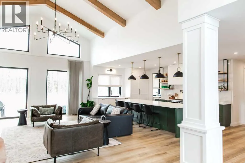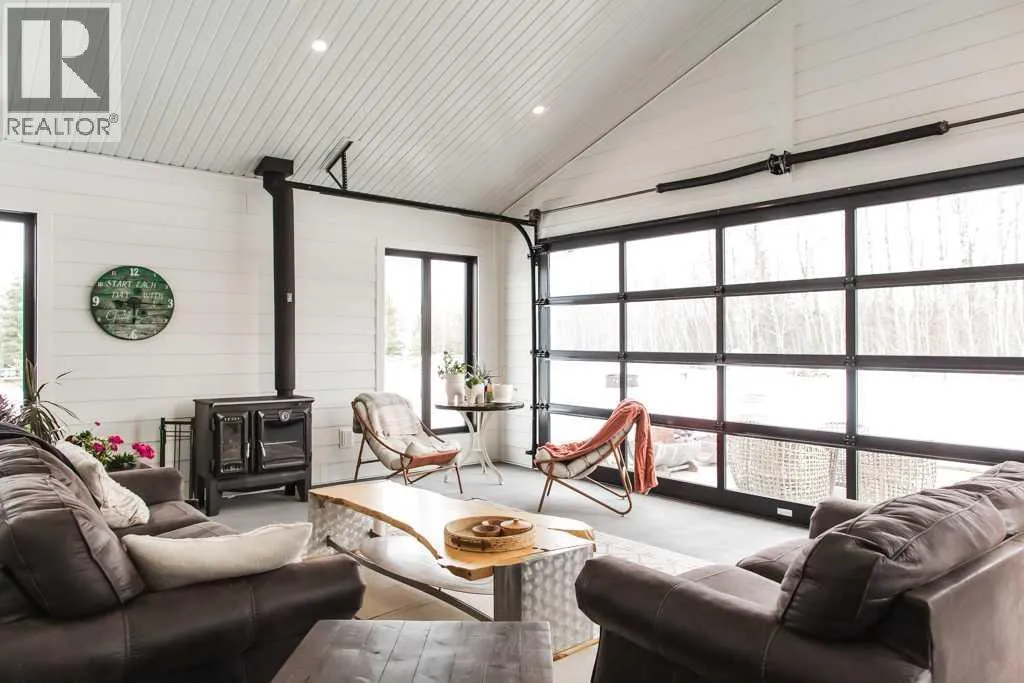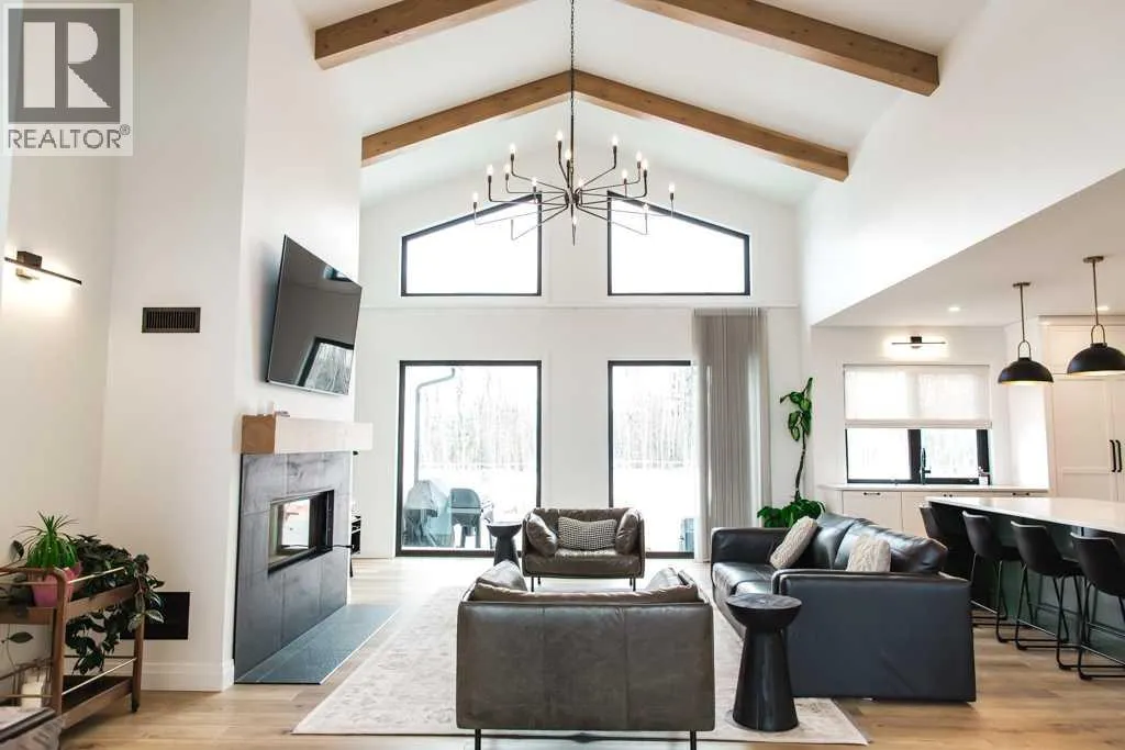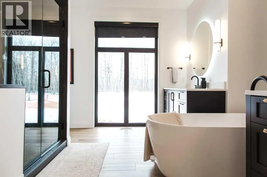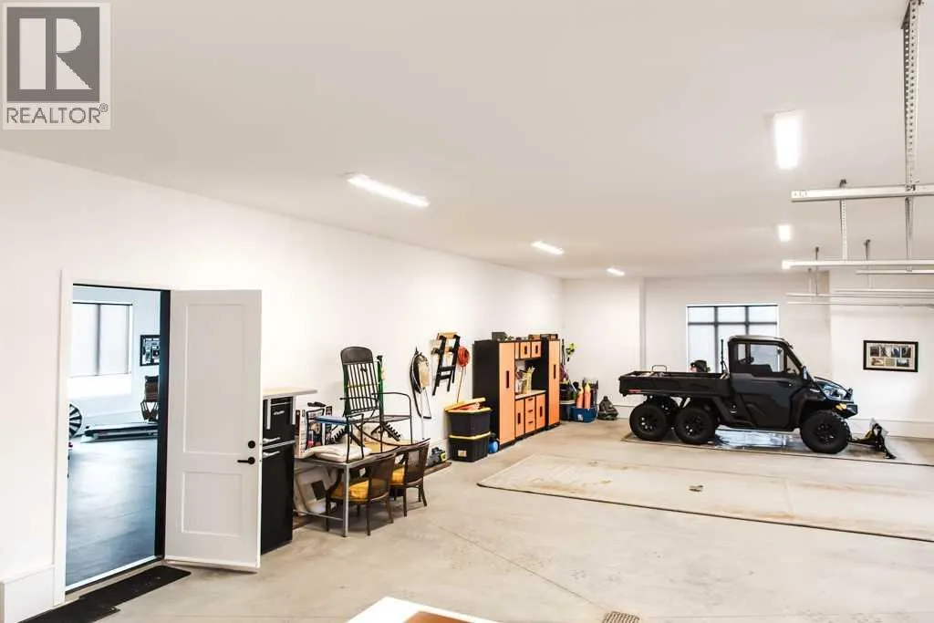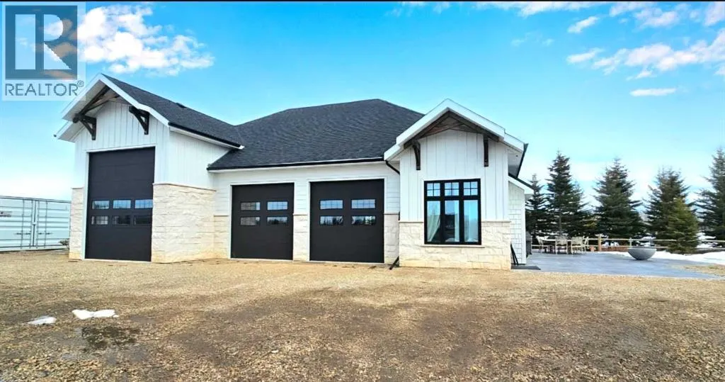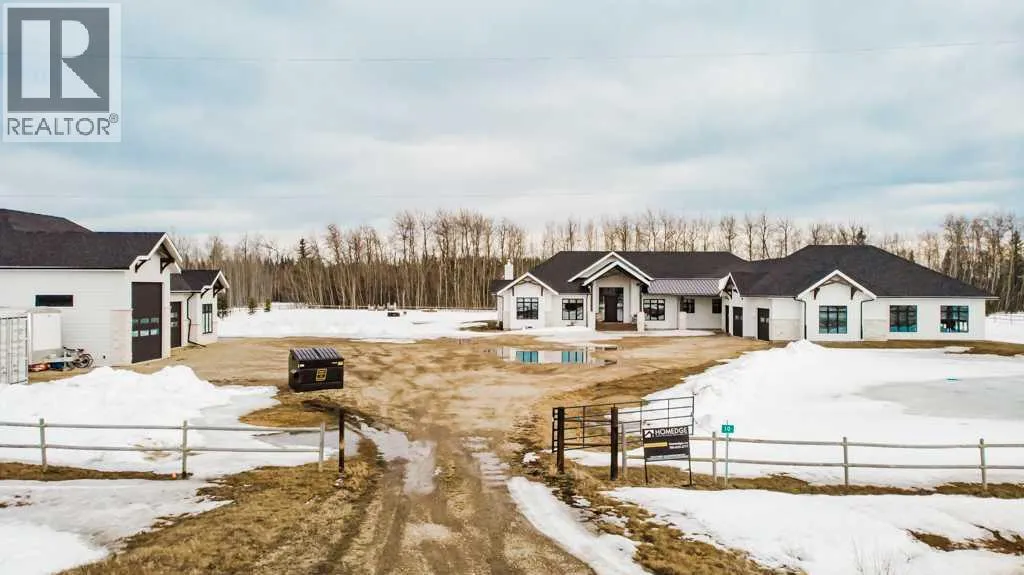 Experience the pinnacle of executive acreage living in this brand-new, fully custom estate by Homedge Grande Prairie. Completed in December 2024, this architectural triumph is perfectly positioned on 2.6 private acres backing directly onto Crown land and Bear Creek. Here, your backyard is a permanent sanctuary of protected forest and water, ensuring a level of seclusion that is simply irreplaceable.The Residence: Modern SophisticationSpanning over 4,200 sq ft of finished living space, the main home is a masterclass in "single-level luxury." The open-concept floor plan is anchored by floor-to-ceiling windows that dissolve the boundaries between the designer interior and the rugged natural beauty outside.The Chefâs Atelier: A culinary dream featuring a 48â Viking range, Sub-Zero panel-ready refrigeration, and a massive 12-foot social island. The walkthrough butlerâs pantryâcomplete with Sub-Zero drawer fridges and a dedicated coffee stationâmakes hosting effortless.The Sunroom (The Crown Jewel): Designed for all four seasons, this space features soaring ceilings, cement in-floor heating, and a wood-burning cookstove. In the summer, the glass garage-style door disappears to merge with the patio; in the winter, it remains a warm, panoramic vantage point overlooking your private swimming pond.The Primary Retreat: A spa-inspired sanctuary with a freestanding soaker tub, a massive walk-in shower, and a boutique-style closet.The Lower Level: Includes a 1,200 sq ft ground-level gym/flex space with direct backyard access, perfect for the fitness enthusiast or a high-end hobby room. Rarely does a secondary building match the caliber of the main home. Built in 2020, this 2,500 sq ft fully finished shop is a professional-grade facility:3-Bay Configuration including a dedicated RV bay.Full Living/Office Quarters: Featuring dual offices, a full kitchen, laundry, and a bathroom.Climate-controlled with A/C and integrated into the propertyâs full reverse osmosis wate r system.Technical Excellence & ComfortThis estate is as smart as it is beautiful. Designed for total peace of mind, the mechanical systems include:Climate Control: Air conditioning in the home, gym, and shop; dual furnaces.Water Security: High-efficiency well with a comprehensive Reverse Osmosis system servicing the entire property.Preparedness: Full hookups installed and ready for a Generac backup system.Quality Finishes: Wide-plank LVP flooring, an LG Steam Closet (Styler) in the designer laundry, and custom blinds throughout.This is more than a home; it is a legacy property. (id:27476)