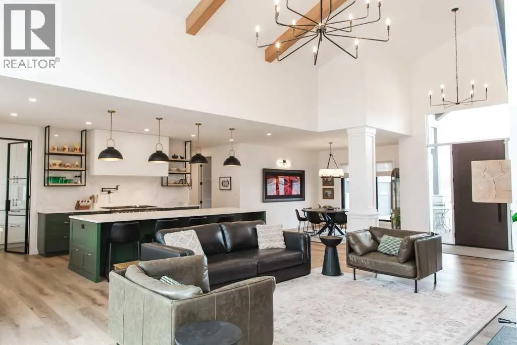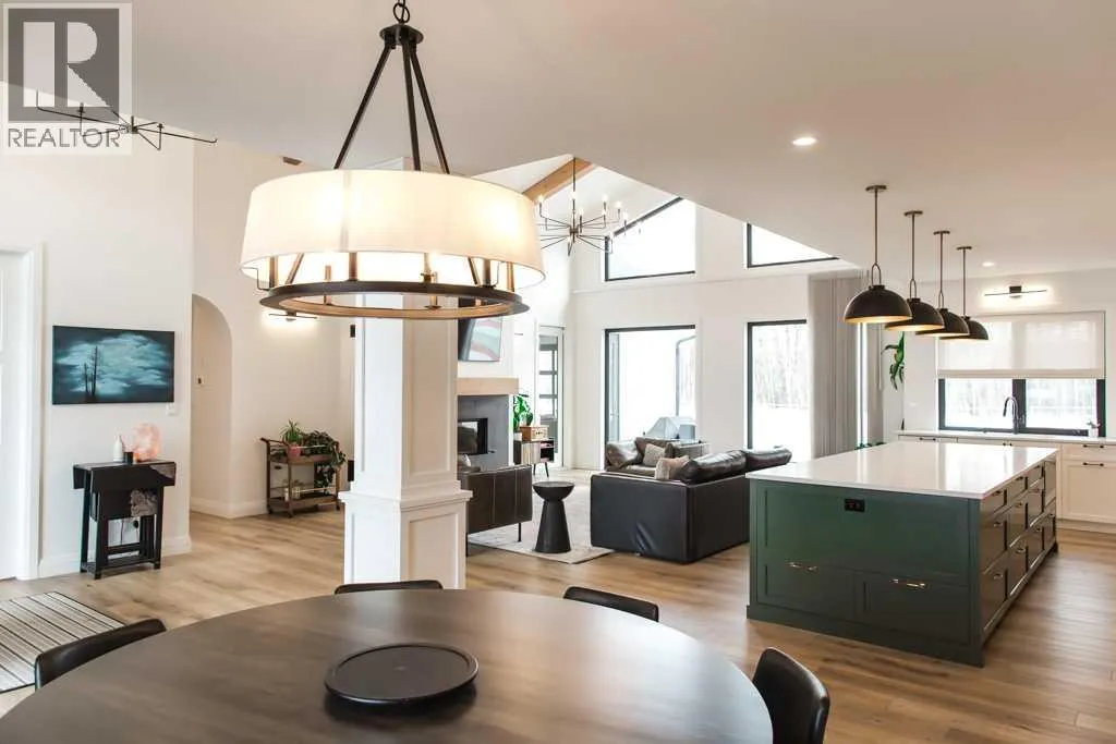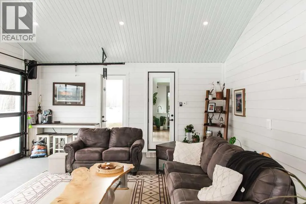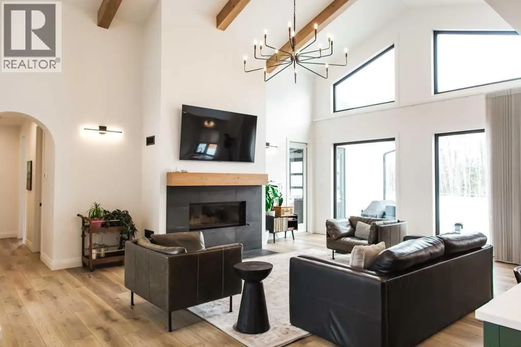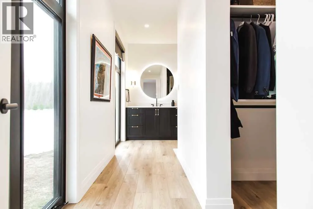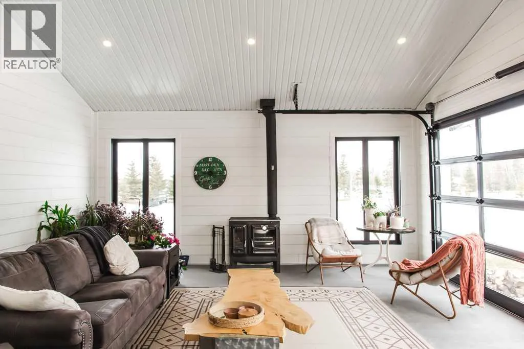 Experience the pinnacle of executive acreage living in this brand-new, fully custom estate by Homedge Grande Prairie. Completed in December 2024, this architectural triumph is perfectly positioned on 2.6 private acres backing directly onto Crown land and Bear Creek. Here, your backyard is a permanent sanctuary of protected forest and water, ensuring a level of seclusion that is simply irreplaceable.The Residence: Modern SophisticationSpanning over 4,200 sq ft of finished living space, the main home is a masterclass in "single-level luxury." The open-concept floor plan is anchored by floor-to-ceiling windows that dissolve the boundaries between the designer interior and the rugged natural beauty outside.The Chefâs Atelier: A culinary dream featuring a 48â Viking range, Sub-Zero panel-ready refrigeration, and a massive 12-foot social island. The walkthrough butlerâs pantryâcomplete with Sub-Zero drawer fridges and a dedicated coffee stationâmakes hosting effortless.The Sunroom (The Crown Jewel): Designed for all four seasons, this space features soaring ceilings, cement in-floor heating, and a wood-burning cookstove. In the summer, the glass garage-style door disappears to merge with the patio; in the winter, it remains a warm, panoramic vantage point overlooking your private swimming pond.The Primary Retreat: A spa-inspired sanctuary with a freestanding soaker tub, a massive walk-in shower, and a boutique-style closet.The Lower Level: Includes a 1,200 sq ft ground-level gym/flex space with direct backyard access, perfect for the fitness enthusiast or a high-end hobby room. Rarely does a secondary building match the caliber of the main home. Built in 2020, this 2,500 sq ft fully finished shop is a professional-grade facility:3-Bay Configuration including a dedicated RV bay.Full Living/Office Quarters: Featuring dual offices, a full kitchen, laundry, and a bathroom.Climate-controlled with A/C and integrated into the propertyâs full reverse osmosis wate r system.Technical Excellence & ComfortThis estate is as smart as it is beautiful. Designed for total peace of mind, the mechanical systems include:Climate Control: Air conditioning in the home, gym, and shop; dual furnaces.Water Security: High-efficiency well with a comprehensive Reverse Osmosis system servicing the entire property.Preparedness: Full hookups installed and ready for a Generac backup system.Quality Finishes: Wide-plank LVP flooring, an LG Steam Closet (Styler) in the designer laundry, and custom blinds throughout.This is more than a home; it is a legacy property. (id:27476)