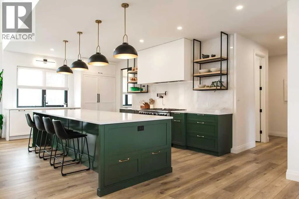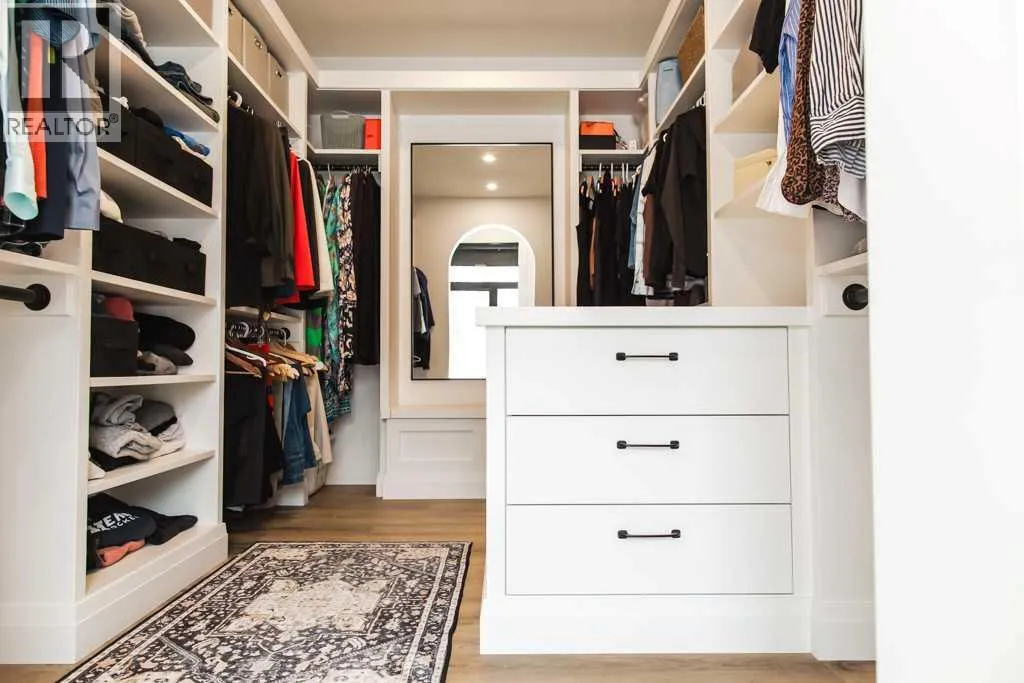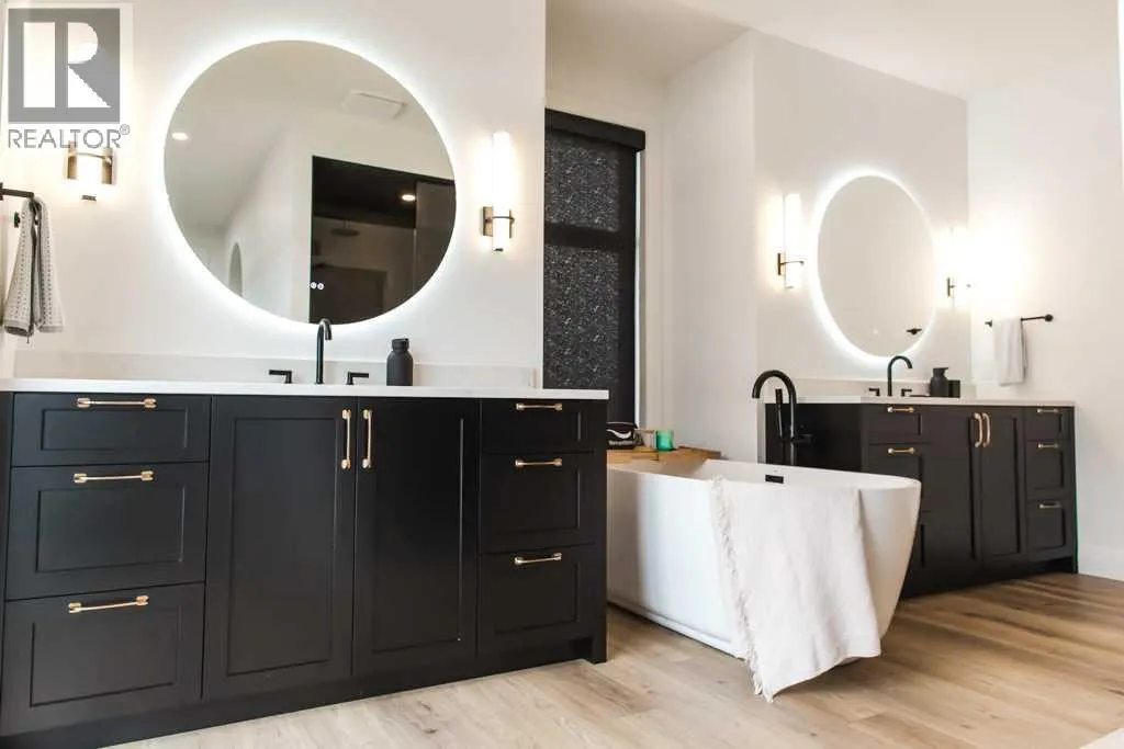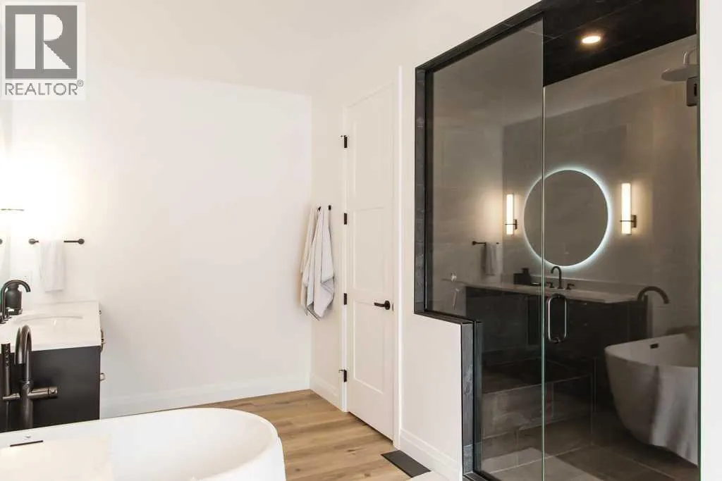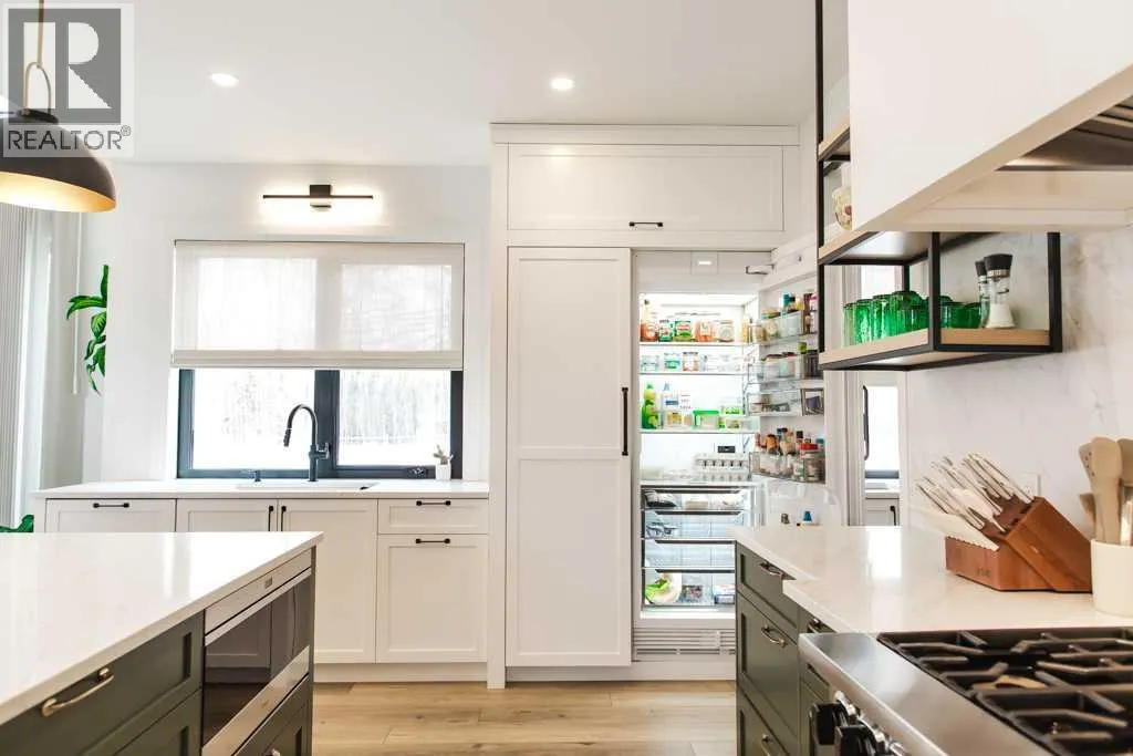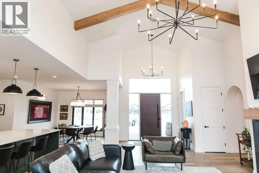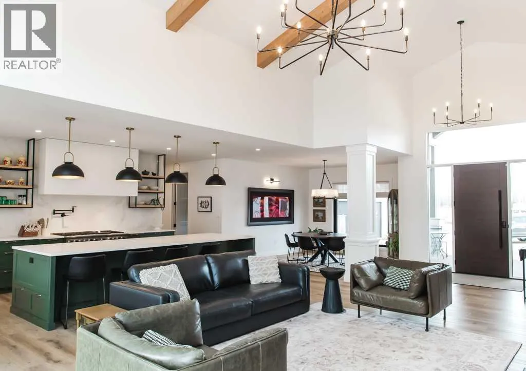 Experience the pinnacle of executive acreage living in this brand-new, fully custom estate by Homedge Grande Prairie. Completed in December 2024, this architectural triumph is perfectly positioned on 2.6 private acres backing directly onto Crown land and Bear Creek. Here, your backyard is a permanent sanctuary of protected forest and water, ensuring a level of seclusion that is simply irreplaceable.The Residence: Modern SophisticationSpanning over 4,200 sq ft of finished living space, the main home is a masterclass in "single-level luxury." The open-concept floor plan is anchored by floor-to-ceiling windows that dissolve the boundaries between the designer interior and the rugged natural beauty outside.The Chefâs Atelier: A culinary dream featuring a 48â Viking range, Sub-Zero panel-ready refrigeration, and a massive 12-foot social island. The walkthrough butlerâs pantryâcomplete with Sub-Zero drawer fridges and a dedicated coffee stationâmakes hosting effortless.The Sunroom (The Crown Jewel): Designed for all four seasons, this space features soaring ceilings, cement in-floor heating, and a wood-burning cookstove. In the summer, the glass garage-style door disappears to merge with the patio; in the winter, it remains a warm, panoramic vantage point overlooking your private swimming pond.The Primary Retreat: A spa-inspired sanctuary with a freestanding soaker tub, a massive walk-in shower, and a boutique-style closet.The Lower Level: Includes a 1,200 sq ft ground-level gym/flex space with direct backyard access, perfect for the fitness enthusiast or a high-end hobby room. Rarely does a secondary building match the caliber of the main home. Built in 2020, this 2,500 sq ft fully finished shop is a professional-grade facility:3-Bay Configuration including a dedicated RV bay.Full Living/Office Quarters: Featuring dual offices, a full kitchen, laundry, and a bathroom.Climate-controlled with A/C and integrated into the propertyâs full reverse osmosis wate r system.Technical Excellence & ComfortThis estate is as smart as it is beautiful. Designed for total peace of mind, the mechanical systems include:Climate Control: Air conditioning in the home, gym, and shop; dual furnaces.Water Security: High-efficiency well with a comprehensive Reverse Osmosis system servicing the entire property.Preparedness: Full hookups installed and ready for a Generac backup system.Quality Finishes: Wide-plank LVP flooring, an LG Steam Closet (Styler) in the designer laundry, and custom blinds throughout.This is more than a home; it is a legacy property. (id:27476)